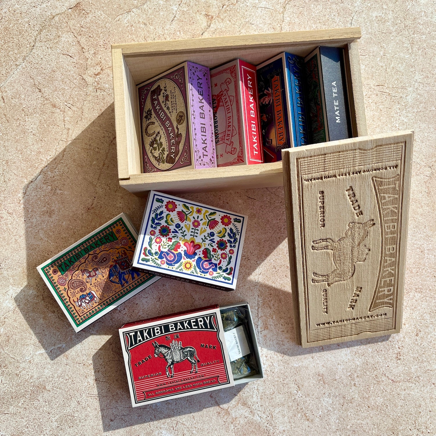 世界を旅して各国からマッチ箱を持って帰ってきた気分になる紅茶セットです。フレーバーによってデザインが違うマッチ箱たちはさらにおしゃれな木箱に入っています。(贈り物に良い!)ほっこりリラックスして欲しい方や、喉を労わる方に、暖かい紅茶の贈り物をするのは良いですよね。見ているだけでも癒されます。