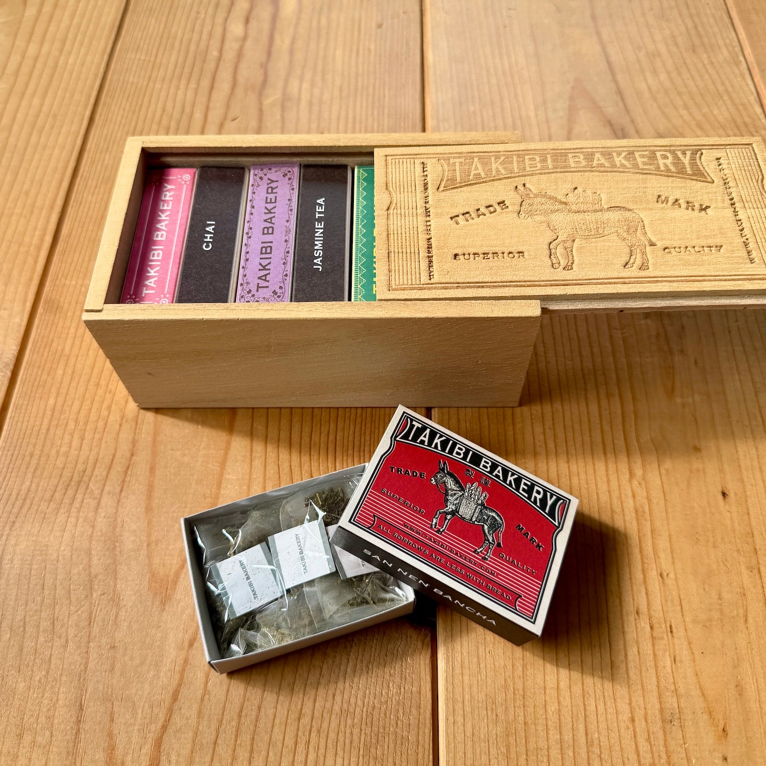 世界の様々な国をイメージした紅茶を小さなマッチ箱型の箱に詰め込んだ「旅する紅茶」。海上コンテナをイメージした特製の木箱に紅茶が7種類セットされたギフトセットです。それぞれの紅茶の箱に3つずつティーバッグが入っています。使い終わった後の小箱は可愛い小物入れとしてお使いください。