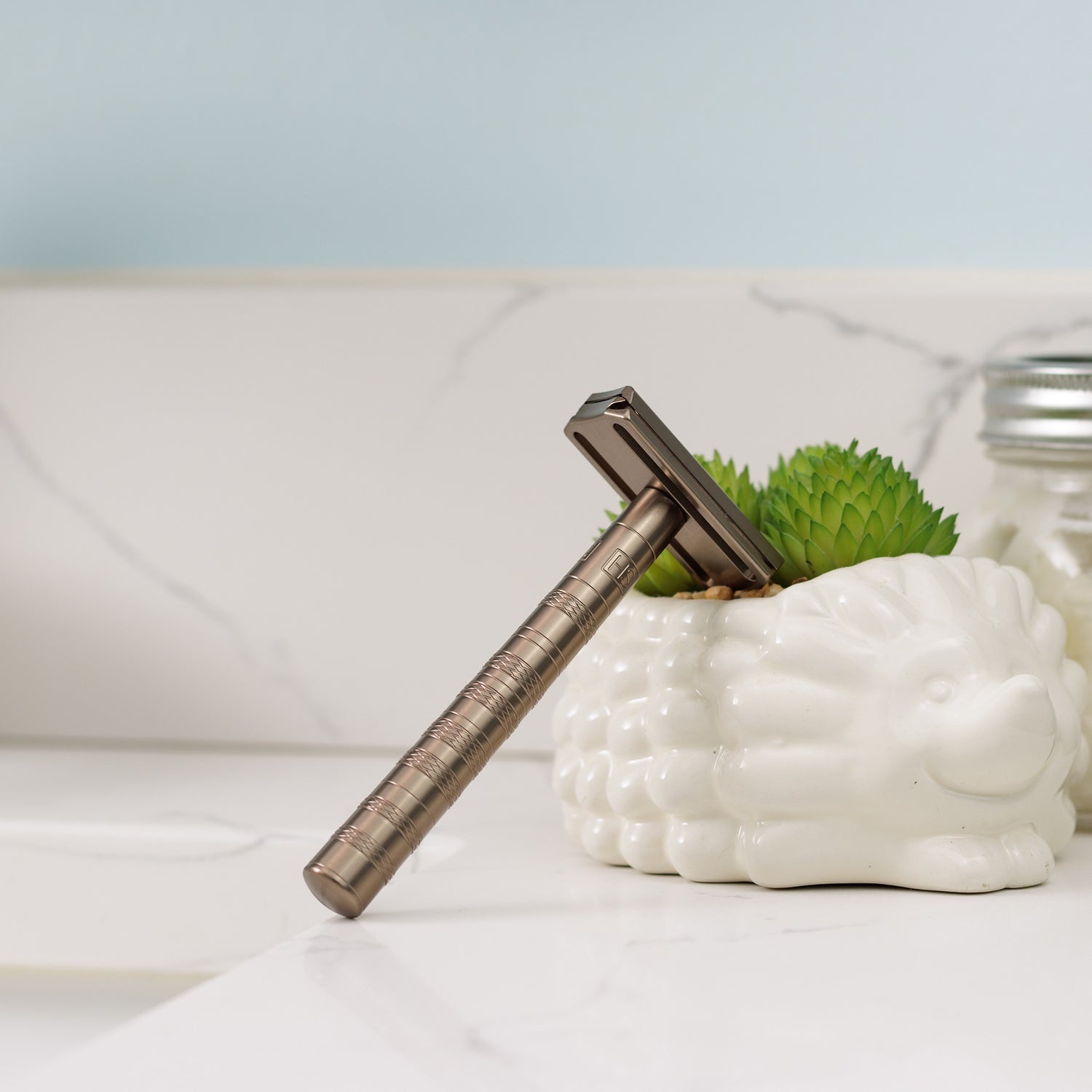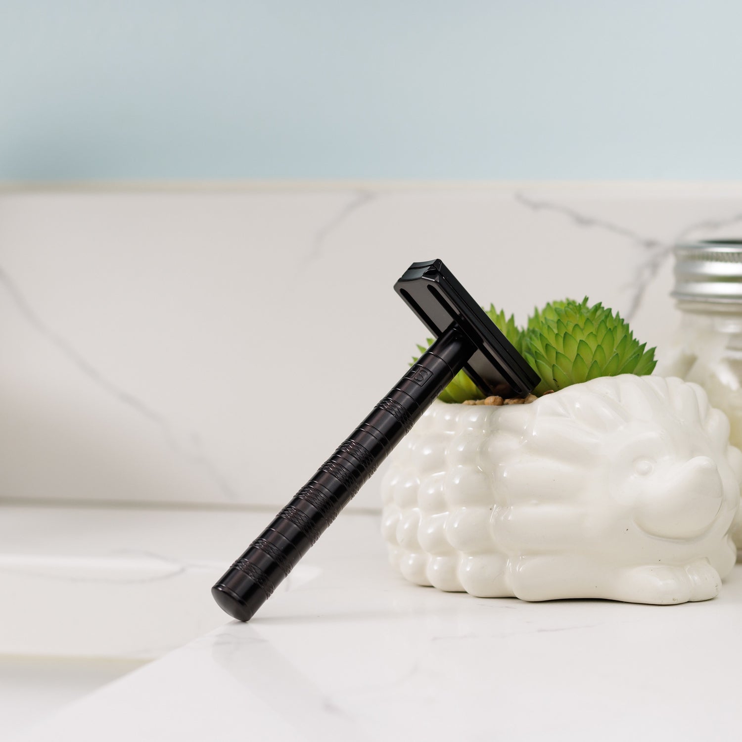 最適な剃り心地を保つために、人工衛星の製造に必要なAS9100航空宇宙規格を持った工場で、余分な厚みが出るクロームメッキや塗装をせずに、精密に機械加工されています。そのため、刃の角度と露出は0.005mmという公差で製造されています。