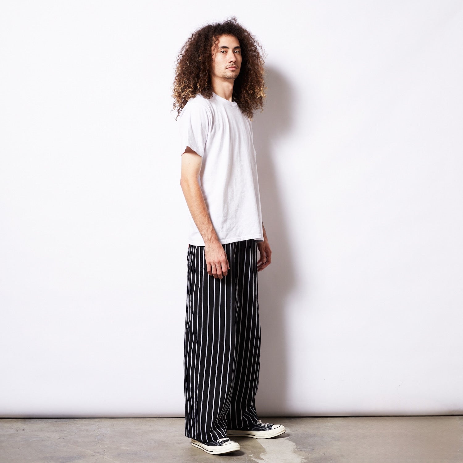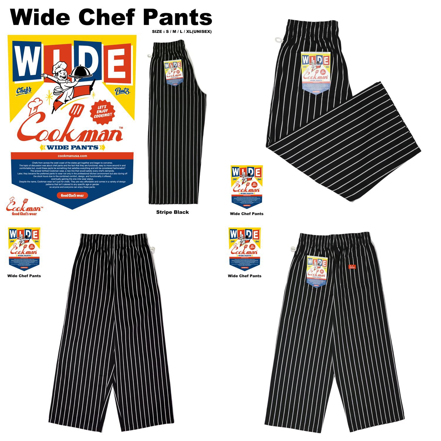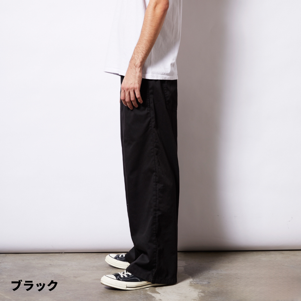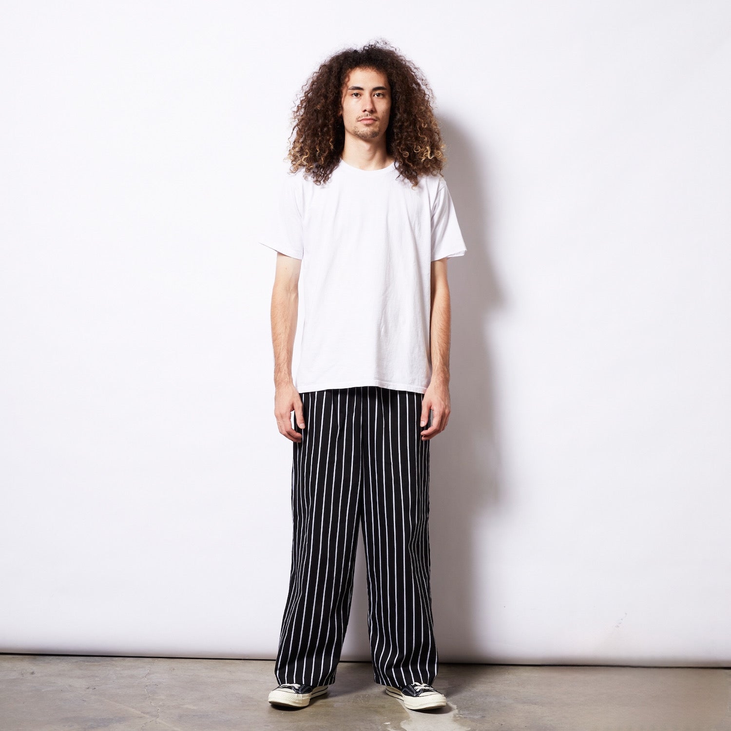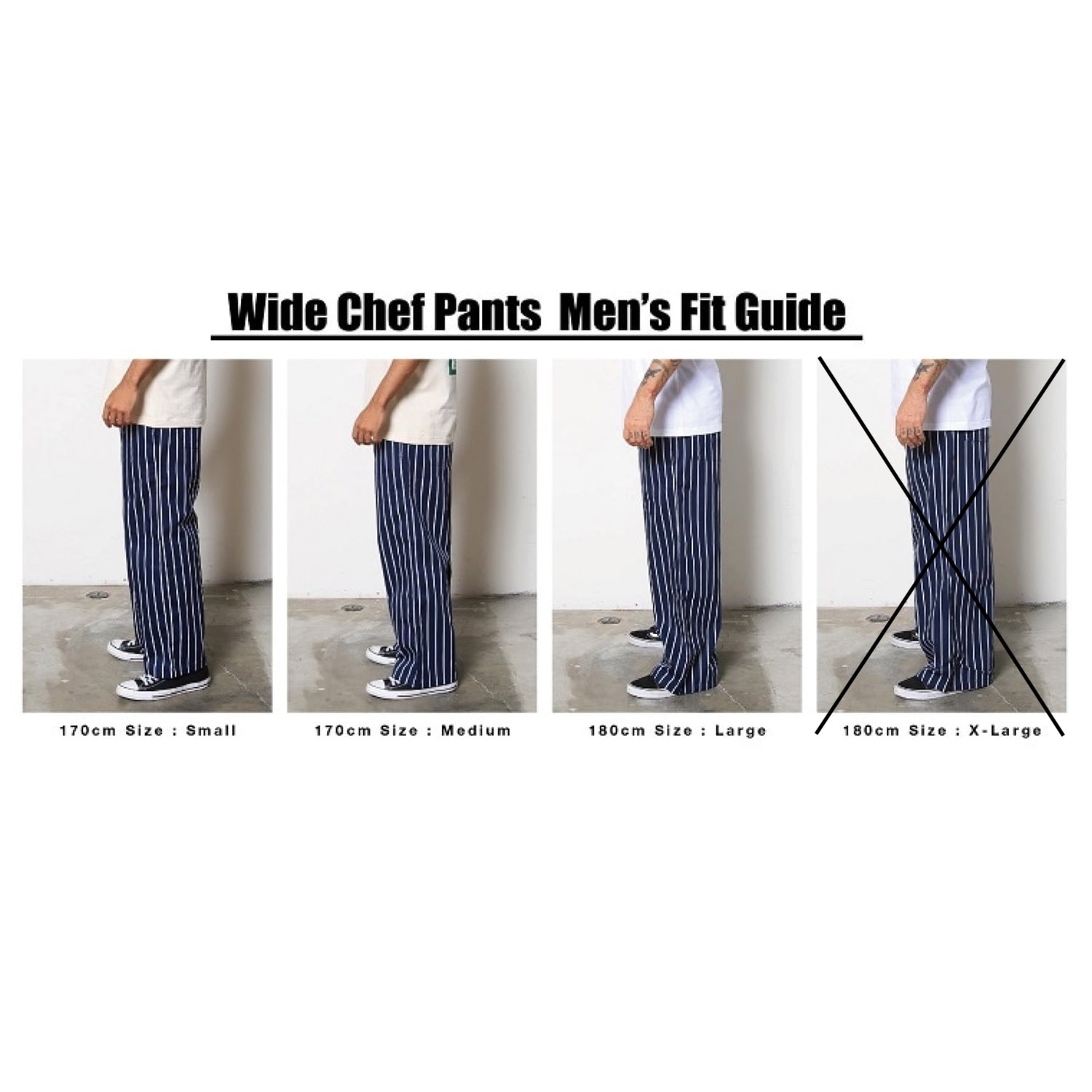 ワイドシルエットのChef Pants。通気性に優れているので熱のこもりやすい厨房や屋外での作業に向いています。ウエストはドローコードと太めのゴムでしっかりとホールドできます。
