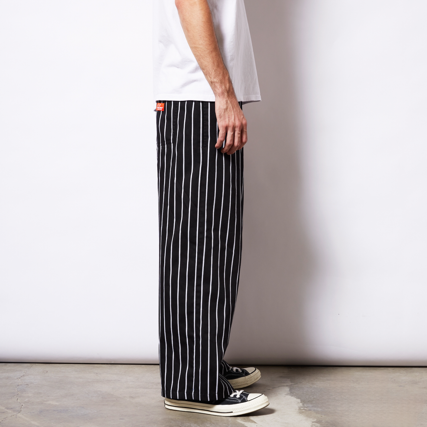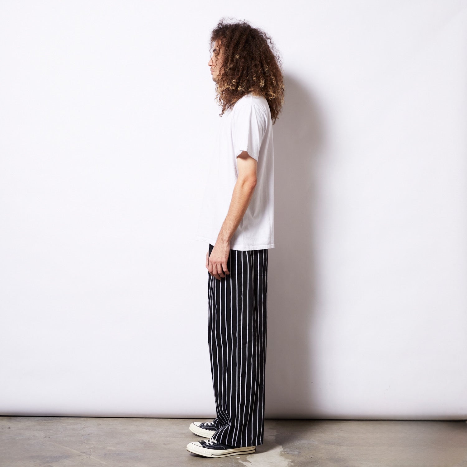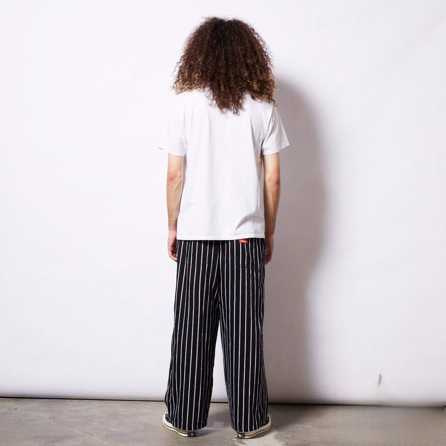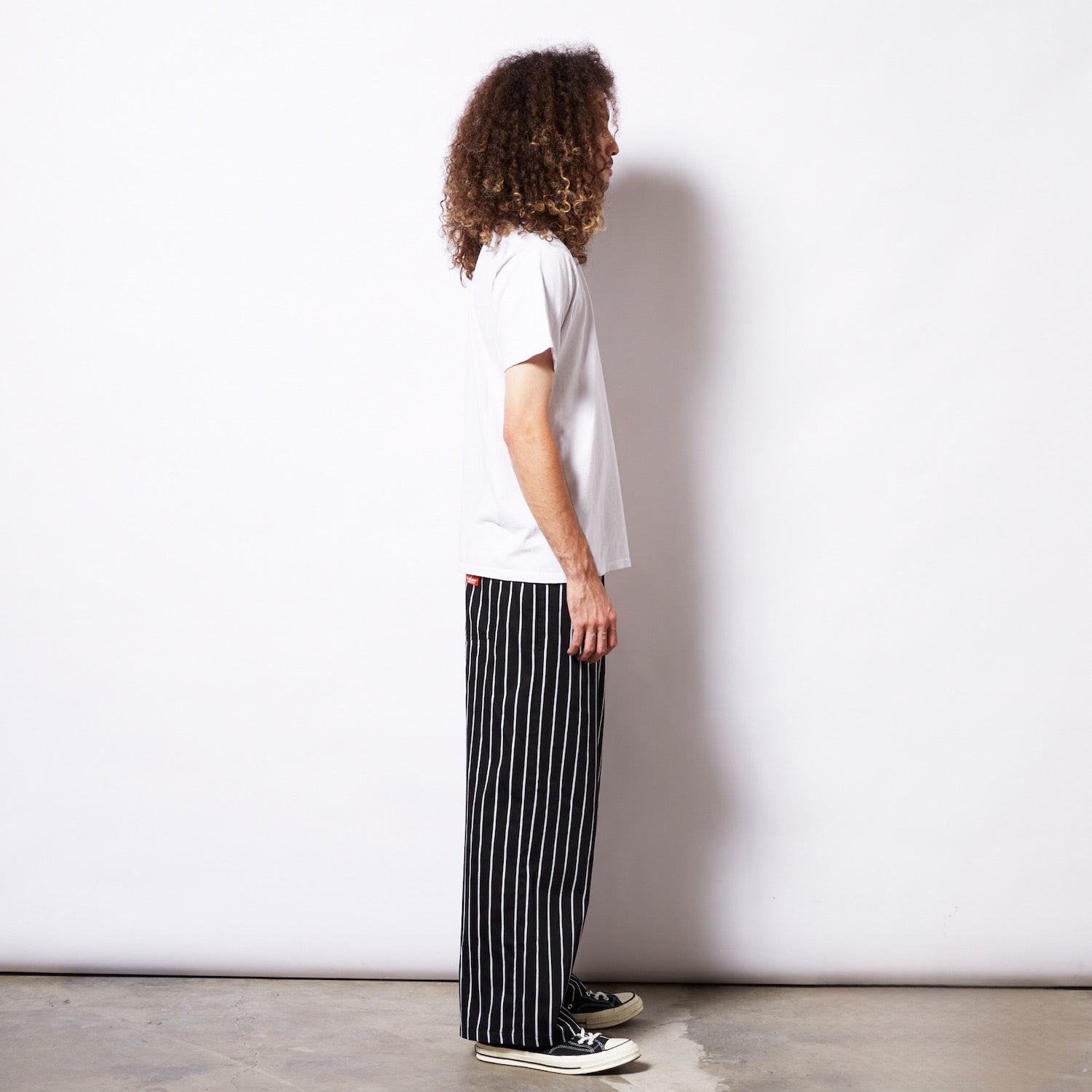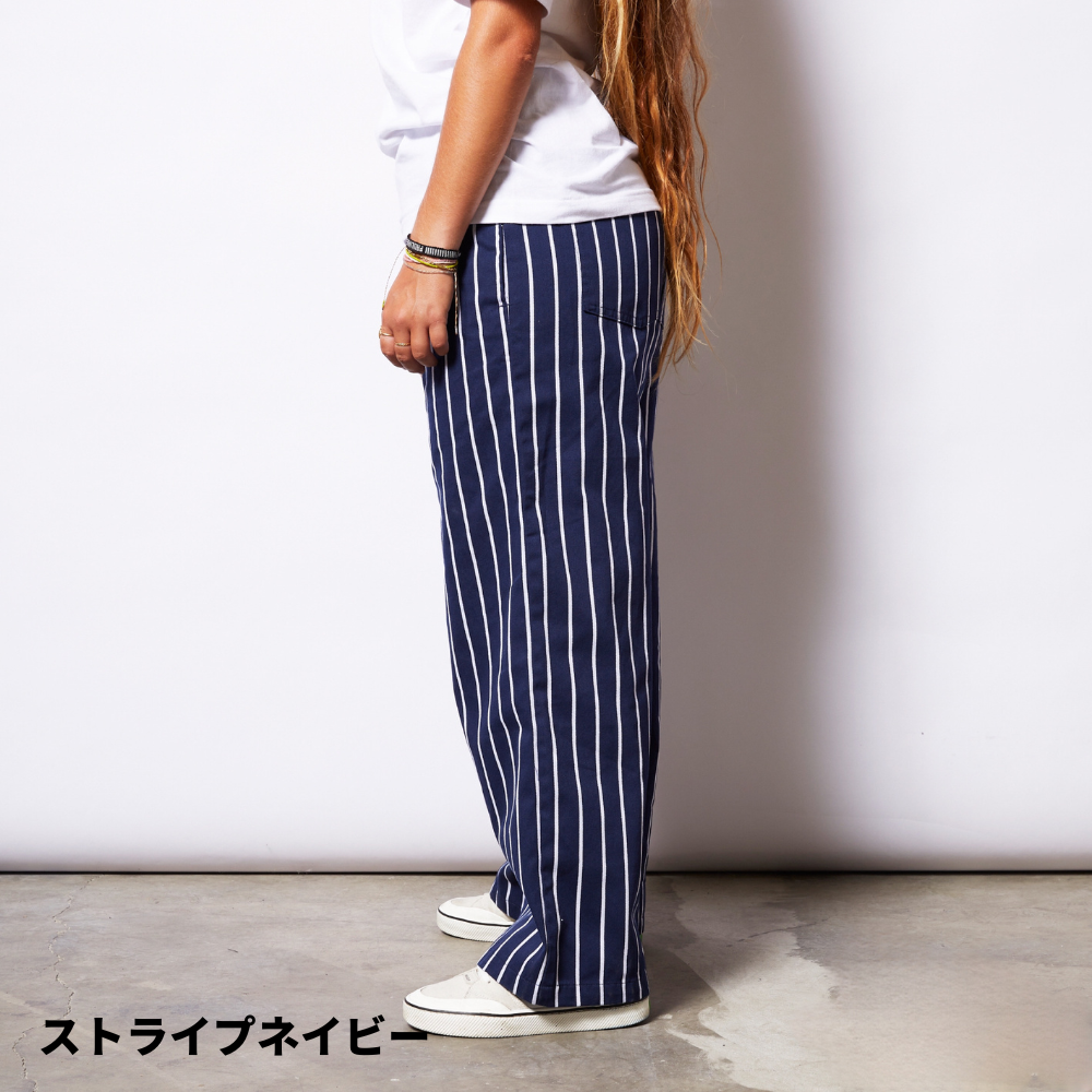 ワイドシルエットのChef Pants。通気性に優れているので熱のこもりやすい厨房や屋外での作業に向いています。ウエストはドローコードと太めのゴムでしっかりとホールドできます。