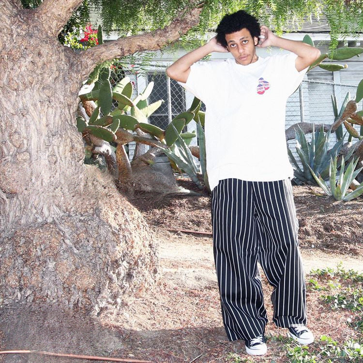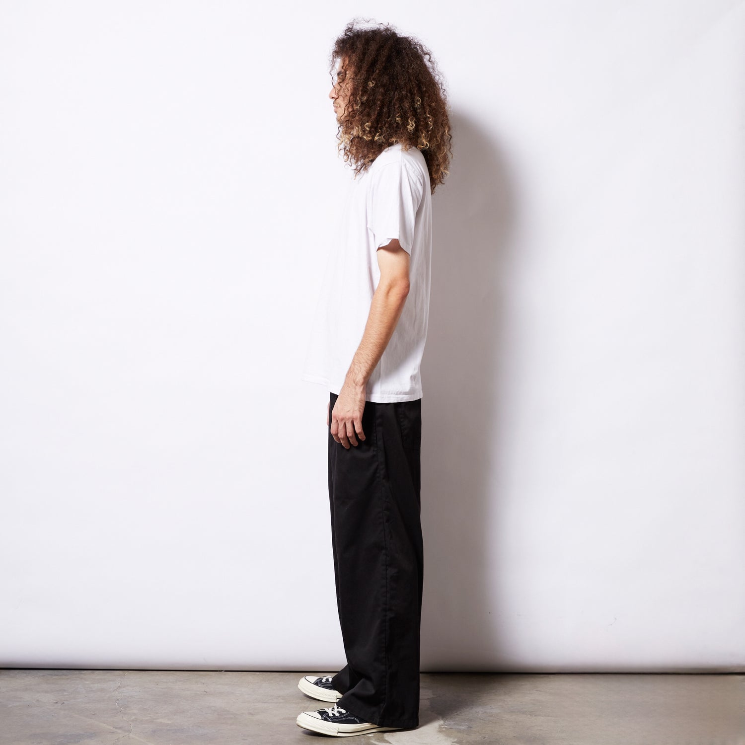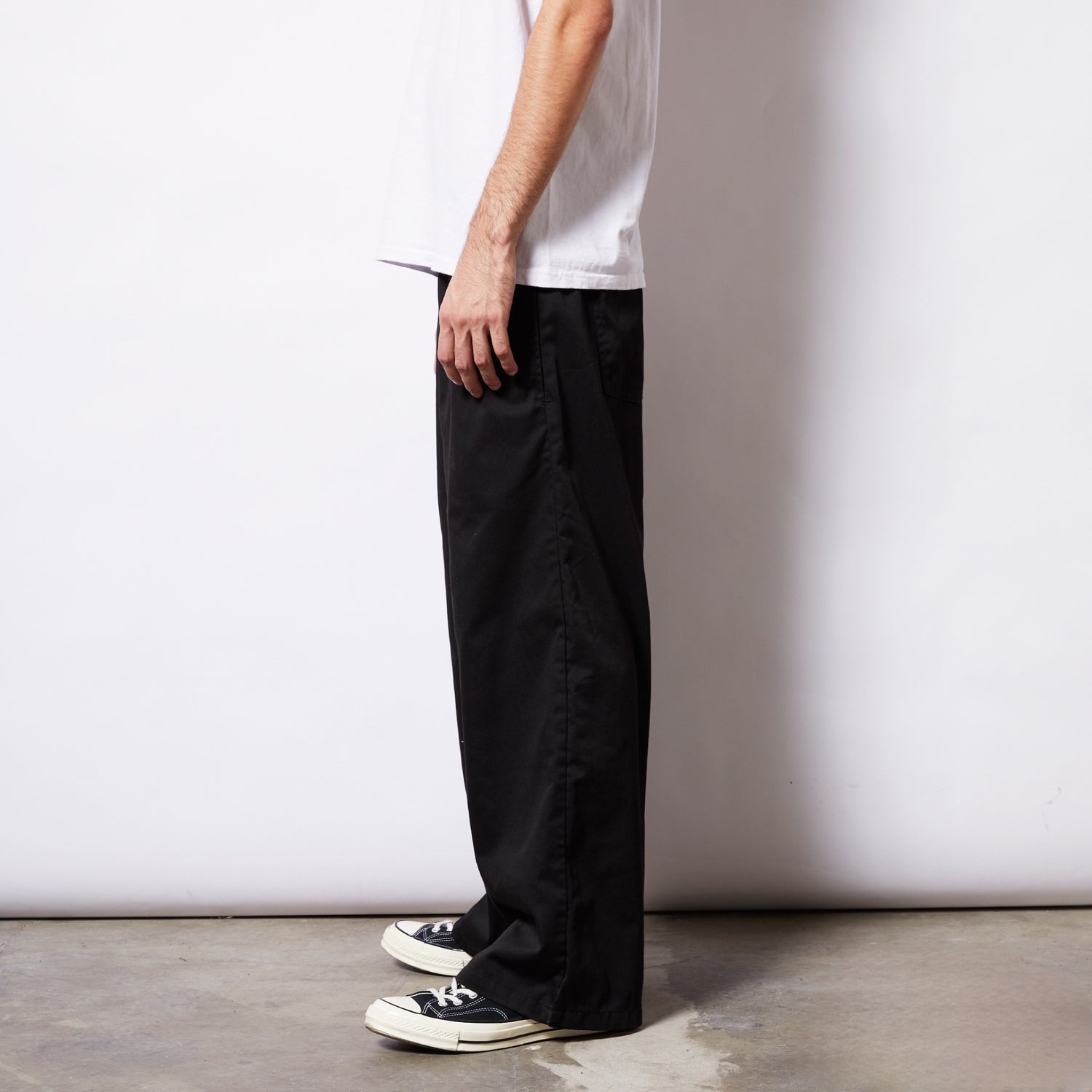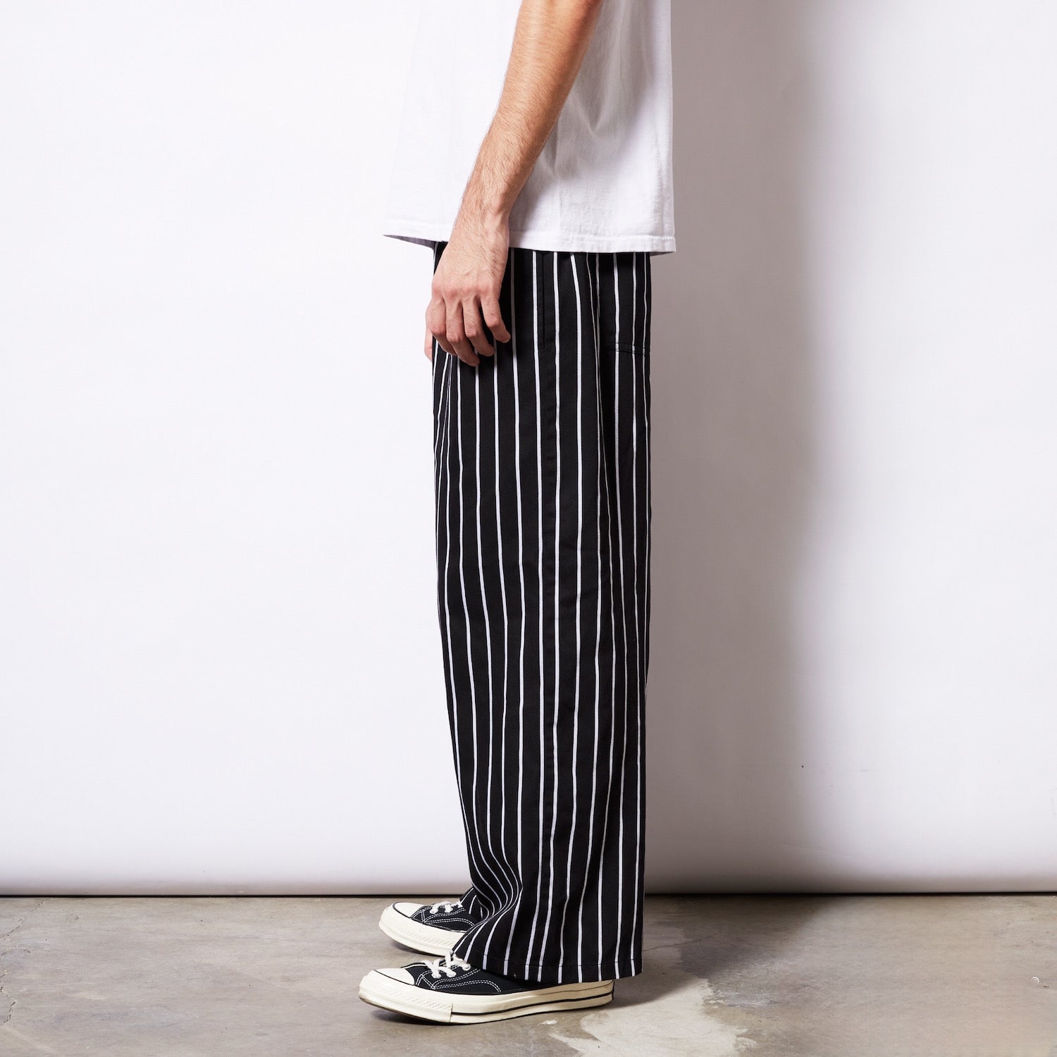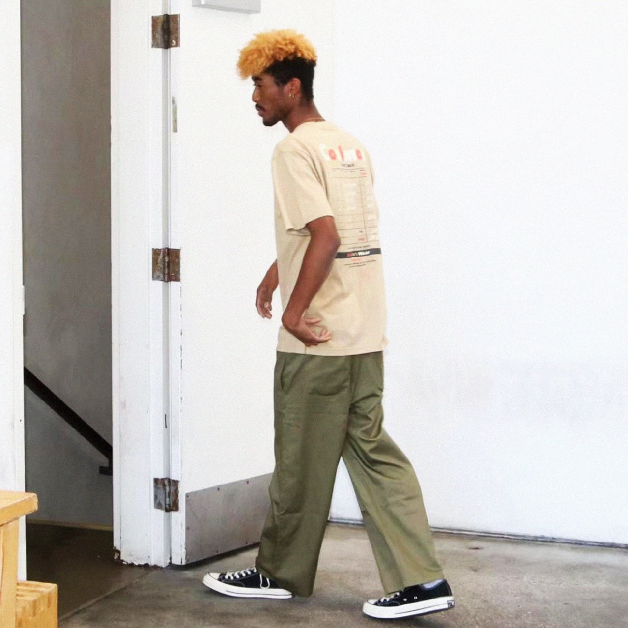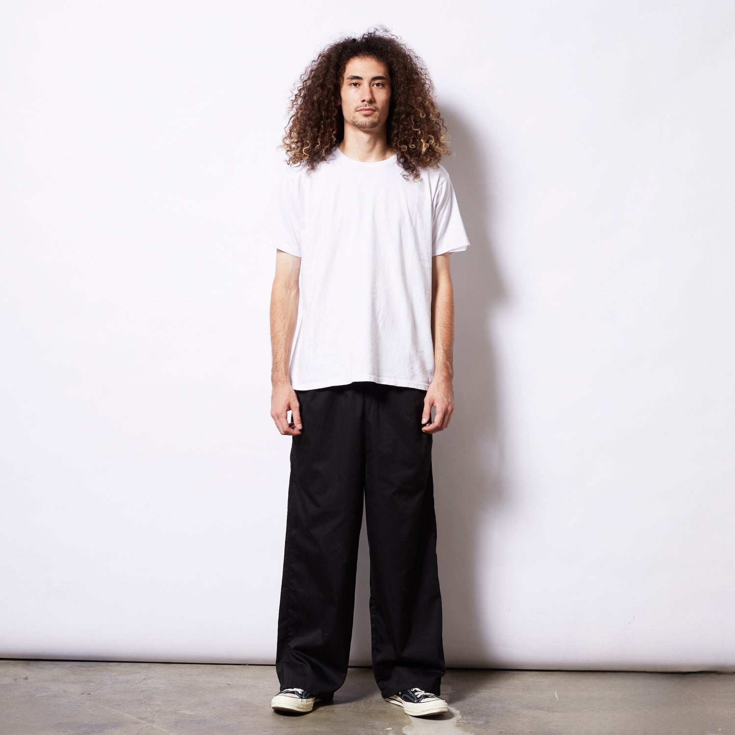 ワイドシルエットのChef Pants。通気性に優れているので熱のこもりやすい厨房や屋外での作業に向いています。ウエストはドローコードと太めのゴムでしっかりとホールドできます。