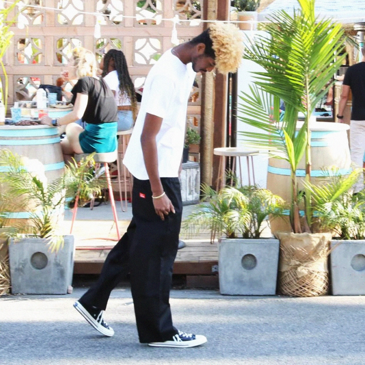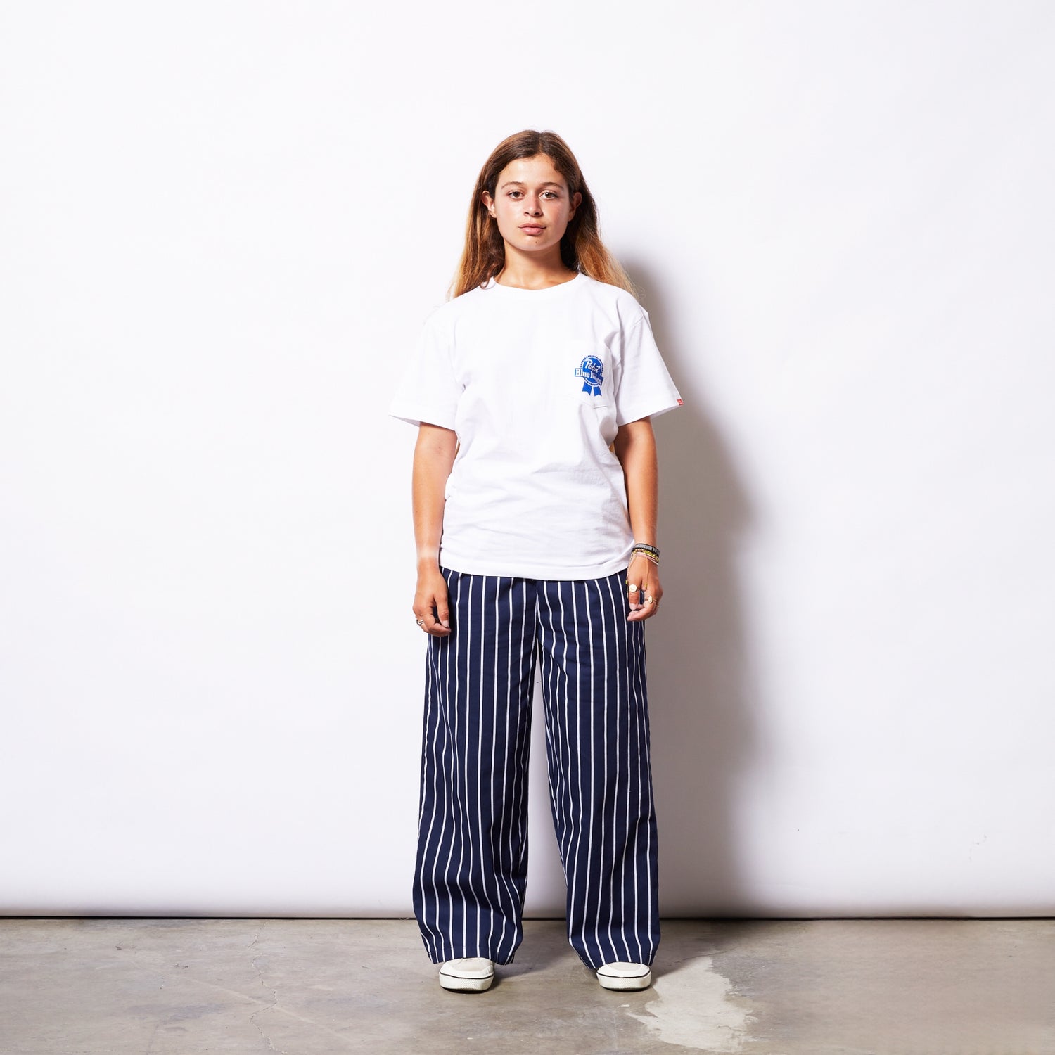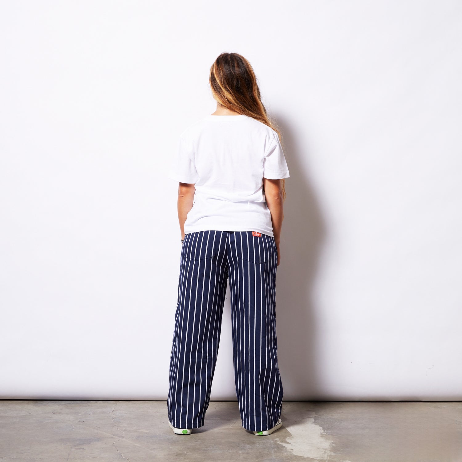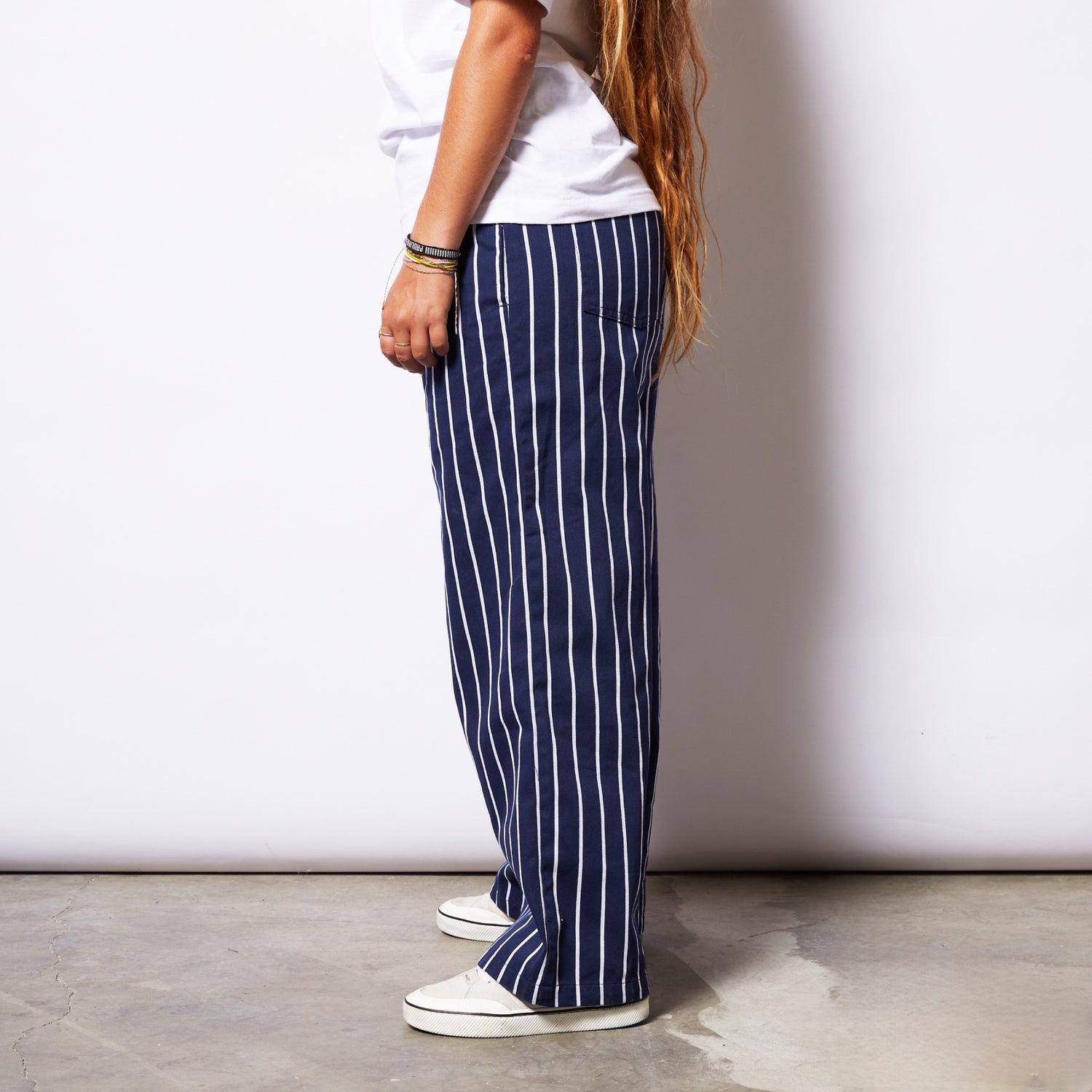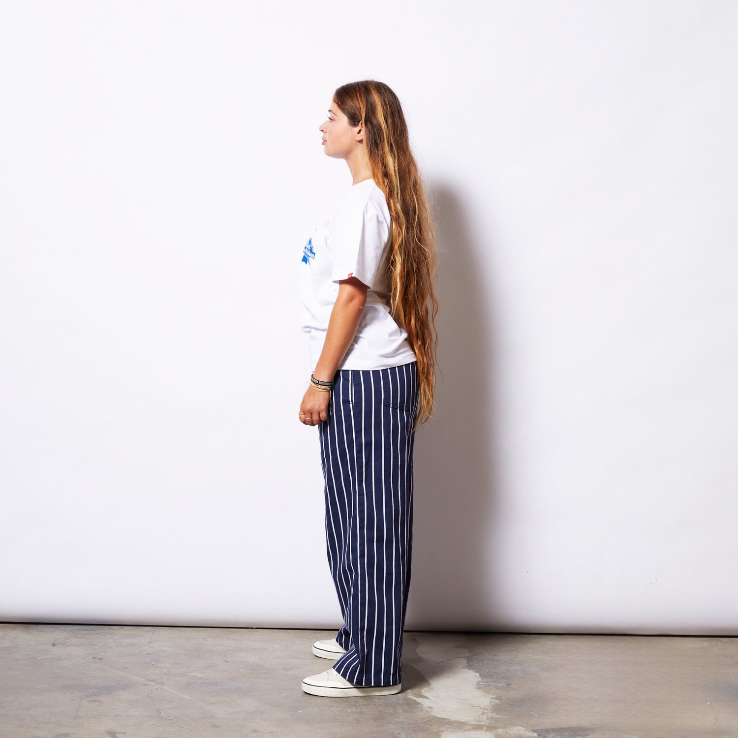 ワイドシルエットのChef Pants。通気性に優れているので熱のこもりやすい厨房や屋外での作業に向いています。ウエストはドローコードと太めのゴムでしっかりとホールドできます。