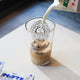 クイックマヌをいれたあと少量の水を入れて、よくかき混ぜて粉を溶かしてください。その後、水を80mlほど足してください。氷を加えてできあがり。