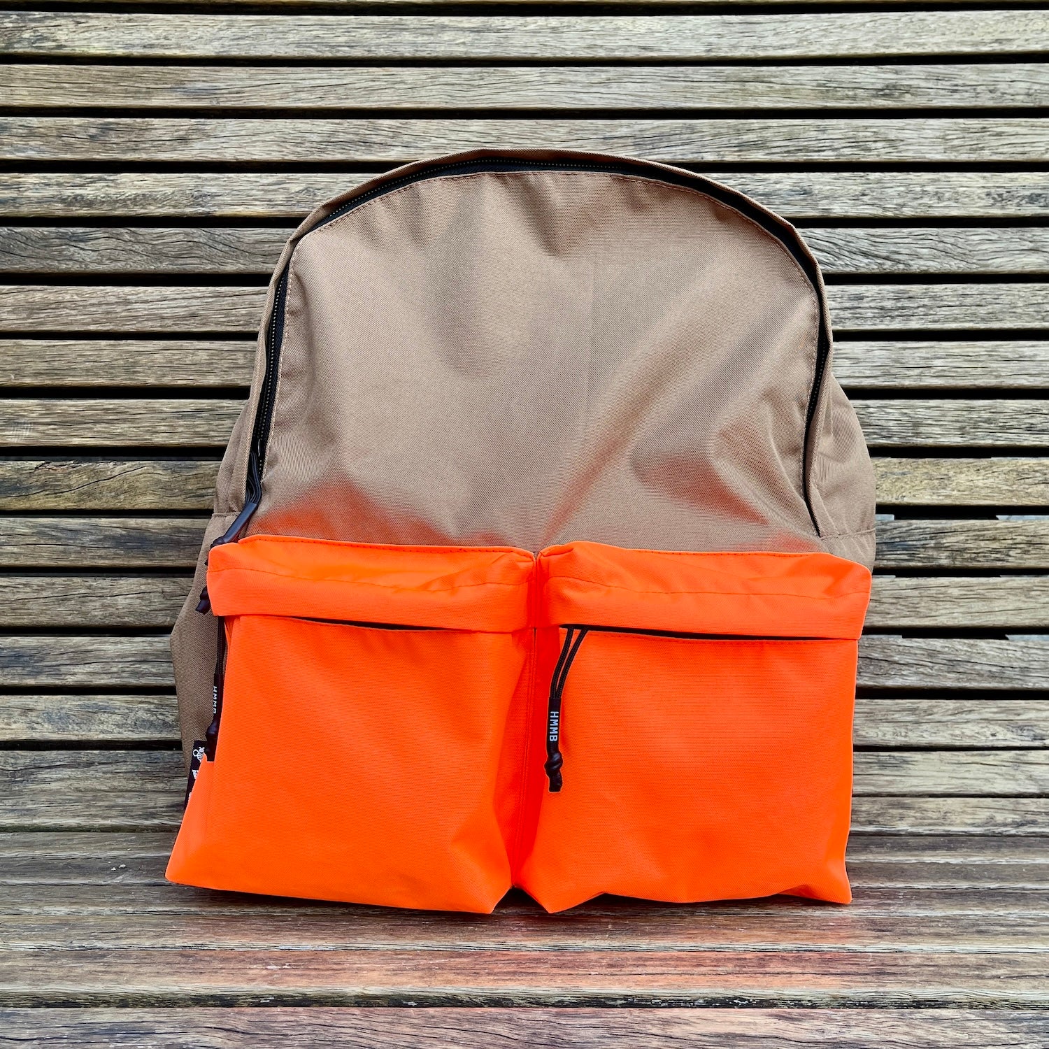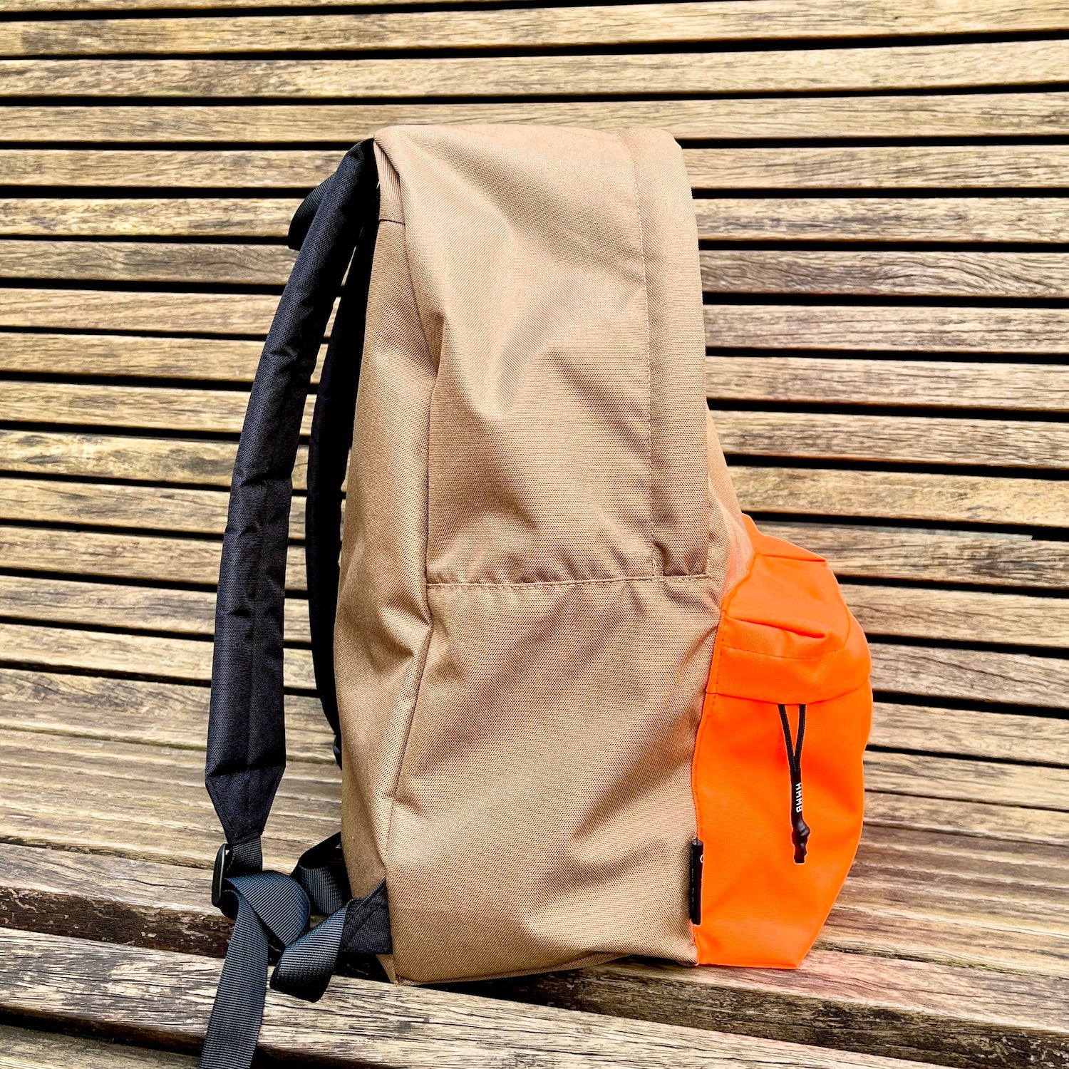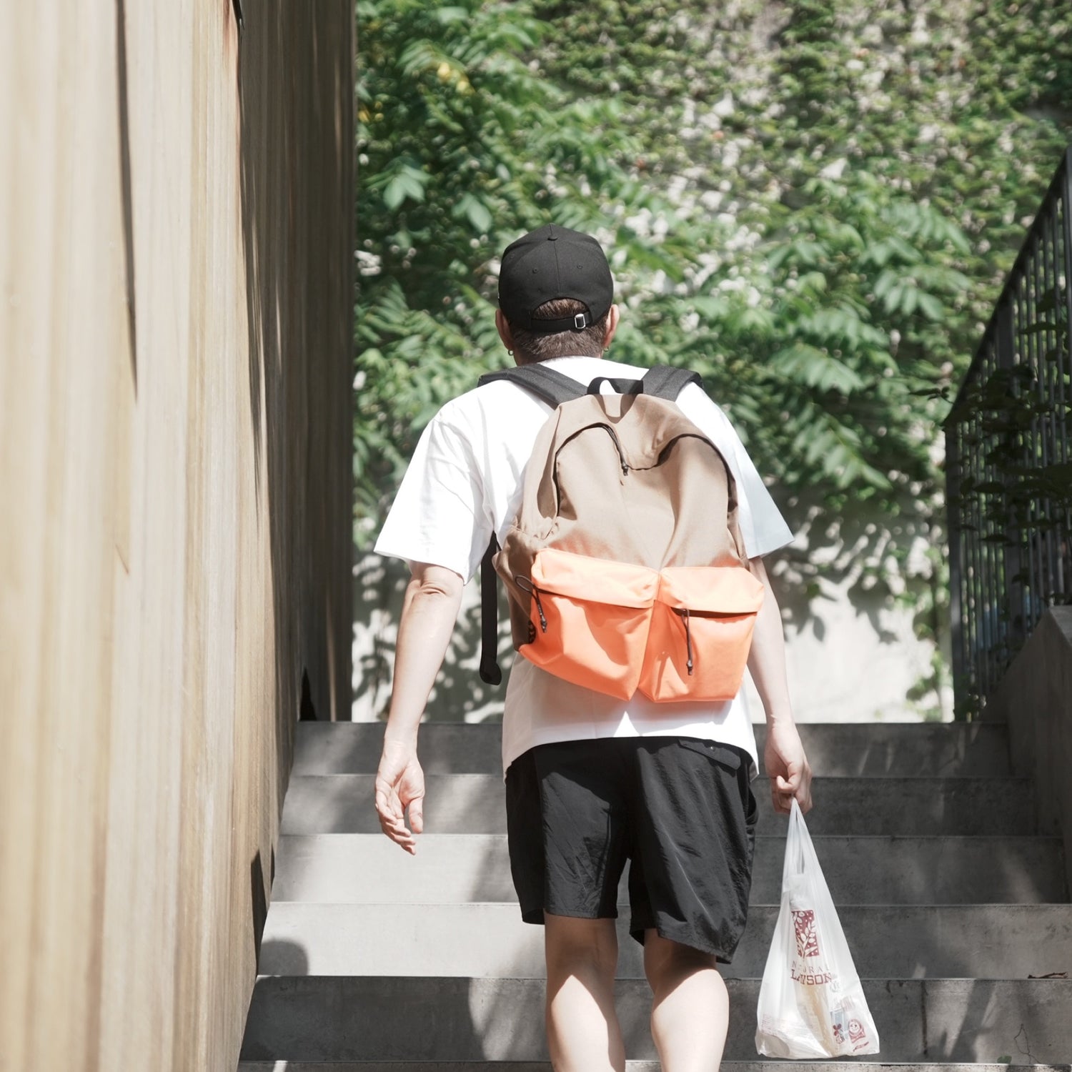 ベーシックなのに、ちゃんと可愛い。ようやく、"納得のいくバックパック"ができました。最大の推しポイントは、この配色。落ち着いたブラウンのボディに、ビビッドなオレンジのダブルポケット。派手すぎないのに、しっかり目を引く。正直、このカラーリング…かなり気に入ってます(自画自賛)。420gと軽量ながら、容量はたっぷり28L。旅行にも通勤にも◎。引き手は少し長めで、ブランドロゴ入り。細かいところも抜かりなし。幅広(65mm)のショルダーが、荷物の重さをしっかり分散してくれるので、肩にもやさしい。リング付きで、カラビナ派の方にも嬉しい設計にしました。そして何より、価格もバランス◎。このつくり、この使いやすさで、この価格なら、きっと納得してもらえるはず。ちゃんと可愛くて、ちゃんと使える。そんな理想をかたちにした、HATCHの自信作です。