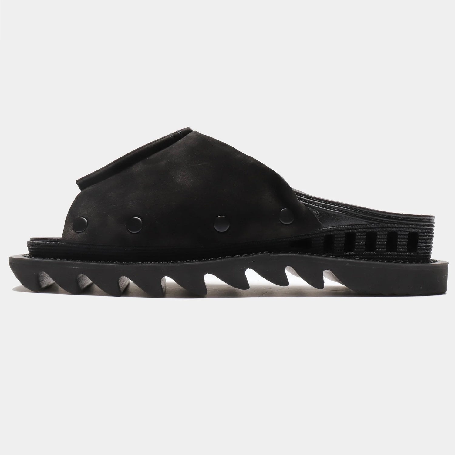 いわゆるベンサンをベースボディにしているものの、カンフーシューズのディテールを取り入れたセンターのレザーパーツのステッチワークだけでなく、シャークソールでカスタムされたボリューム感たっぷりのサンダルはベンサンとしての名残は皆無。カンフーシューズをサンダルに昇華した唯一無二のモデルだと思い個人的にも購入した一足。履き心地もベンサンならではの柔らかさで足に優しく、1マイル的な普段履きにもオシャレ履きにも最高です。