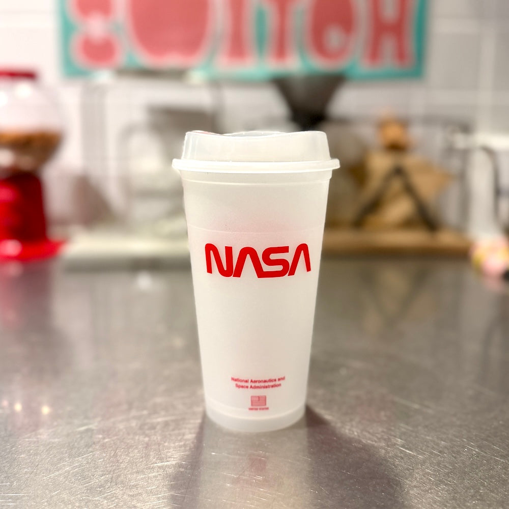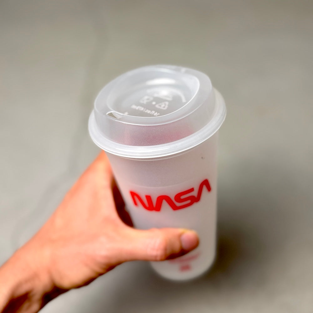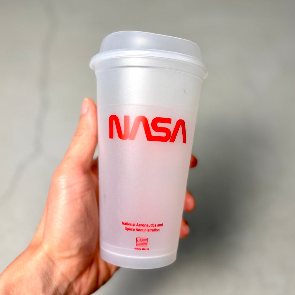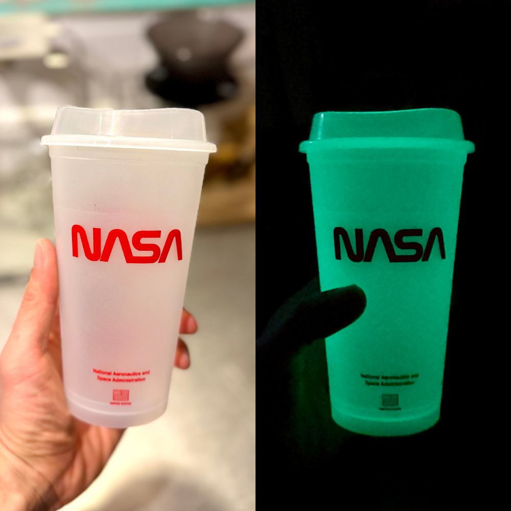 NASAの16オンスタンブラーです。プラスチックゴミを減らす為に誕生したリユーザブルカップ。洗って繰り返し使用できるのでエコで環境に優しい商品です。蓄光仕様なので、暗闇で光ります。蓄光具合・時間は環境(光源の強さや蓄光時間)で変わります。ご理解ある方のみご購入ください。耐熱温度 100度。食洗機も可能ですが印刷剥がれの原因となってしまうためお勧めはしておりません。