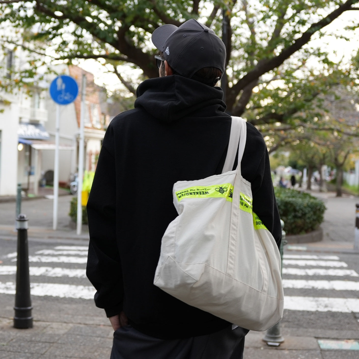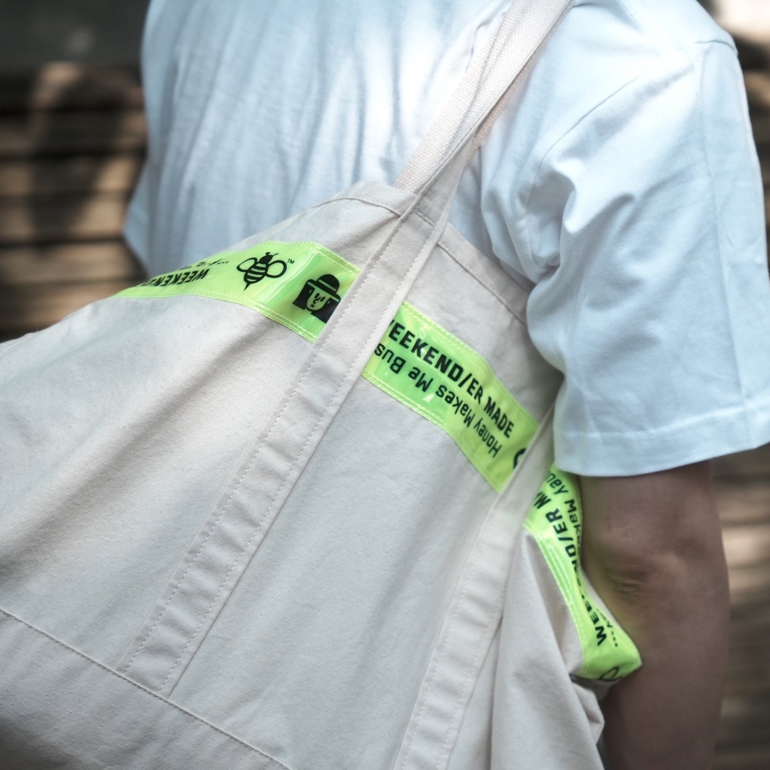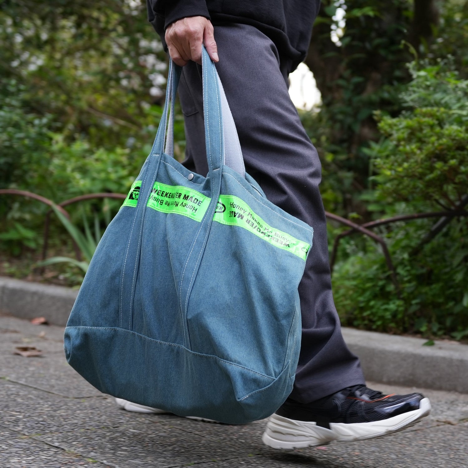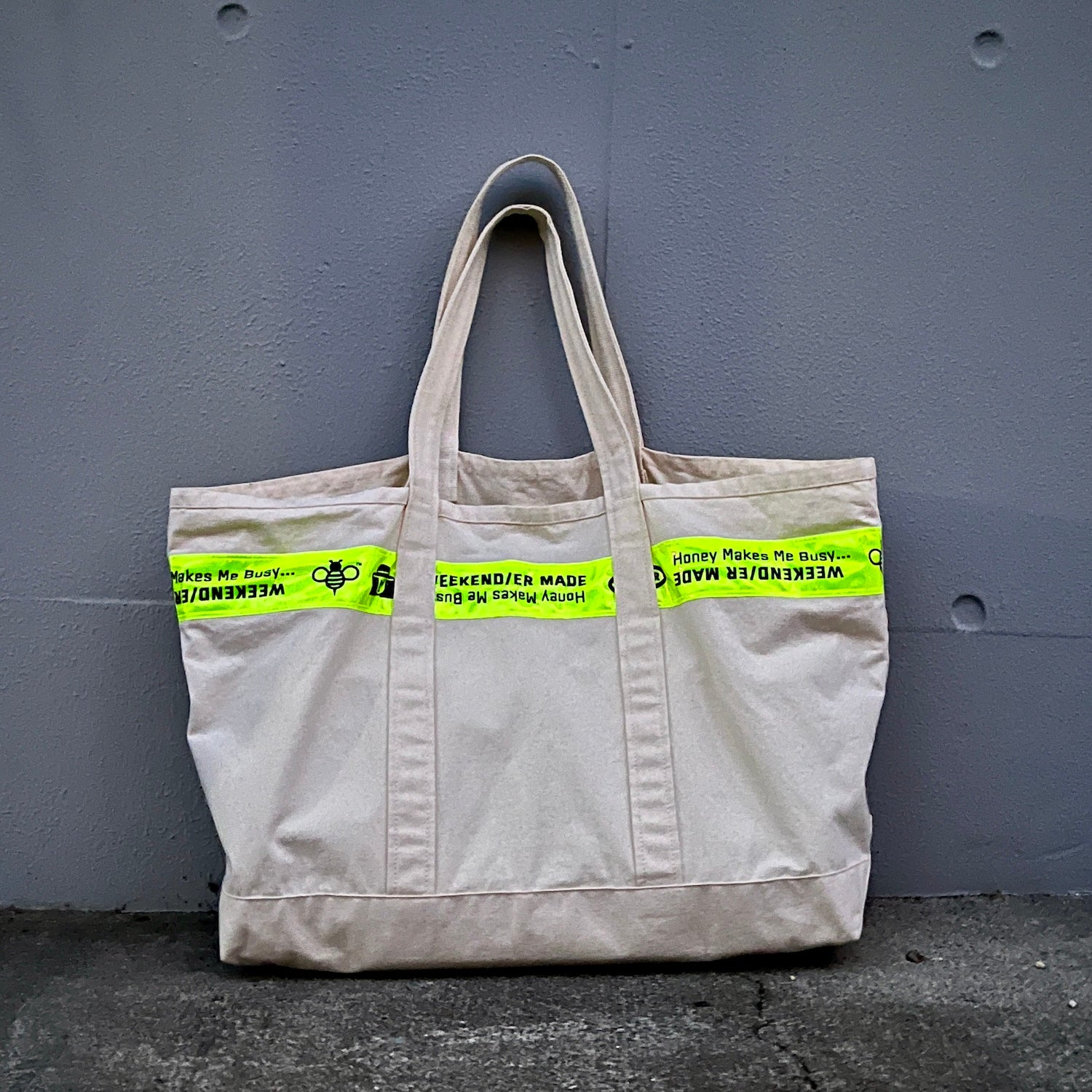 HATCHオリジナルブブランド【Honey Makes Me Busy … 】のトートバッグ。HATCH限定商品です。内ポケットはPCを完全に守るものではありません。デニムはボタン付き。