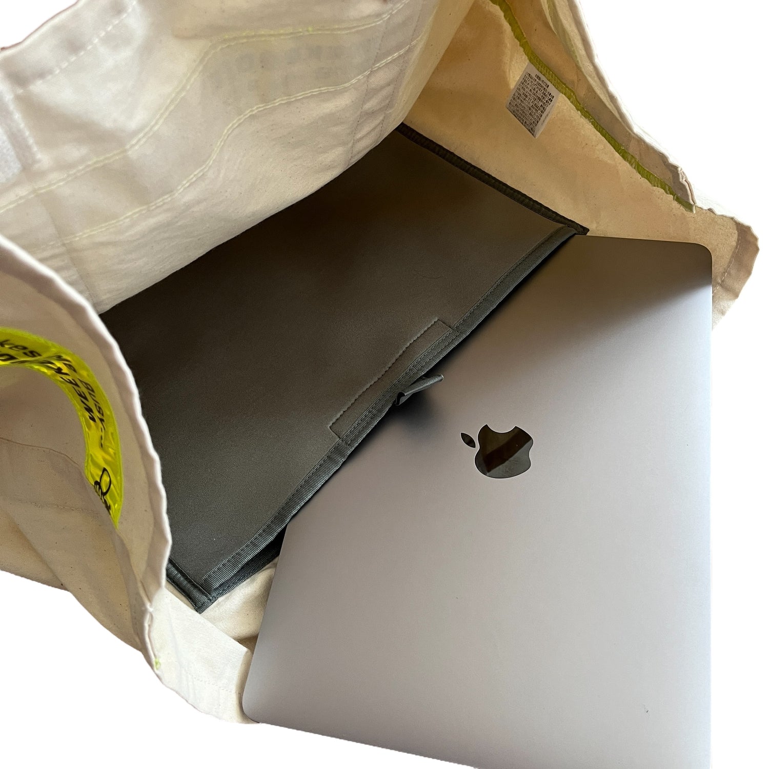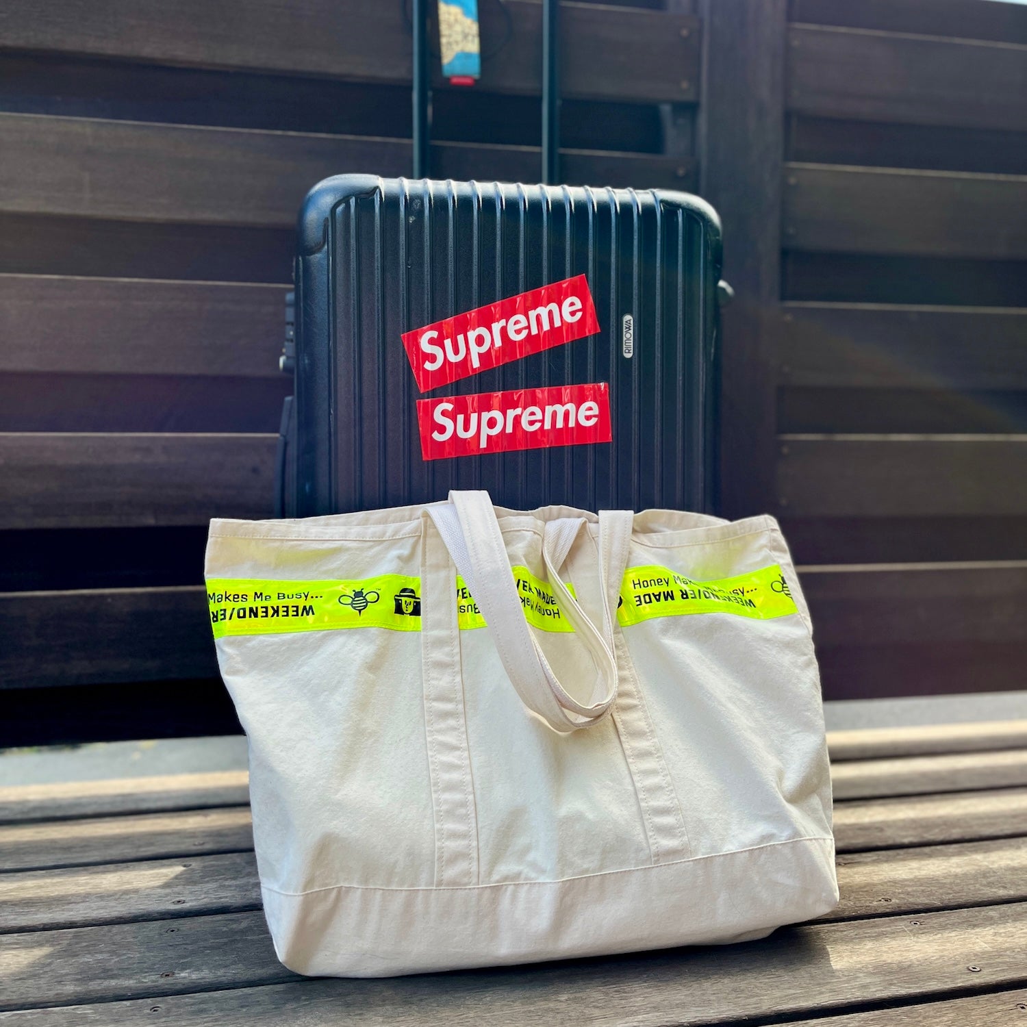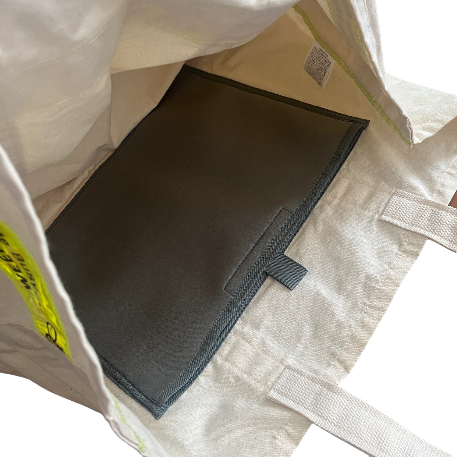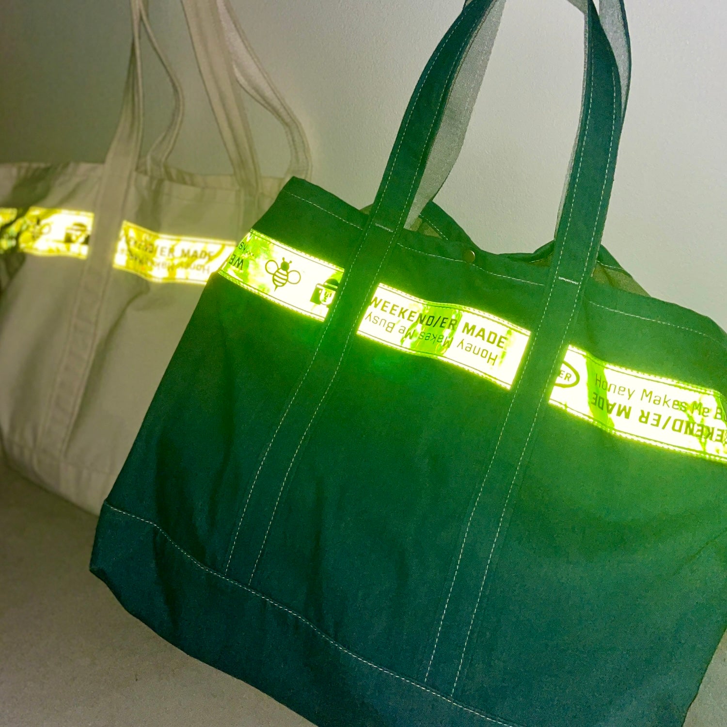 トート好きに応えるためにつくった1枚。シンプルだけど、ありそうでなかったデザイン。軽量オンスのコットン帆布に、リフレクターテープを大胆に組み合わせた、ミスマッチな素材使いが新しいトートバッグです。サイズ感はたっぷり大容量。仕事帰りのジムも、2泊くらいの旅行も余裕。内ポケットには、ウェットスーツのような合成ゴム素材を採用。タブレットやPCの持ち運びにも安心なつくりにしました。使いやすさも、価格も、しっかり優秀。新しいトートを買っても、結局これが一番使うやつでしょう。