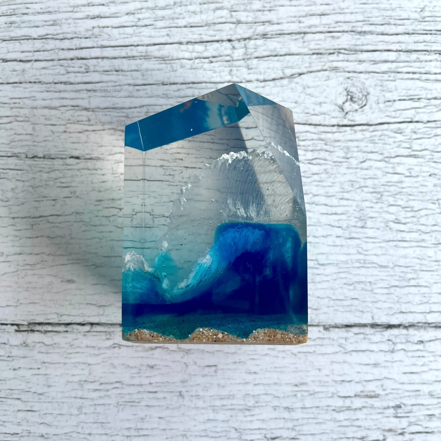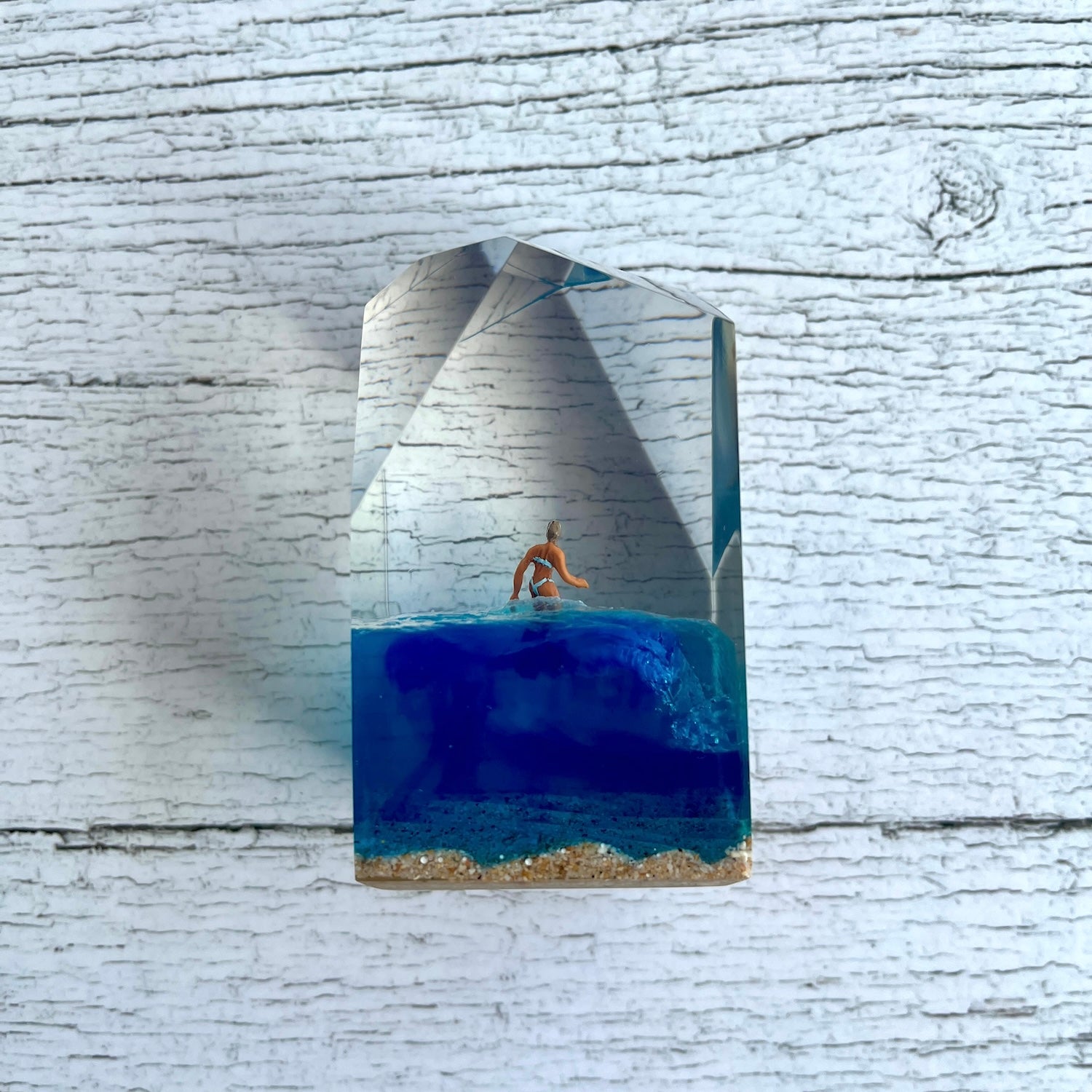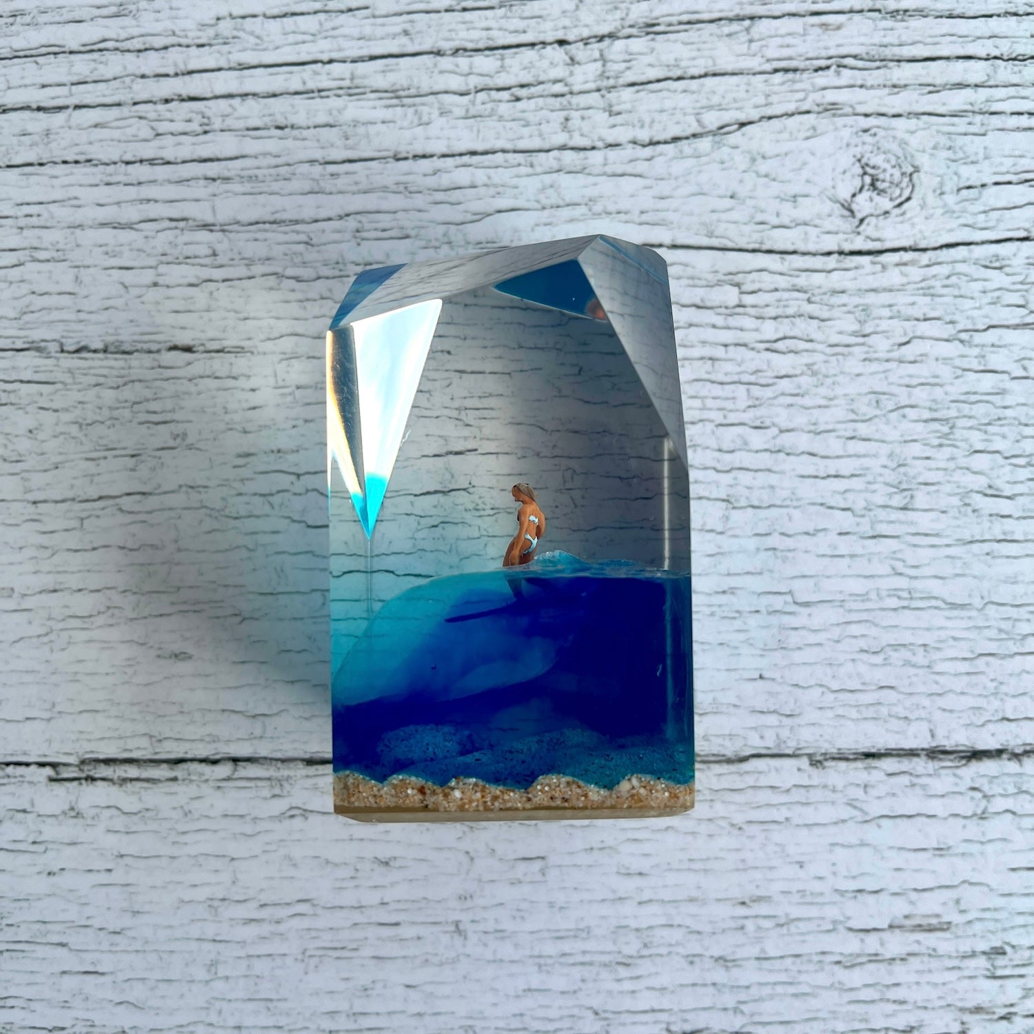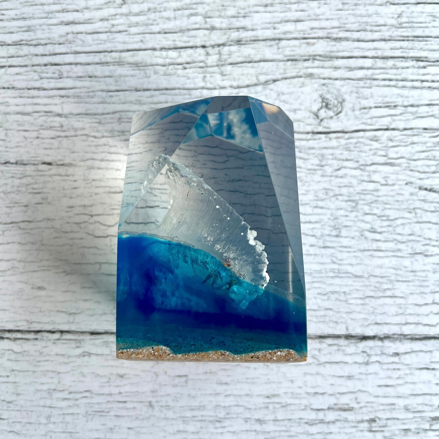 サーファーと板と波が一体となった瞬間を切り取り、ブレイクする波、さまざまな形の板、 サーファーのスタイル、ライダーの精神が表現される波上でのダンスをこの小さな世界で表現 。手に取った人がそこからサーフィンの何かを感じられるよう、1点1点ハンドメイドで丁寧に制作しています。サーファーであれば誰もが持っている波に乗る特別な喜び、その瞬間の感情がクリスタルキューブに閉じ込められています。クリスタルキューブを側に置くことで、様々な感情を無意識に統合することができればミッションは成功です。