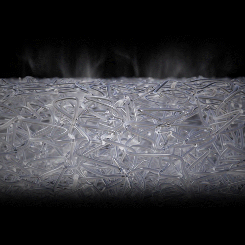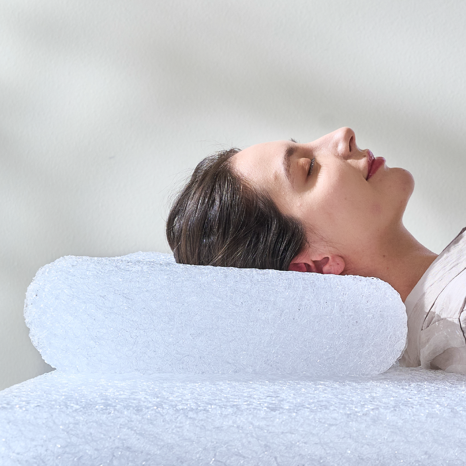 無数の繊維がスプリングの役割をし、反発力がありながらもふんわり立体的に頭を包み込む新感覚の弾力。