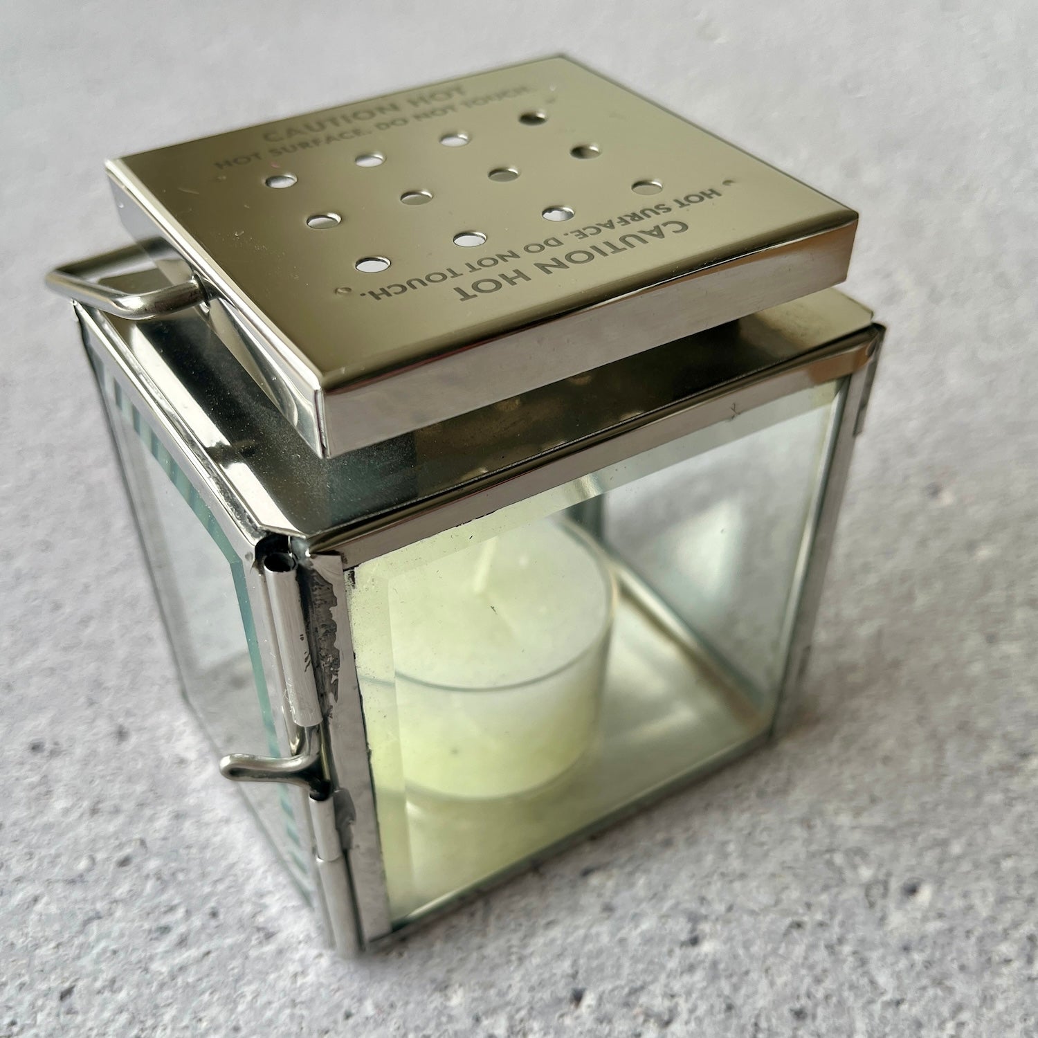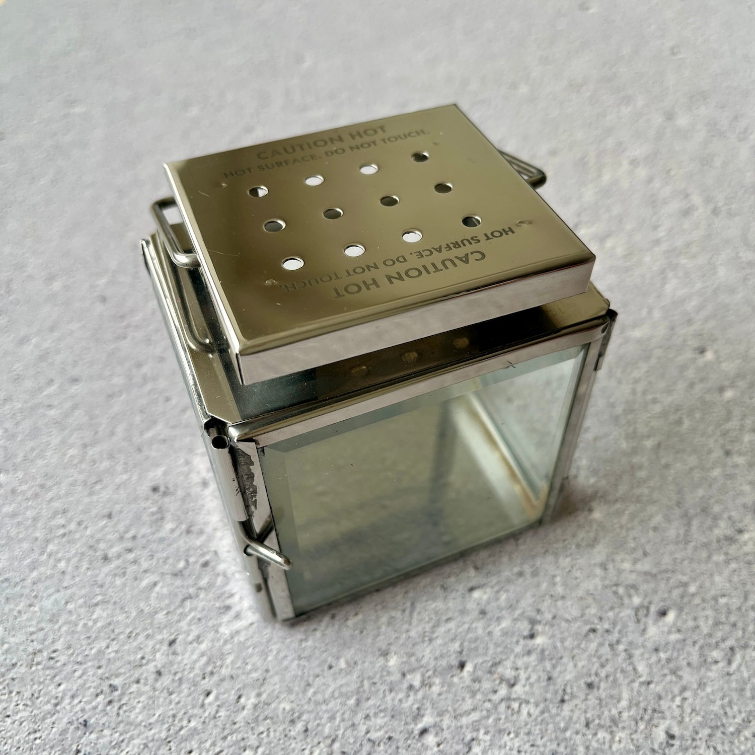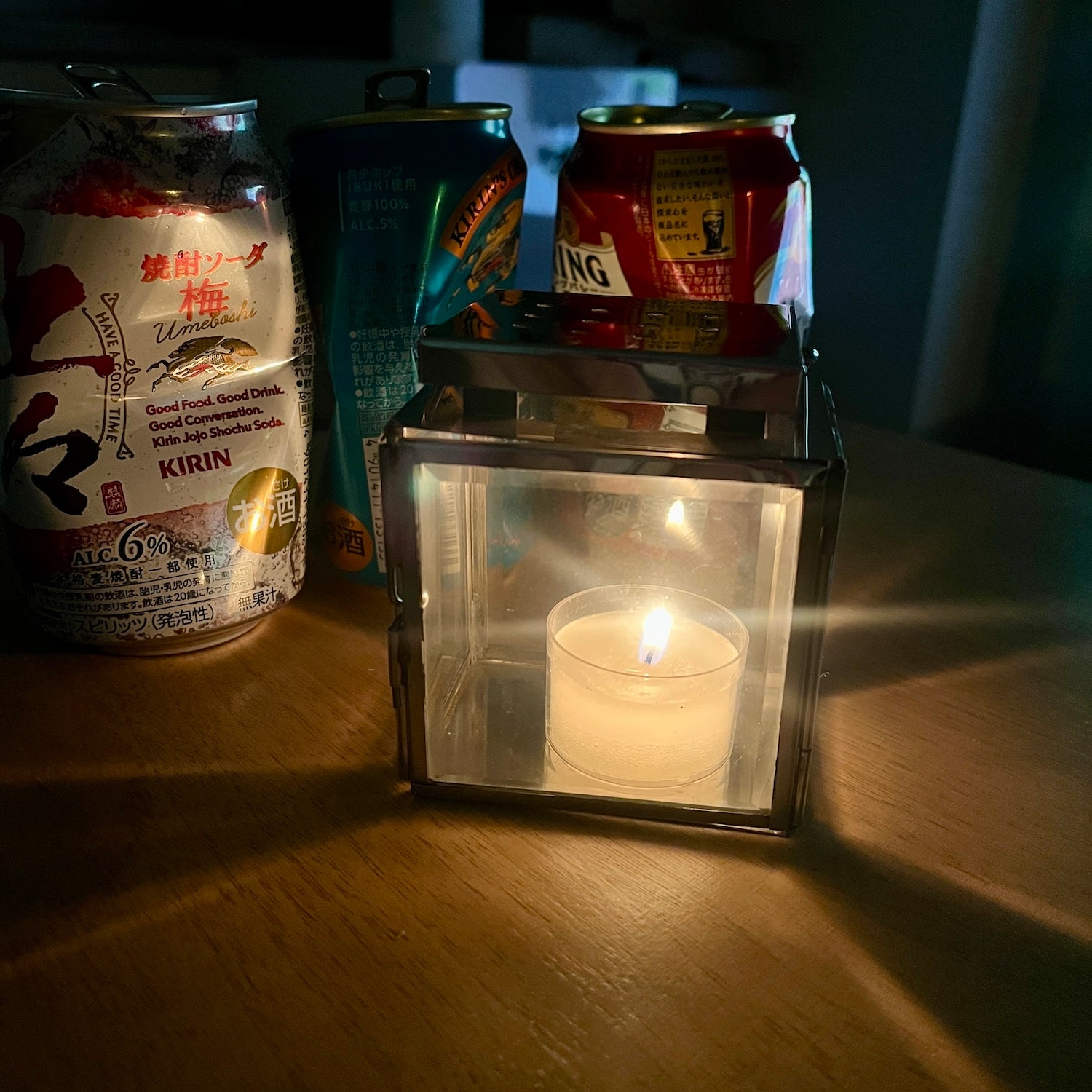 家飲みを“ちょっとお店っぽく”したい時に、めちゃくちゃ効くのがコレ。スチール×ガラスのティーライトキャンドルホルダー。光が反射して、いい感じにムーディーになるんです。食事のテンションが2、3倍は上がる(当社比)。ガラスに囲まれてるから風にも強くて、ベランダ飲みでも活躍。キャンドルを入れなくてもオブジェとしても成立するし、気分でお香(コーン型ね)を焚くのもアリ。この箱ひとつで、“なんてことない夜”が“なんかいい夜”に変わります。