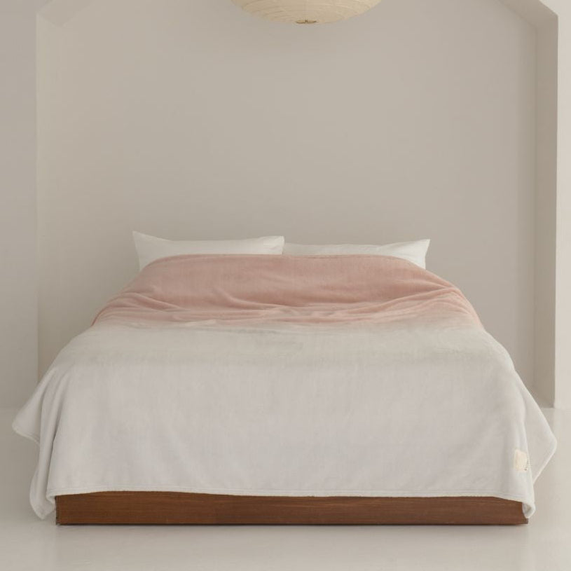 とろけるような、あたたかさ。もちふわな手触りが心地よく、デザインと機能性を兼ね備えた軽やかなブランケット。グラデーションカラーでどんなお部屋にも馴染み、心地よく落ち着いた空間をつくります。寝室を彩るインテリアとしても楽しんでいただけます。ご家庭で洗濯可能(ネット使用)なので、いつでも快適にお使いいただけます。