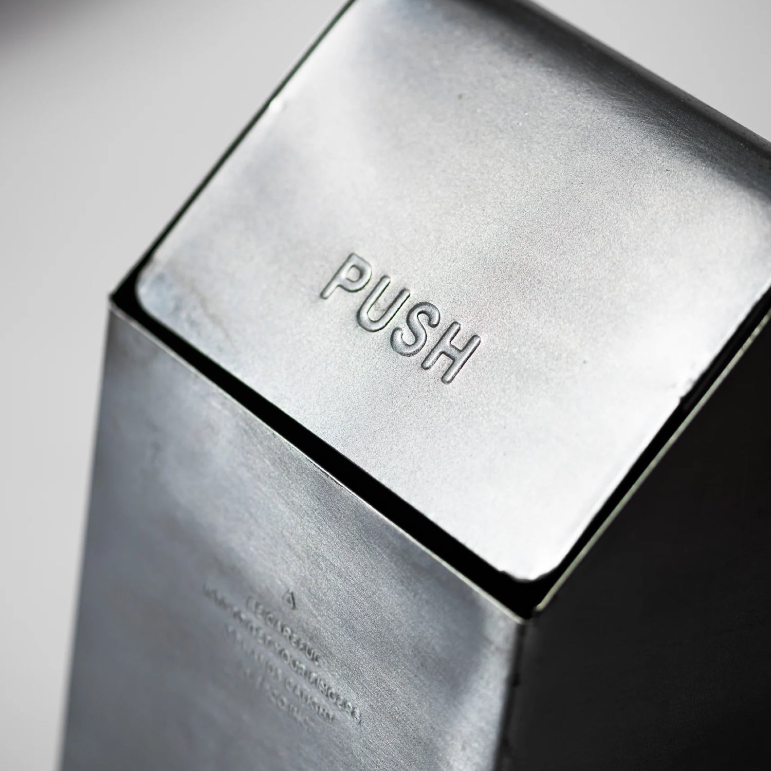 場所を取らず、中身も気にならず、それでいてスタイリッシュで程よいオシャレさもあって…色んなインテリアアイテムの中でも、特にゴミ箱は細かな条件が乗っかります。とりあえず使い勝手良くて、カッコいいものがいい!出会いました。どこに置いてもキマります。