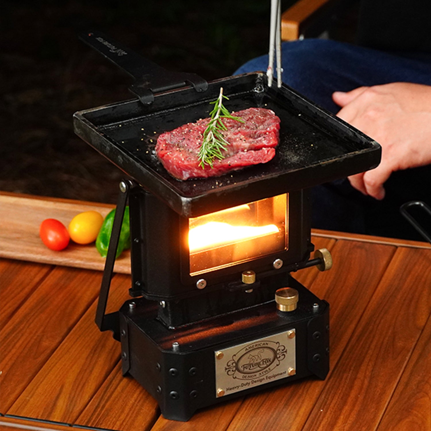 そこで、ヴィンテージ感をそのままに、アウトドア仕様に再設計したのが本製品です。オイルを入れて火をつけるだけで、多機能なキャンプギアに早変わりします。