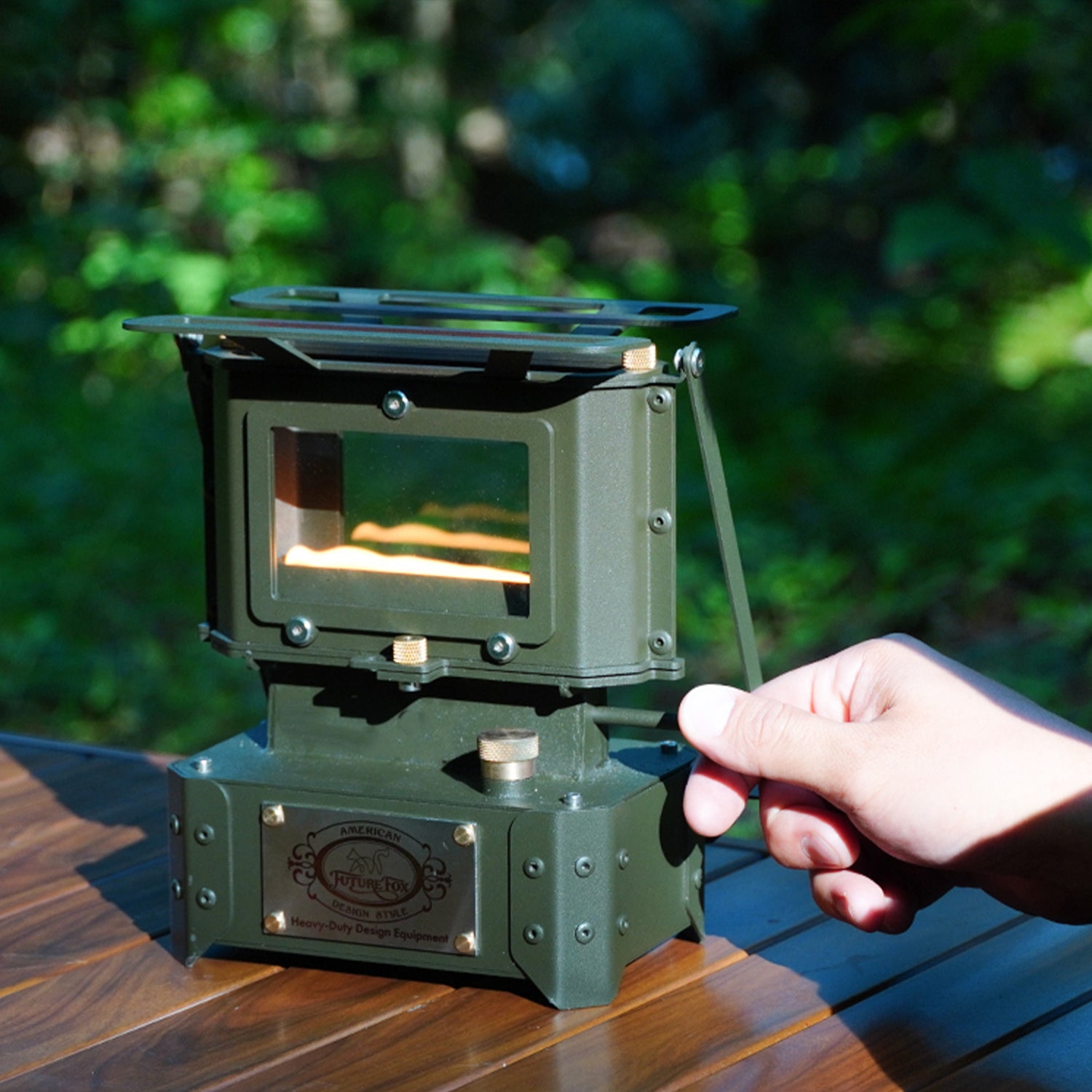 FUTURE FOXのアイロンストーブの最大の特徴は、”オリーブカラー”です。ブラックのアイロンストーブは見かけますが、オリーブカラーはまだ世の中にないと思います。「他の人とは違うアイロンストーブが欲しい」という方にもおすすめです。