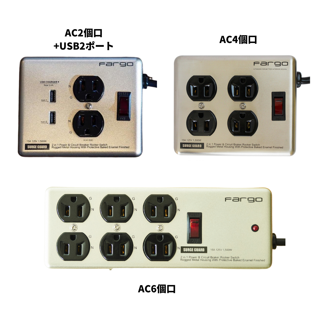・家庭用ACコンセント 2個口 or 4個口 or 6個口(いずれも3ピン対応)