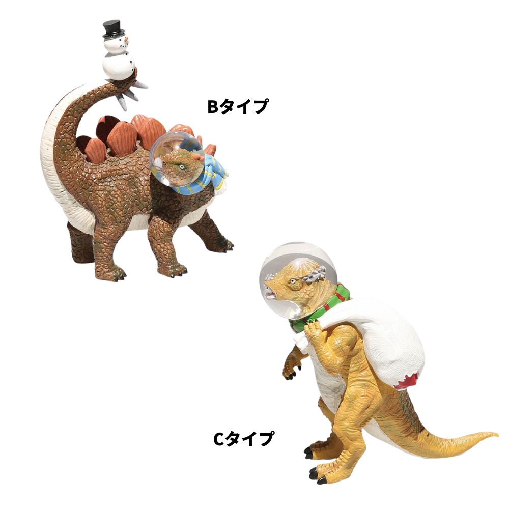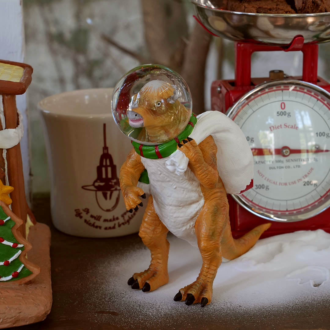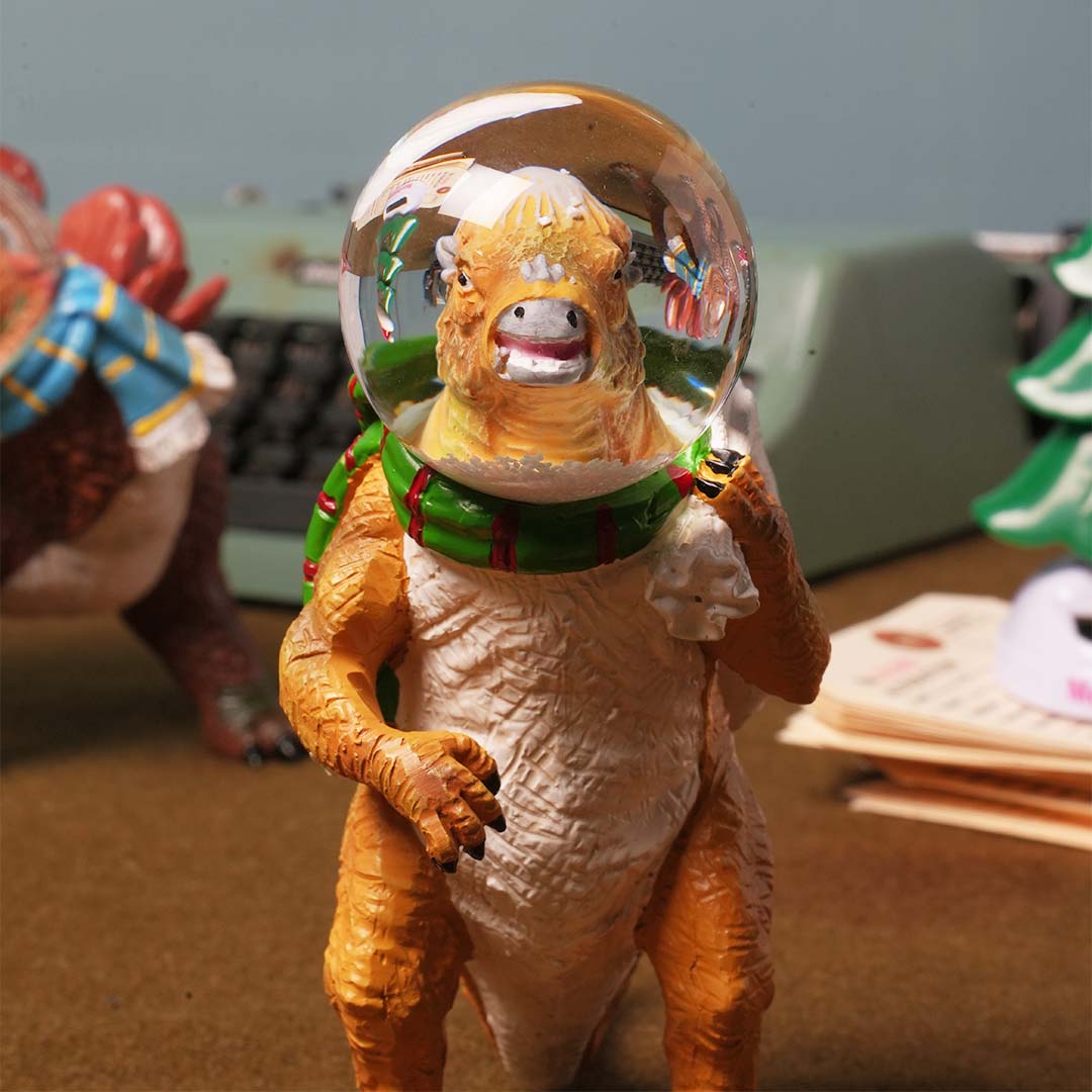 強靭な見た目によらず健気にツリーを背負うトリケラトプスのスノードーム。 大事そうに紐でくくったツリーを誰かの元へ運んでいるようで、なんとも愛くるしい。 少し抜けのある遊び心溢れるデザインは、眺めているだけで思わず笑顔になってしまいます。