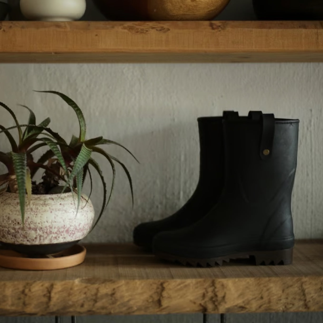 北海道の開拓の歴史と共に歩んできたゴム長靴は、日々の様々なシチュエーションにおいても活躍してくれます。例えば、雨の日のレインコートと共に、活気のある朝一の市場へ向かうとき、毎日のガーデニングや花仕事、畑仕事のとき、ちょっとしたピクニックや森の中へ山菜採り,家族や仲間とのキャンプやアウトドアで、北国においては冬場の除雪、雪道などでも。きっと頼りになる道具のような一足として様々なシーンが浮かびます。