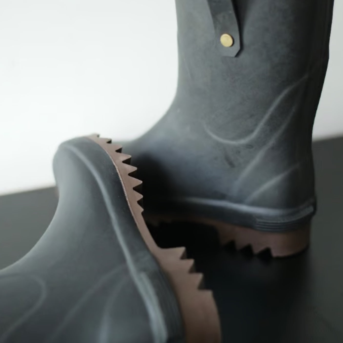Daiichi Rubberでは、かつて画一的なものが良しとされ、時代と共に減りつつある「直接加硫」のヴァルカナイズ製法の価値を復活させ、ラバーの自然な表情をそのまま生かしたプロダクトを展開していきます。RAKAは、そんなDaiichi Rubberの姿勢を象徴するラバーブーツです。