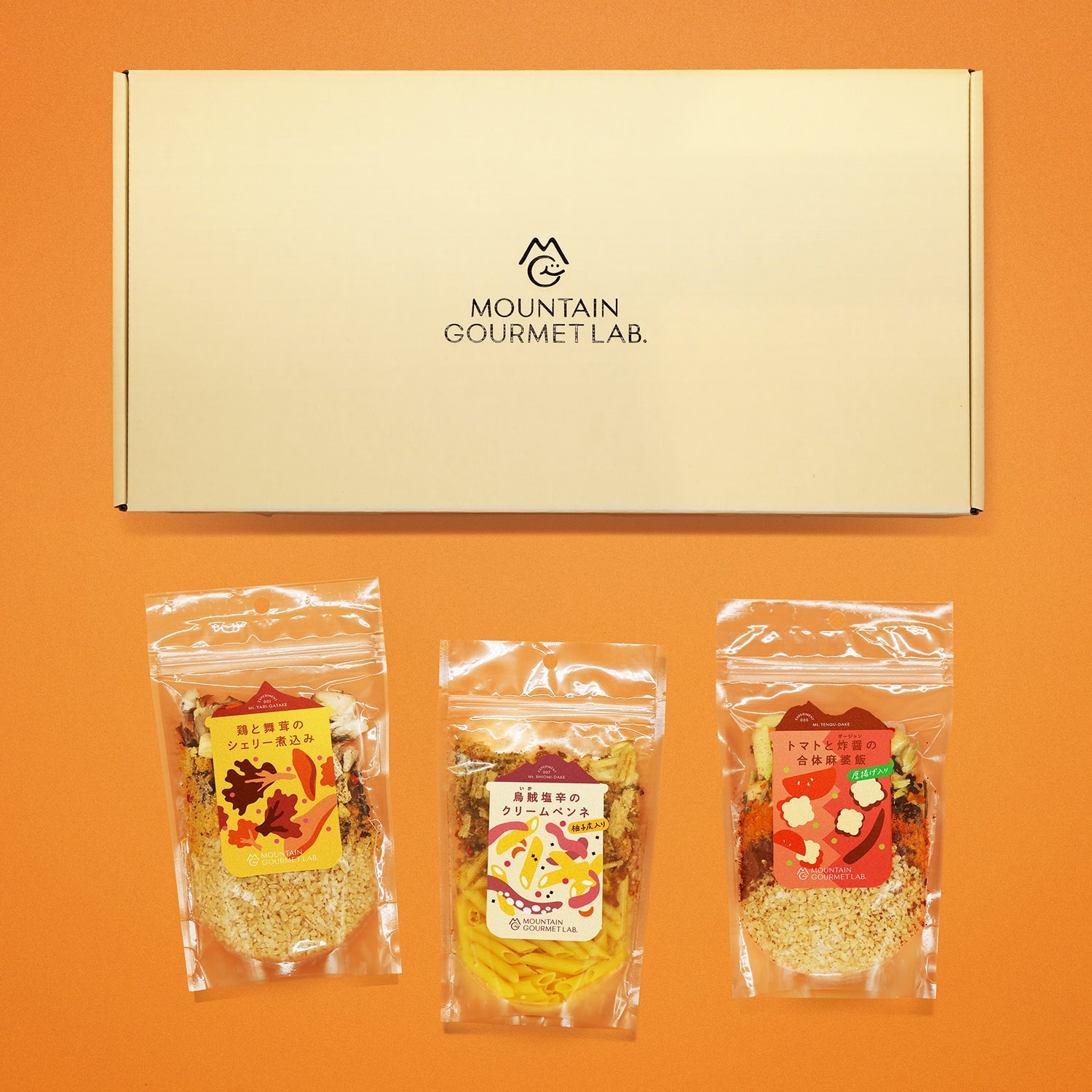マウンテン グルメ ラボの商品はいつも風景とともにあります。急登を登りきったあとに、突如開ける神々しい山々。気持ちよく疲れた体のコンディションと、風や清々しい空気。山を最高の景色をもったレストランと見立てて、そこに持って行けるレストランクオリティの山飯を開発しました。バックパックに収まるシェフの味をぜひ堪能してください。