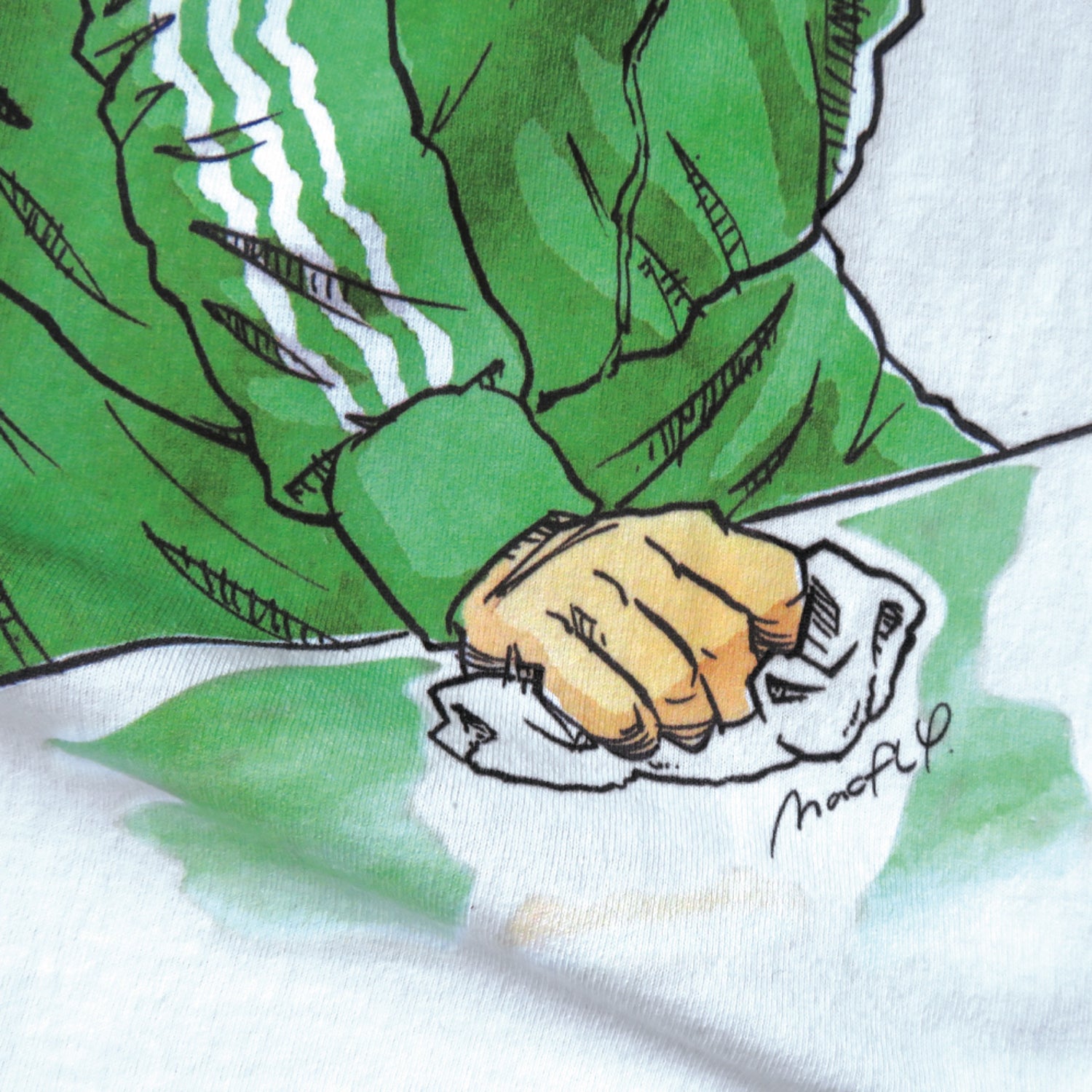 Tシャツ袖部分にはワンポイントで、ジョージver.1985特製ワッペンが付きます。「刺繍の町」と呼ばれる群馬県桐生市の老舗工場にて、国内最高クラスの刺繍技術を駆使して小さなワッペンを緻密に縫い上げました。刺繍糸からワッペンの土台となるフェルト生地に至るまで全てJETLINK特注品を使用しています。小さいパーツながらも日本の職人技術が誇るメイド・イン・ジャパンの逸品をお楽しみください。