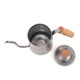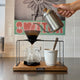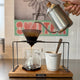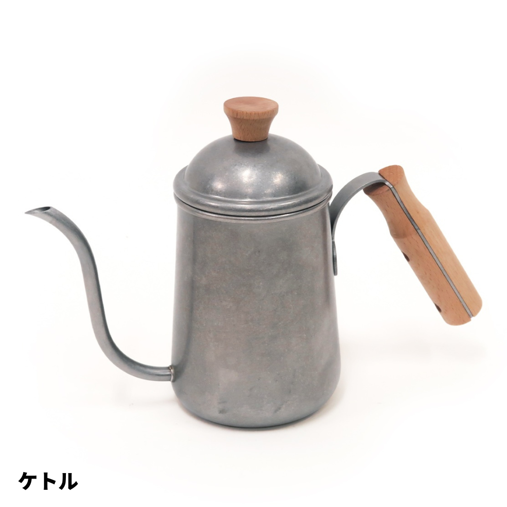 | 素材 | ドリッパー:ALUMINUM、POLYCARBONATE、SILICONE ガラスポット:HEAT RESISTANT GLASS クリップ&スプーン:STAINLESS ケトル:STAINLESS、BEACH WOOD ドリッパースタンド:STEEL、MANGO WOOD |