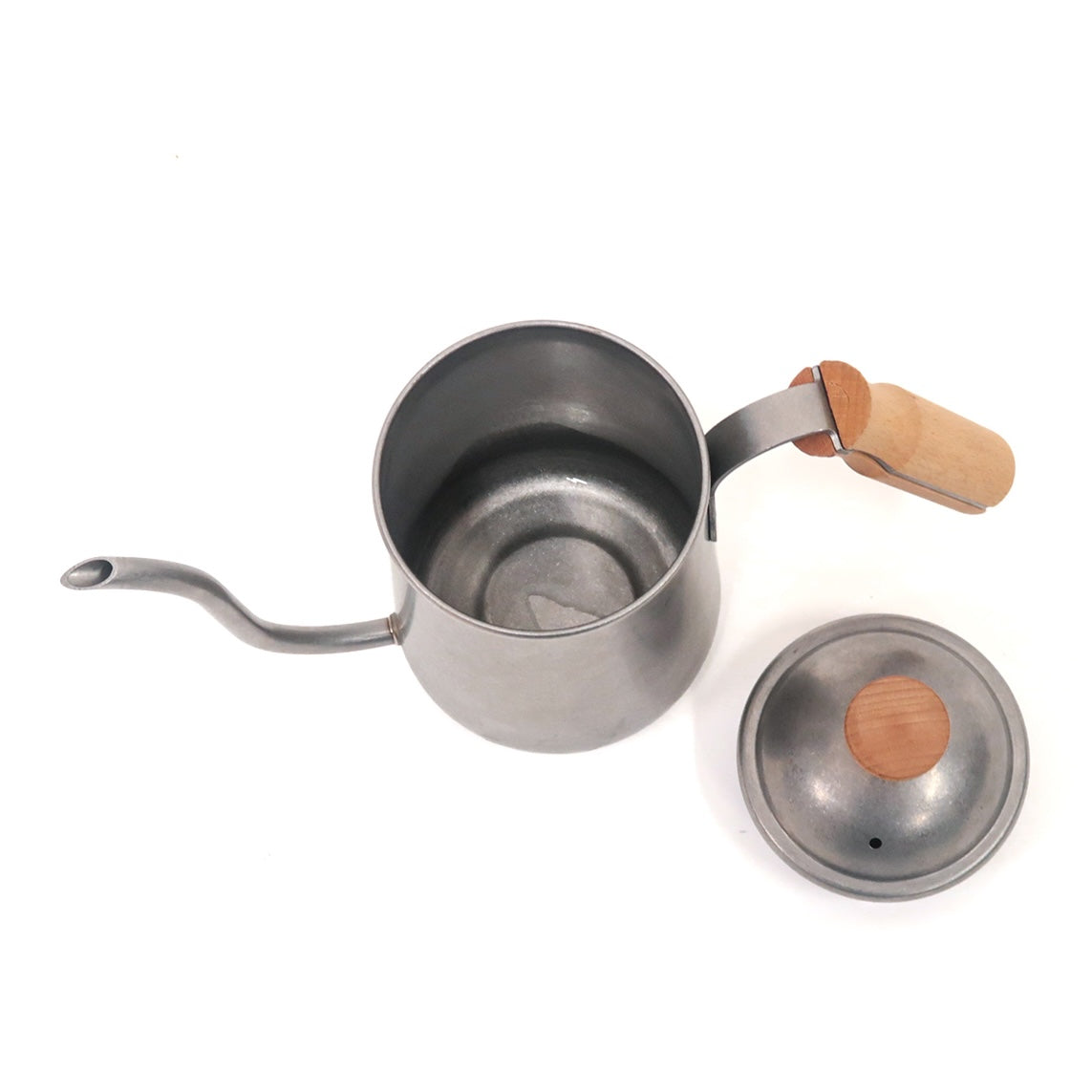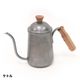 どこか懐かしいフォルムのミニマルなコーヒーケトル。ステンレスの表面を細かく研磨することで、長く使い込まれたビンテージ食器のようなマットな質感を再現。1人~2人分のドリップコーヒーにちょうど良い容量約650ml。デザインとしても魅力的な細口のノズルは湯量の調節がしやすく、ムラなく安定してお湯を注ぐことが出来るので、コーヒーのドリップに最適です。ステンレスのクールなカラーと、マットな質感がまとう上質な雰囲気はヴィンテージ&インダストリアルアイテムが好きな方におすすめ。〇直火使用可、×IH使用不可