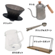 | サイズ | ドリッパー:約 φ112×H75mm、125g ガラスポット:約 W130×D75×H110mm、200g クリップ&スプーン:約 W1740×D365mm、40g ケトル:約 W250×D95×H170mm、650ml、360g ドリッパースタンド:約 W300×D140×H165mm、560g |
