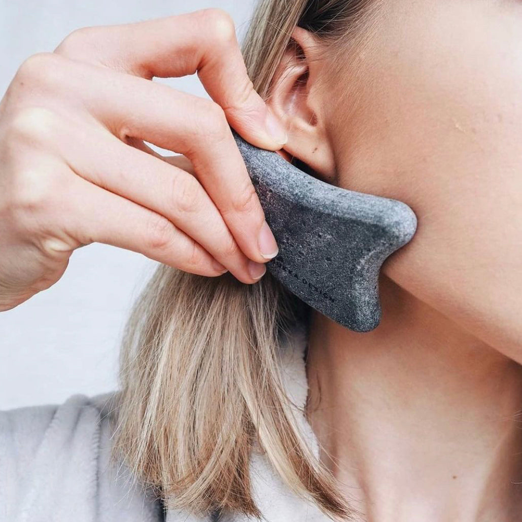 28億年前にフィンランドの地で生み出された天然石ソープストーンならではの手触り。じんわり温めてリラックスしたり、朝すっきりとむくみをとりたい時には冷蔵庫にスタンバイさせておけばいつでもスすっきりとクールな冷感ですっきりさせます。自分の気持ちの良い圧をかけリラックス。