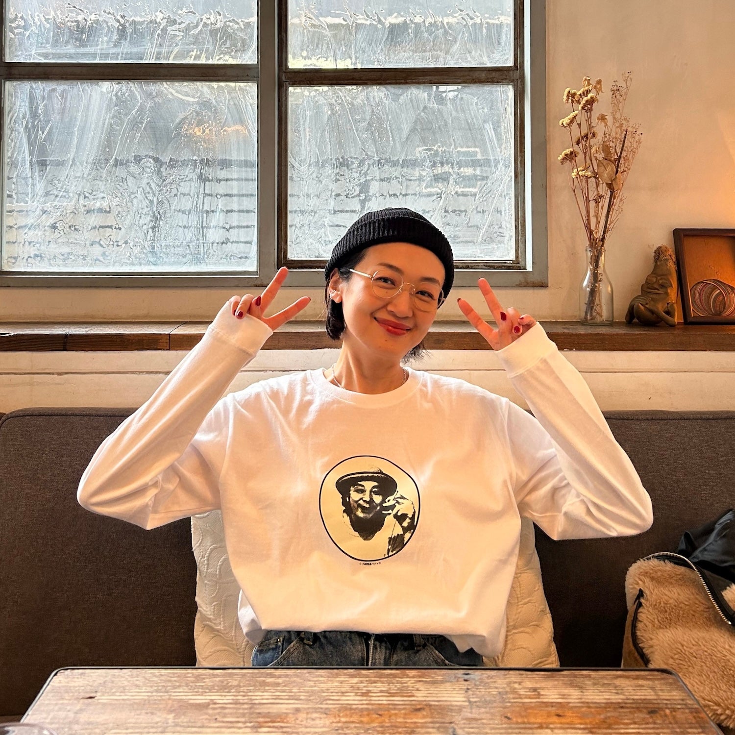 私のロゴやグッズでもお世話になっているデザイナーが主を務める「不純喫茶ベナレス」のTシャツは全て「どうかしている」。その中でも一際「どうかしている」このおじさんの愛らしい顔を胸に掲げた時、なんとも言えない遊び心が体の奥底からみなぎってくる。着用時の視聴率100%、最強の抜け感、絶妙な洒落気分の日にぜひ。