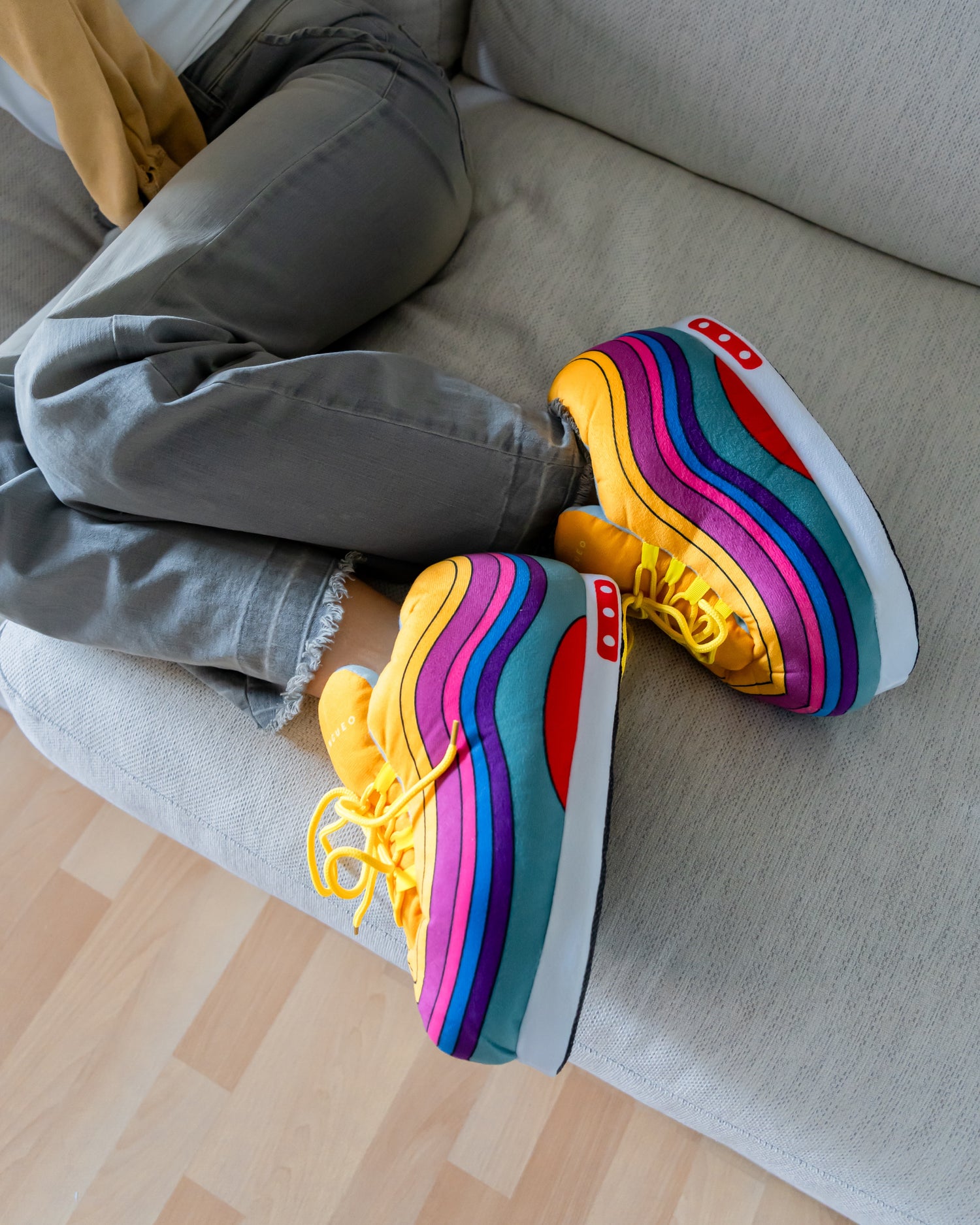 デザインは独創的でありユニーク。最もバイラルなスニーカーからインスピレーションを得ています。靴紐もしっかり結べます。室内でもファッショナブルにトレンディーな雰囲気を演出しましょ!サイズは男女兼用でフリーサイズ。100%ポリエステルウルトラソフトフリースでできております。対応サイズ 22.0cm~28.5cm