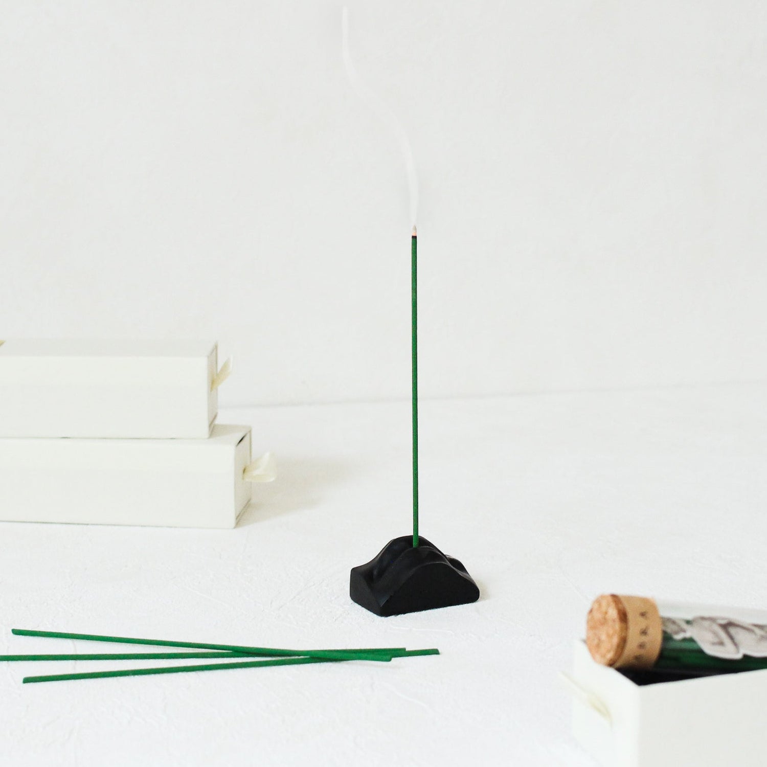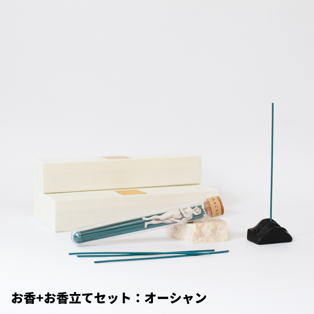 | 素材 | お香:ダブ粉、白檀、香料 お香立て:水溶性樹脂 |