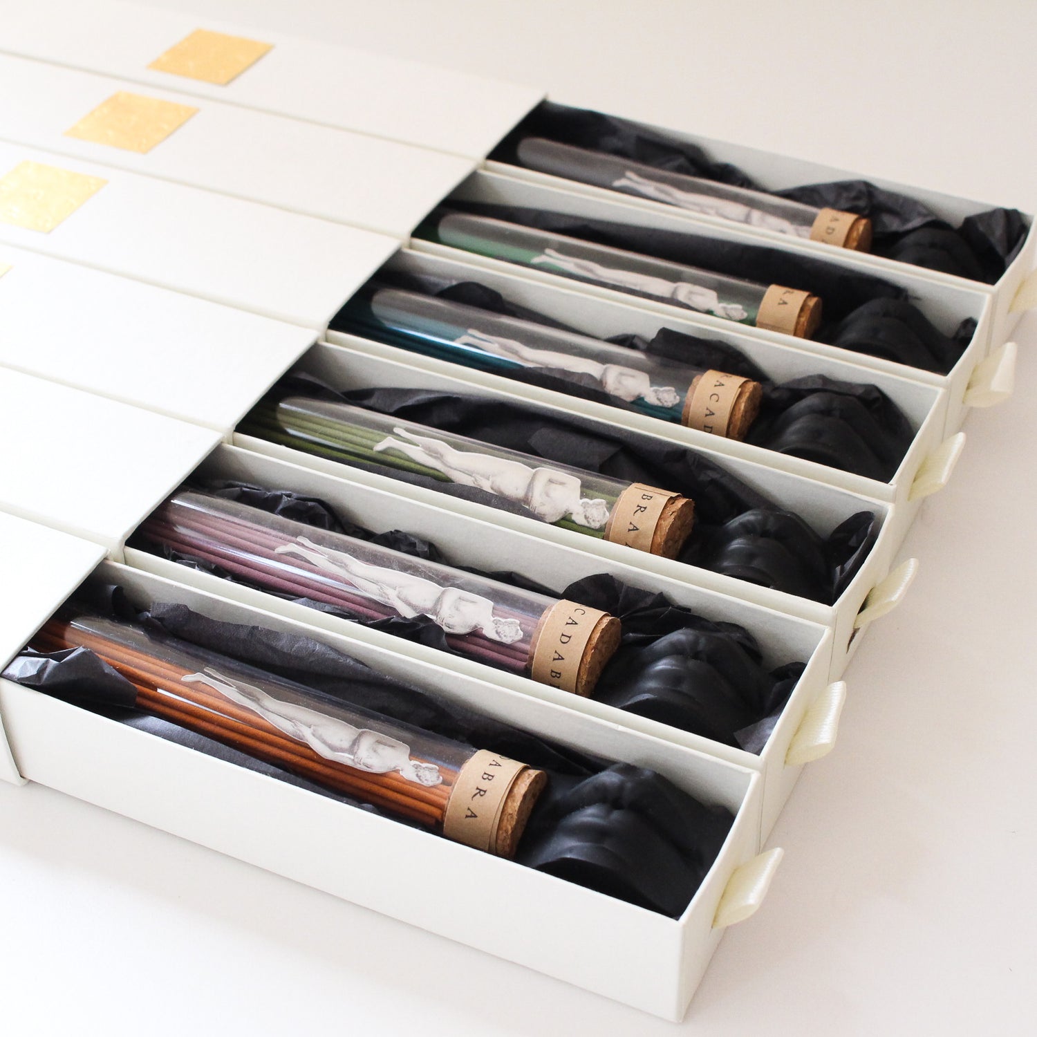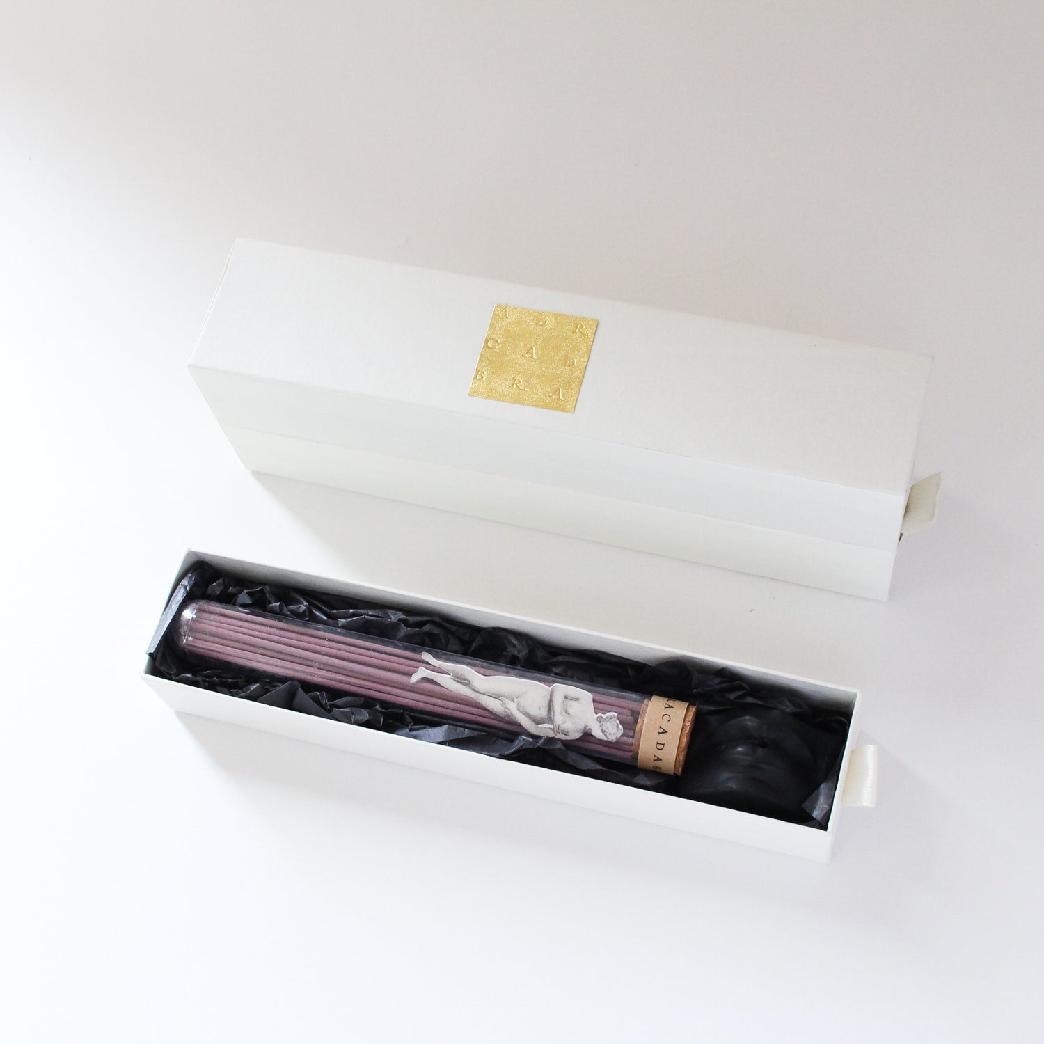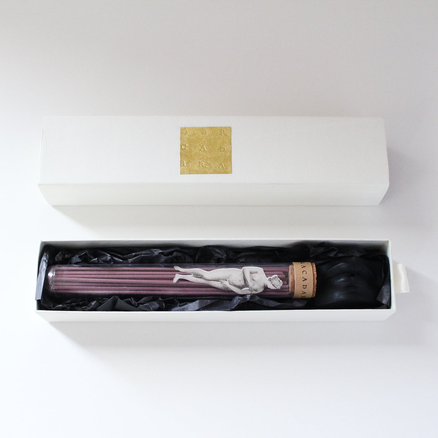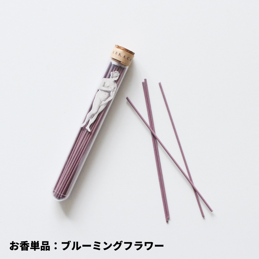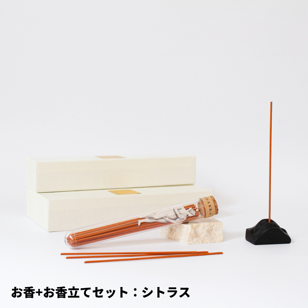 昔から読経を唱える際、決まったサイズのお香が使われてきました。お香は香りだけでなく時間を測ることもできるのです。アブラカダブラのお香の燃焼時間は30分間。さぁ、唱えましょう。唱えるのテーマ、唇モチーフのお香立てのセットもご用意しました。