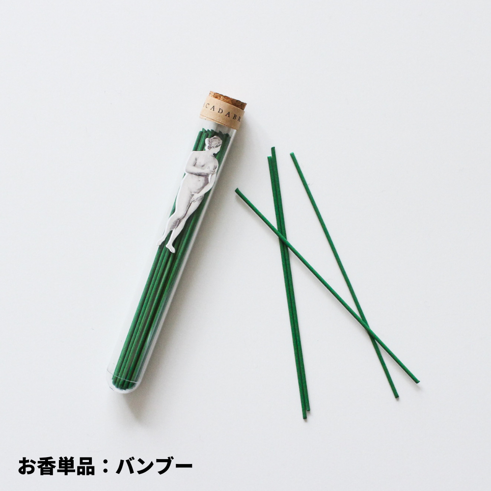 バンブー:竹から滴る雫、清涼感の中で竹林の空気に触れる時。澄んだ空気をイメージする香り。