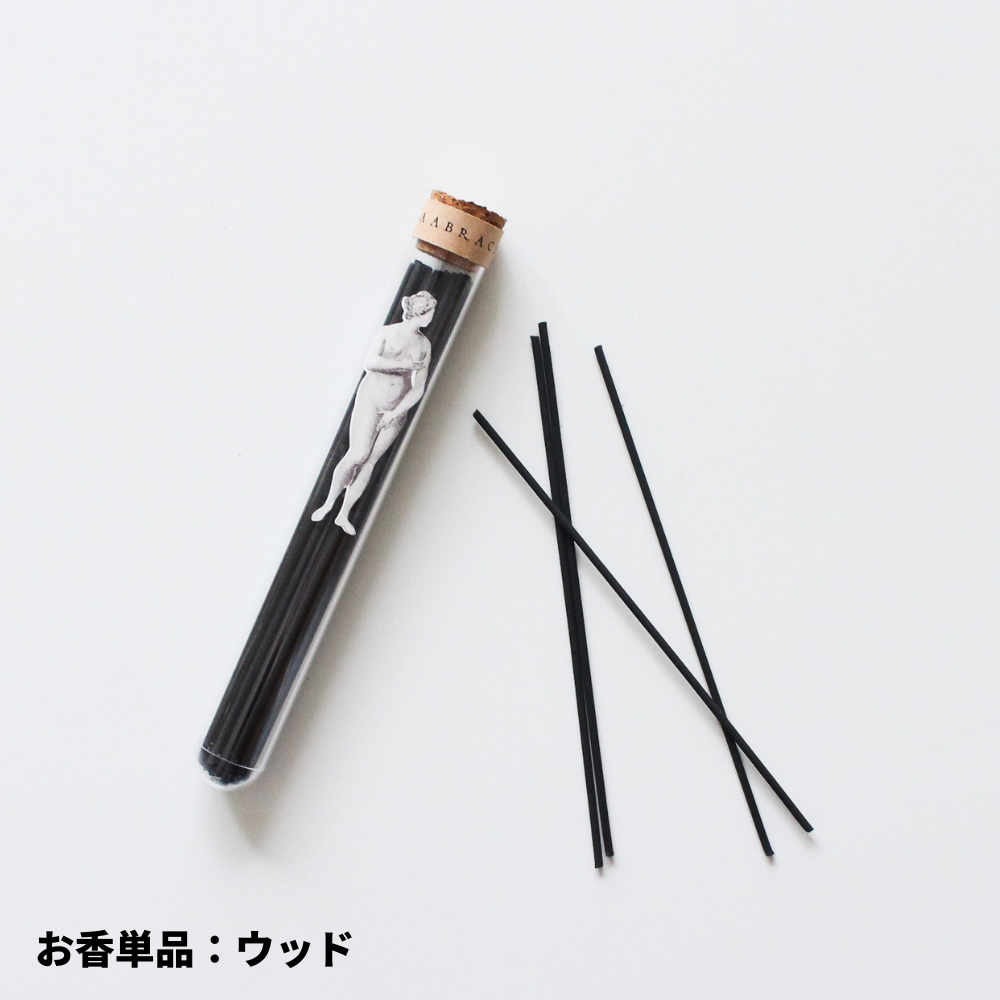 ABRACADABRAさんの世界観はいつも不思議でどこかかわいく、クスッとしてしまうプロダクトばかりで大好きです。この唇のお香立ては心地良さそうに一服しているみたいで和みます。マットな質感も主張せずにさりげなく不思議な佇まいです。どの香りも強すぎず爽やかに空間を包み込んでくれますが、特に黒色のウッドが大好きです。