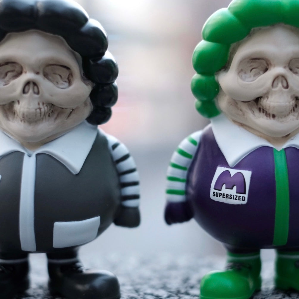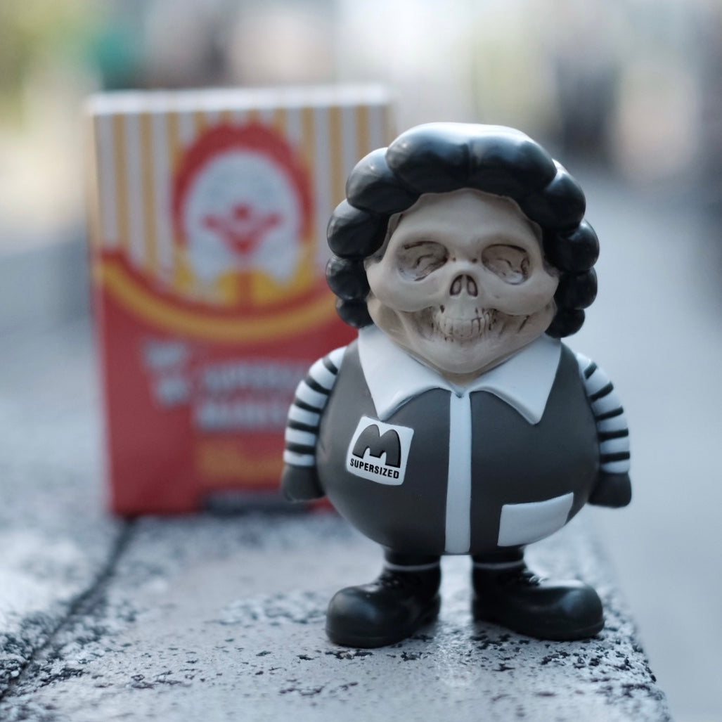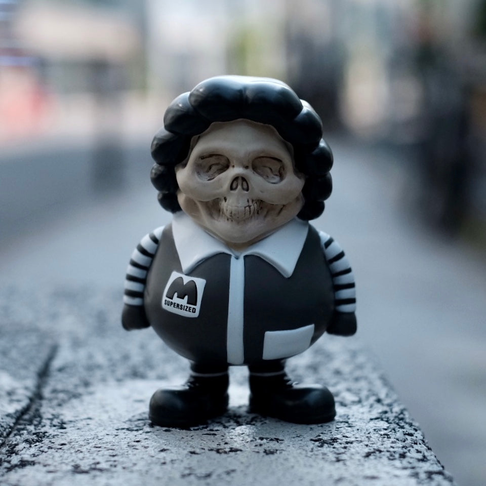 NYのポップアーティスト・ロン・イングリッシュがデザインした太ったあのキャラクターをSECRET BASEとマインドスタイルが共同で制作!クローズドパッケージになっており、何色が出るかはあけてからのお楽しみ!中身はフルカラータイプ、半分スカルになったタイプ、胴体全てスカルになったタイプ、顔がスカルになったタイプに、ゴールド、パープル、モノクロの3種類のうちのどれかのカラーパターンが施された全12種類。種類をお選び頂くことはできません。