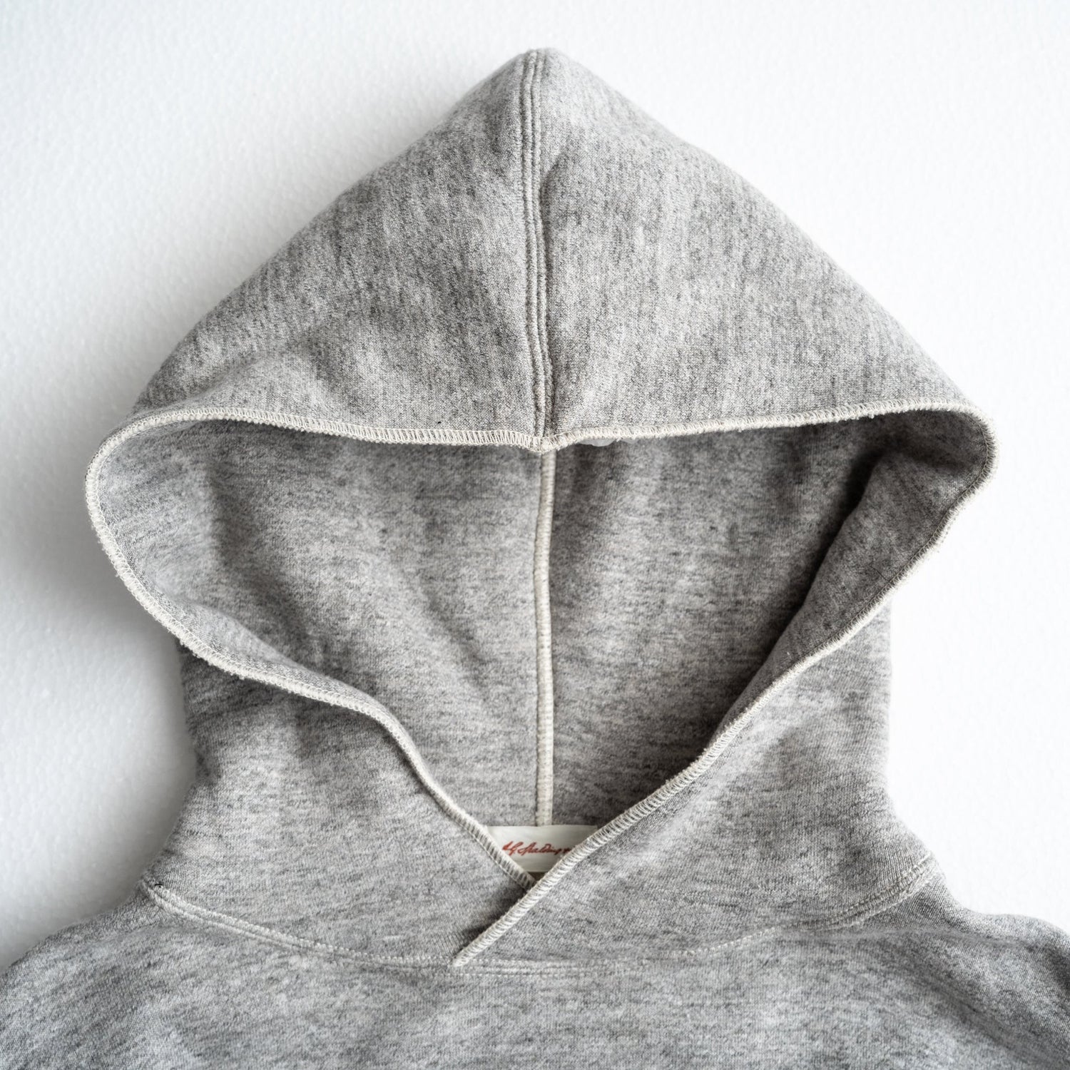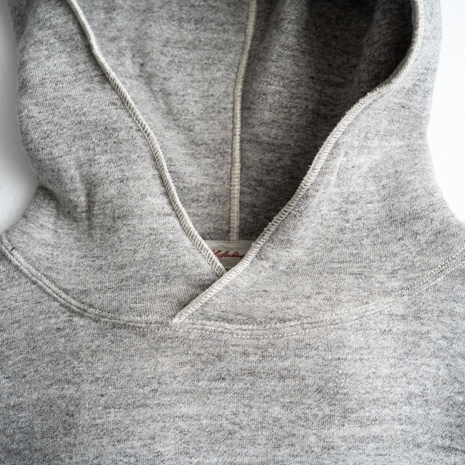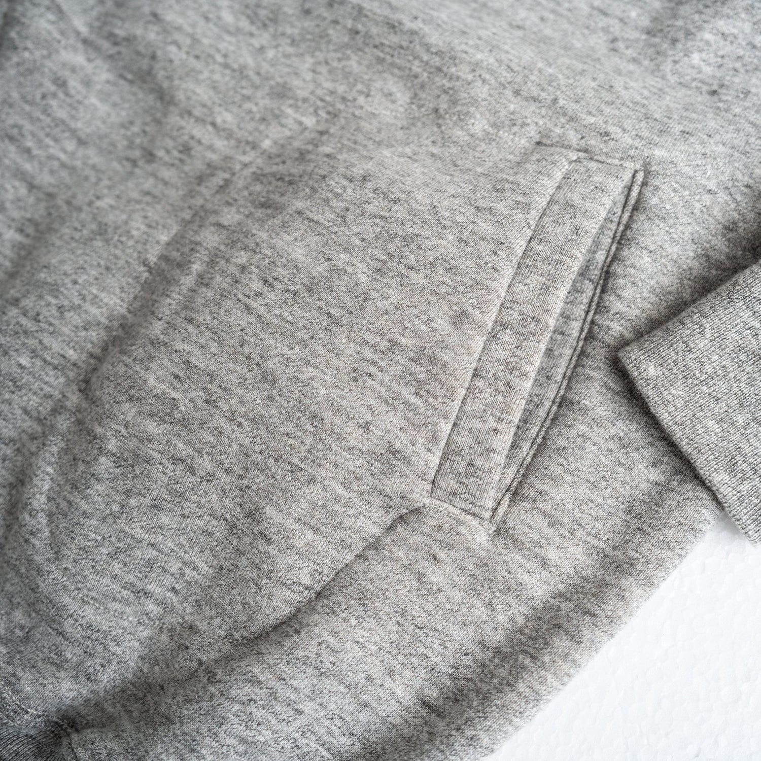 A.G.SPALDING&BROSのアイコンアイテムであるパーカー。忠実に再現すると、ダブルフェイス仕様となるところを、グローブポケット・ロックフーディー・クロスネックといったディティール特徴は踏襲しつつ、シングル仕立てにアレンジした一品。和歌山産吊裏毛使用・日本製。