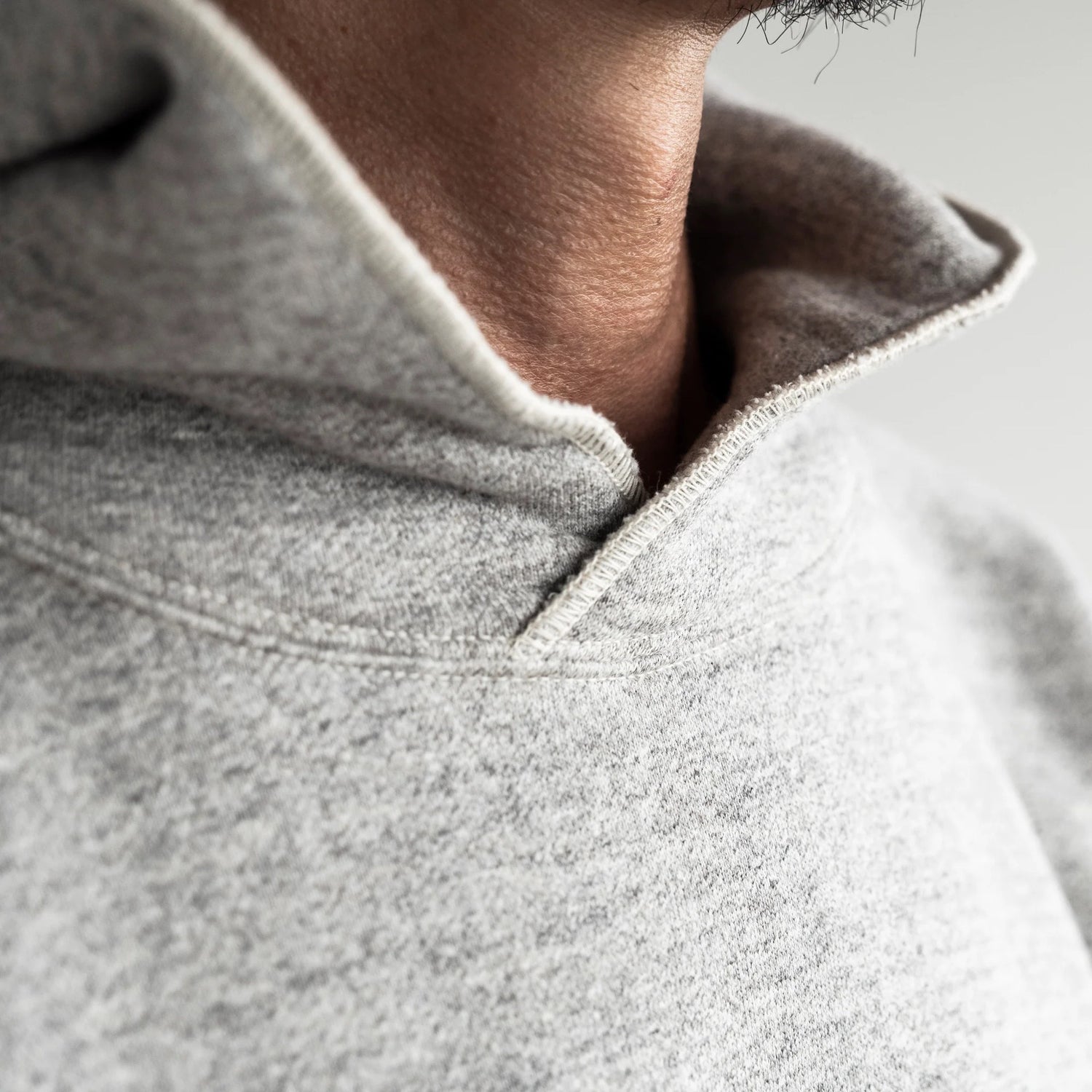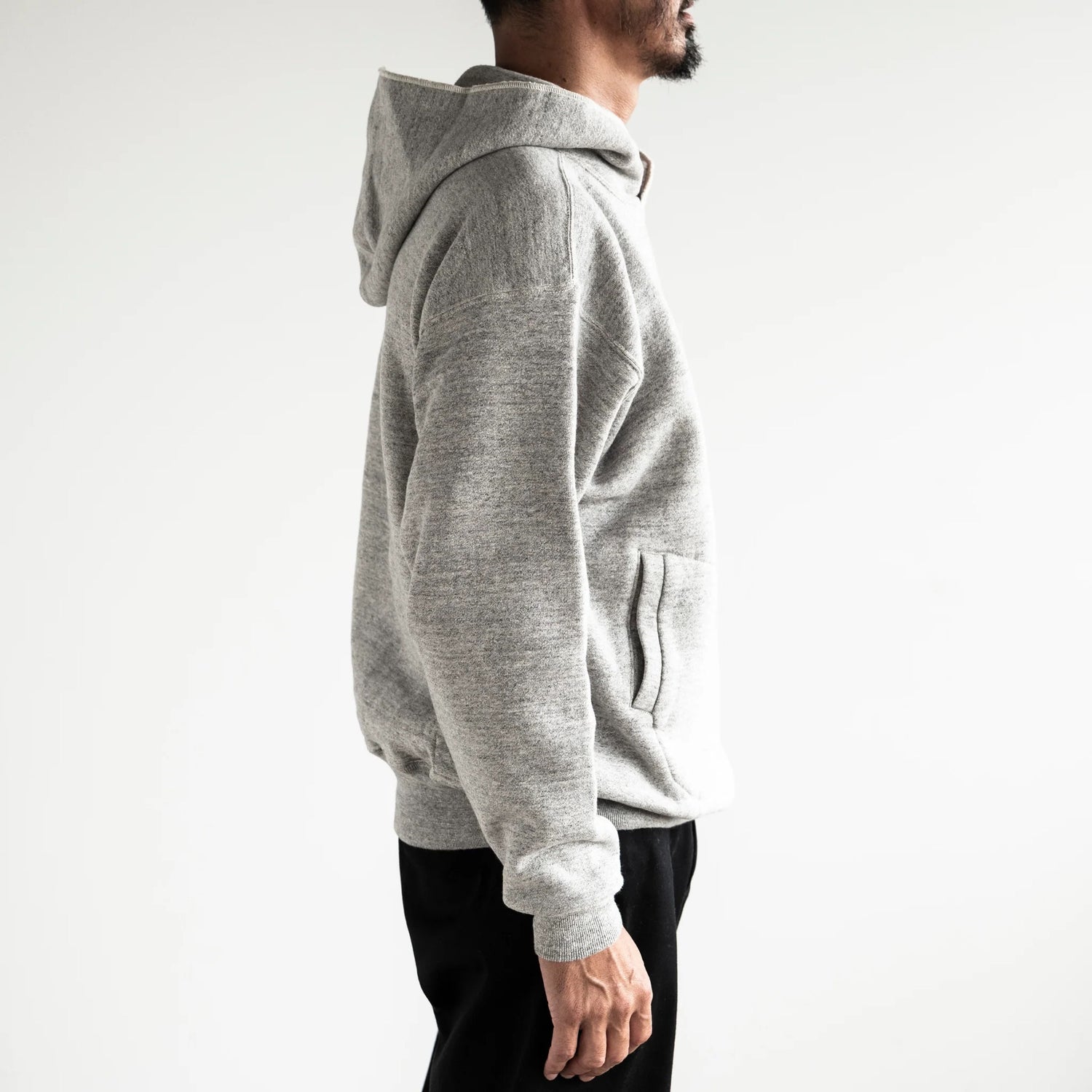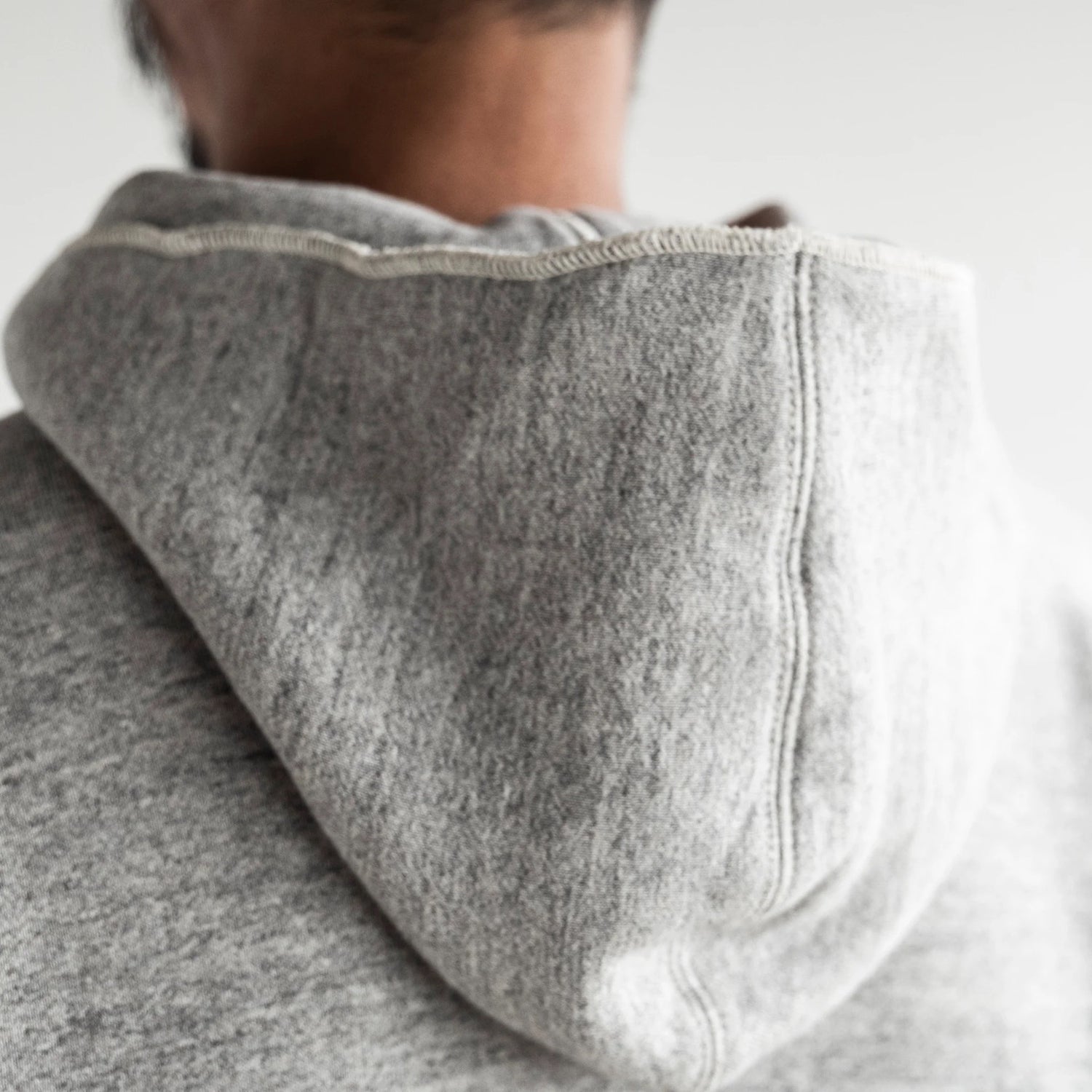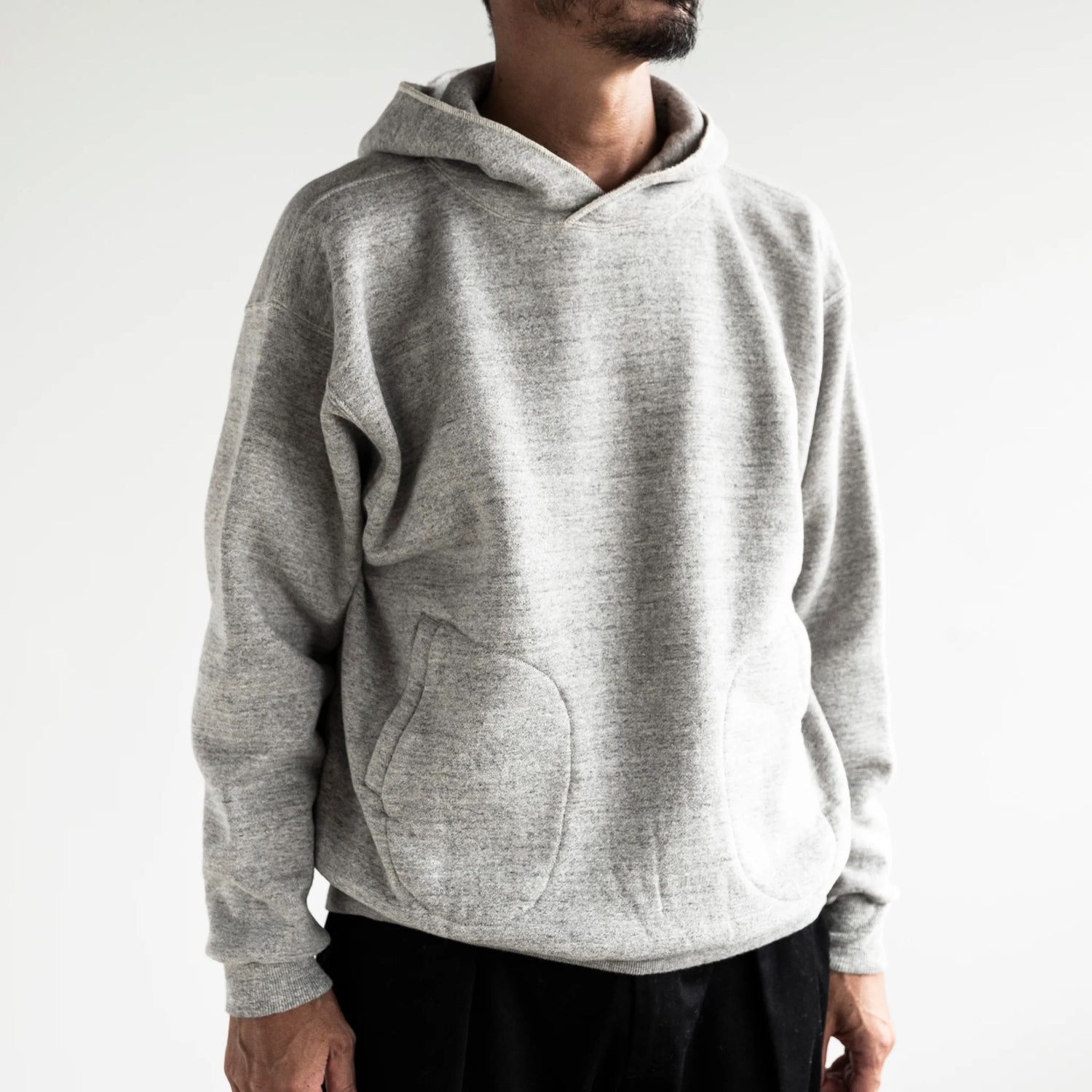 A.G.SPALDING&BROSのアイコンアイテムであるパーカー。忠実に再現すると、ダブルフェイス仕様となるところを、グローブポケット・ロックフーディー・クロスネックといったディティール特徴は踏襲しつつ、シングル仕立てにアレンジした一品。和歌山産吊裏毛使用・日本製。