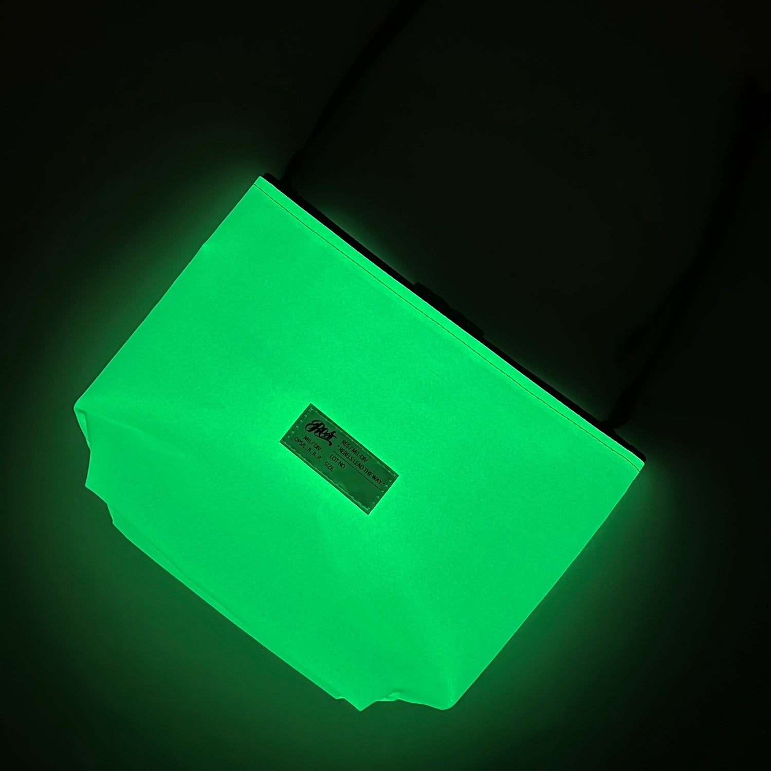 ミリタリーウェアをデザインベースに、ハイテク素材を組み合わせたプロダクトを展開。今回の商品に使用している生地も、蓄光(グローインザダーク)と再帰反射(リフレクター)を兼ね備えたオリジナル開発のハイスペックファブリックになります。