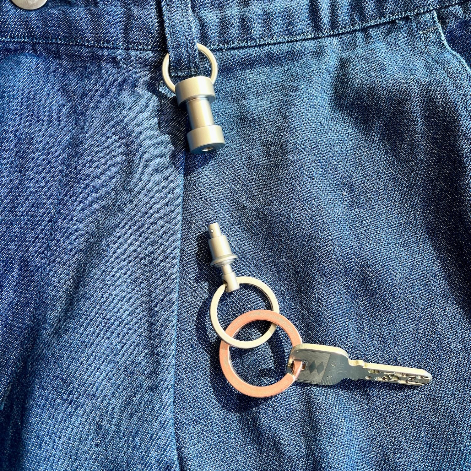 キーホルダーって、気になるものがあるとつい買ってしまうんですよね。HATCHでもいろんなセレクターがセレクトしている、まさに“沼アイテム”のひとつ。僕が最近買ったのがこちら。ベルトループにつけたまま、必要なときだけキー部分を着脱できるっていう仕組みが、もう本当に便利。マットな質感もいいし、シンプルなのにちょっと重厚感があるのも好みです。まりに気に入りすぎて、同じ着脱構造の、ハイロックさんセレクトのカラビナが、今かなり気になってます。キーリングって一個あれば十分だと思ってたけど、沼は深かった…。
