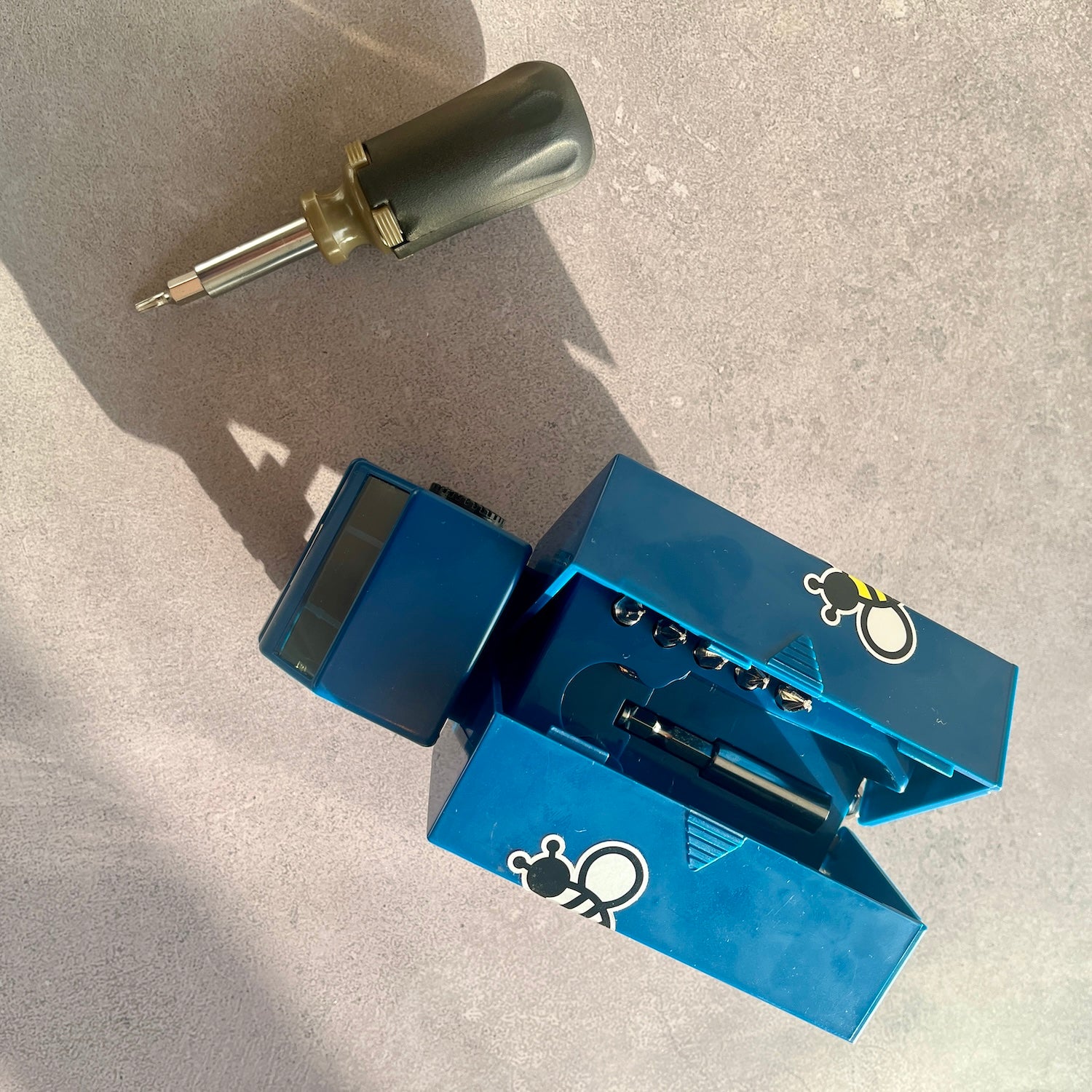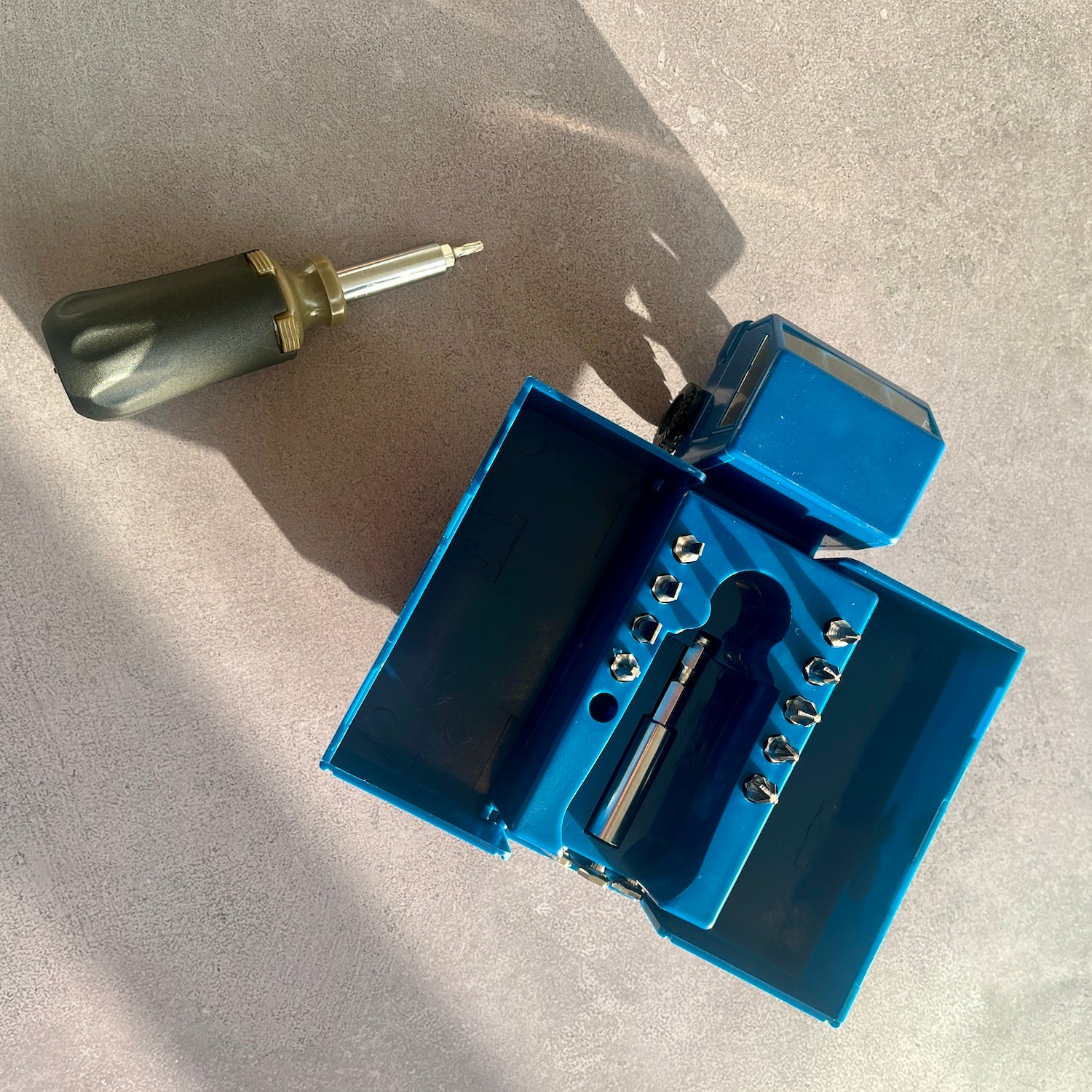 オフィスチェアの肘掛け部分のネジが緩むので、年に4回くらい使うドライバー。でも、毎回どこにしまったかわからなくなるんですよね。だから今回は、出しっぱなしでもOKなこの工具セットに新調。手のひらサイズのトラックの荷台をパカッと開けると、日常使いには十分な工具たちがずらり。荷台を開ける時のちょっとしたワクワク感が、子供の頃を思い出させてくれます。とにかく可愛い。お値段も可愛い。ステッカーでカスタムしていくのもまた楽しい。たまに用もないのに、パカパカ開けてます。