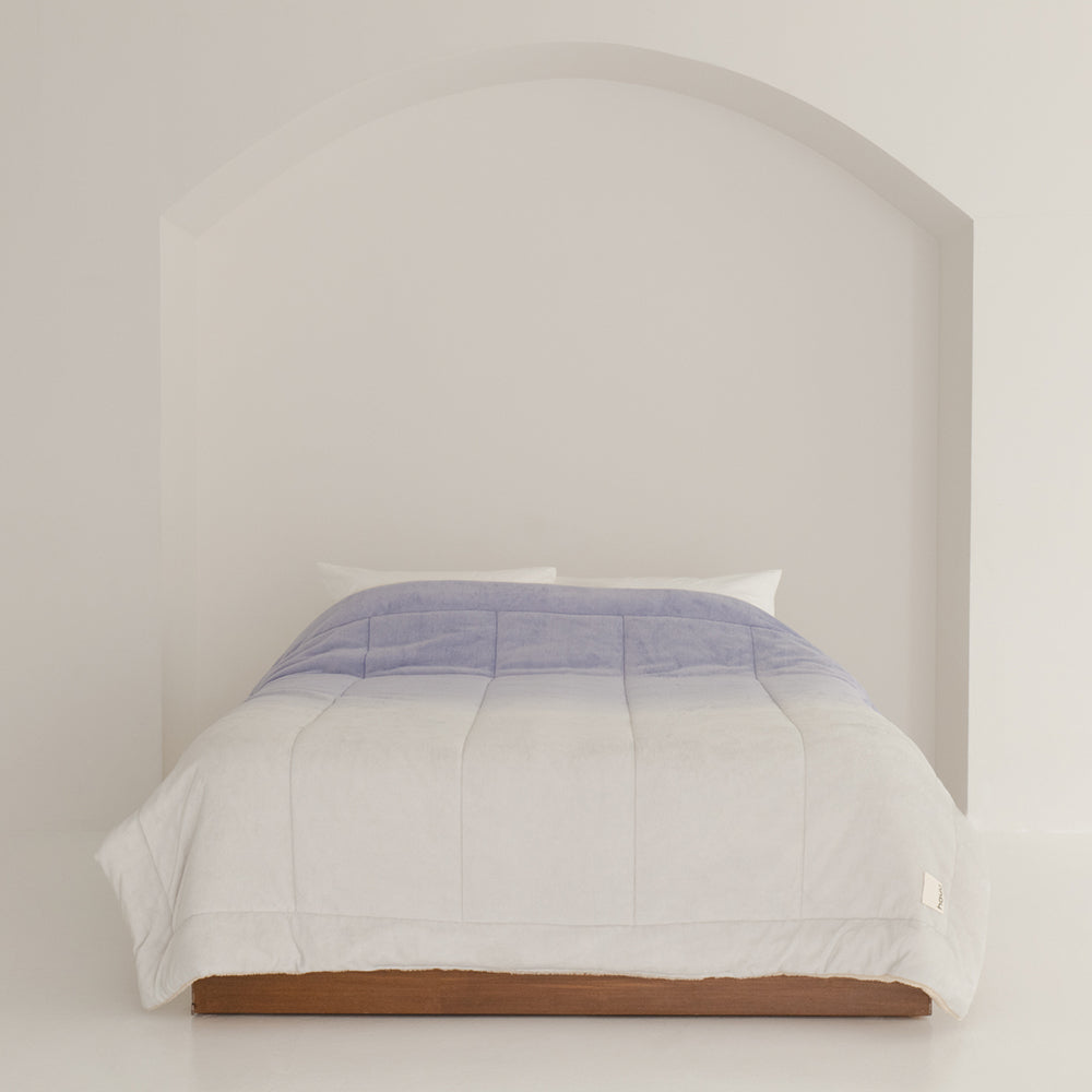 穏やかで優しいパープルに、ライトグレーのグラデーションは深みのある色合いのためどんなお部屋にも馴染み、心地よく落ち着いた空間をつくります。ご家庭で洗濯可能(ネット使用)なので、いつでも快適にお使いいただけます。