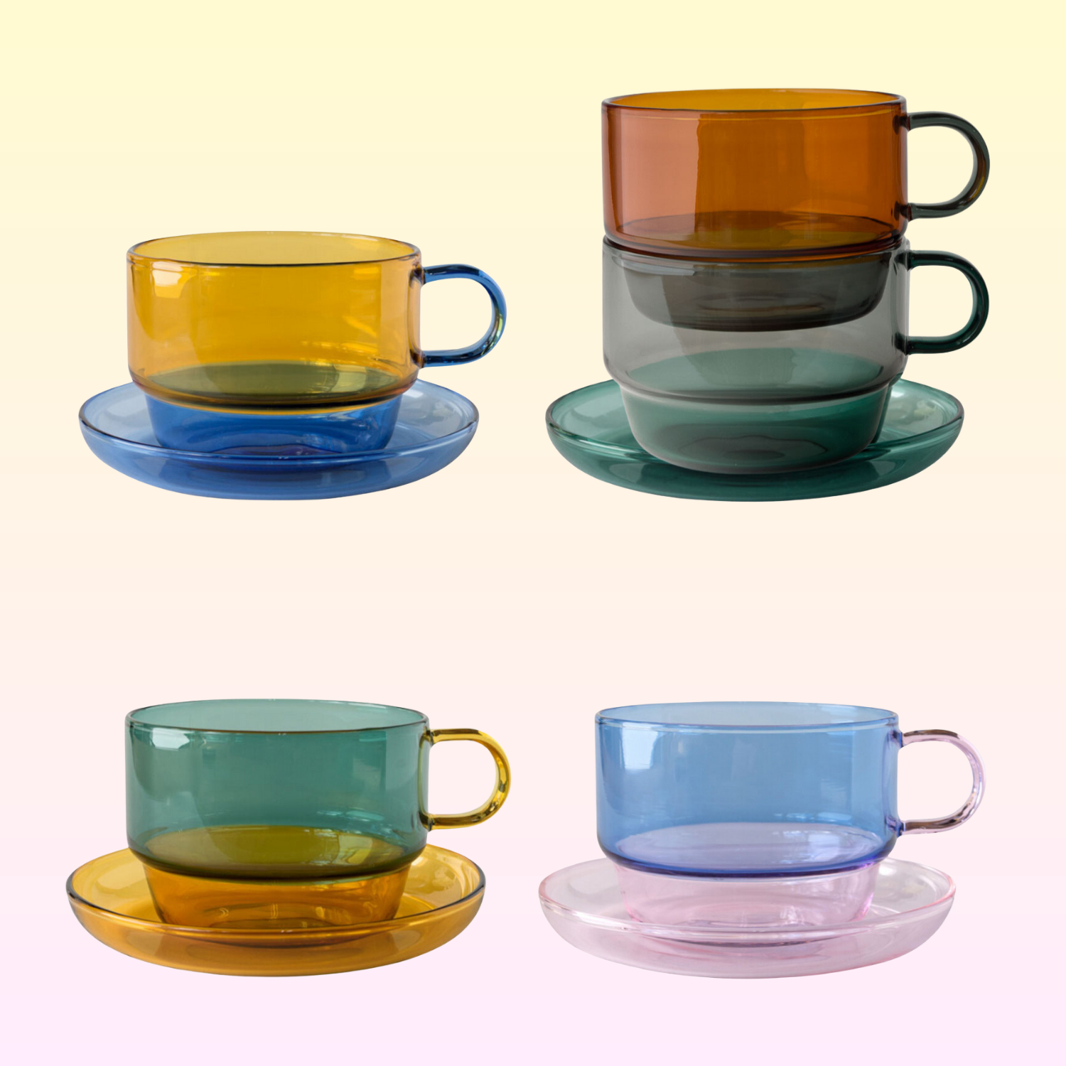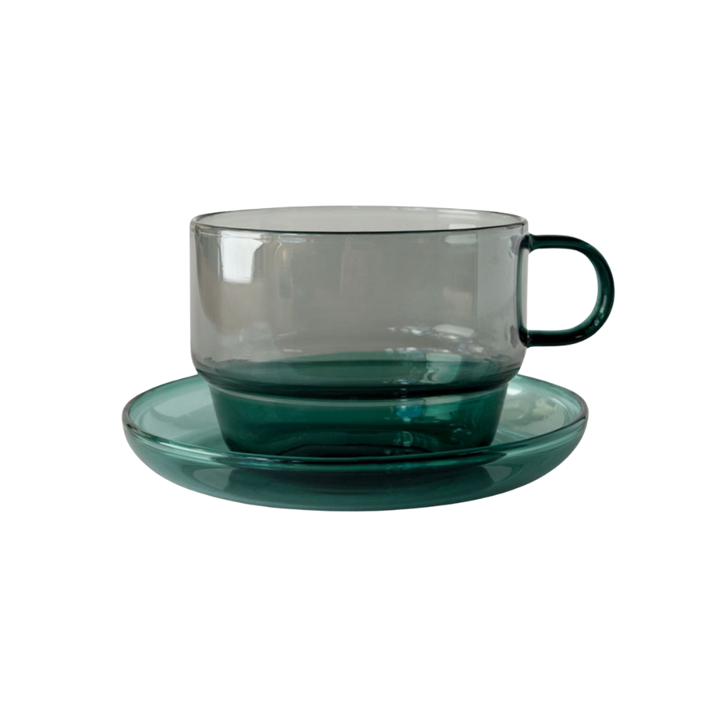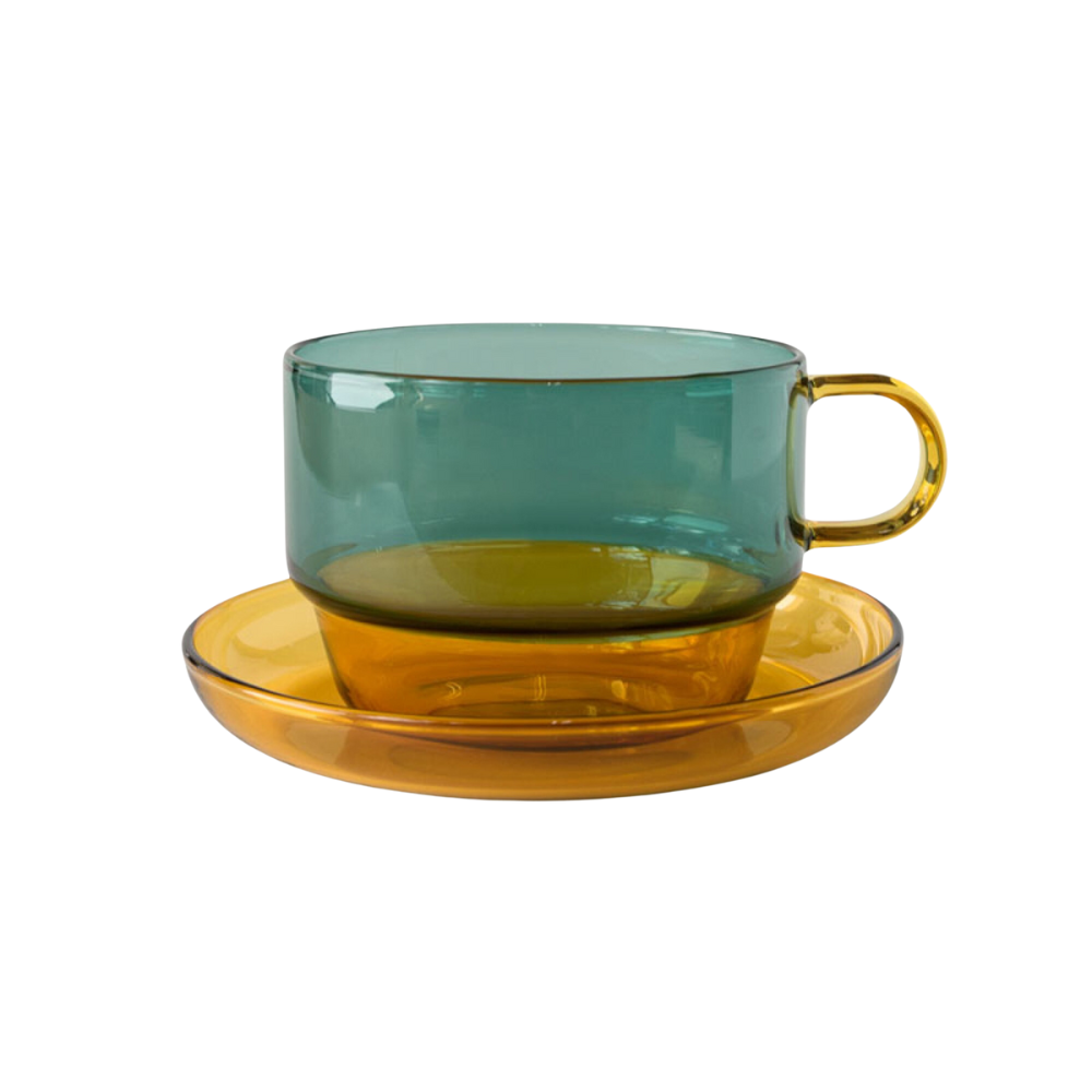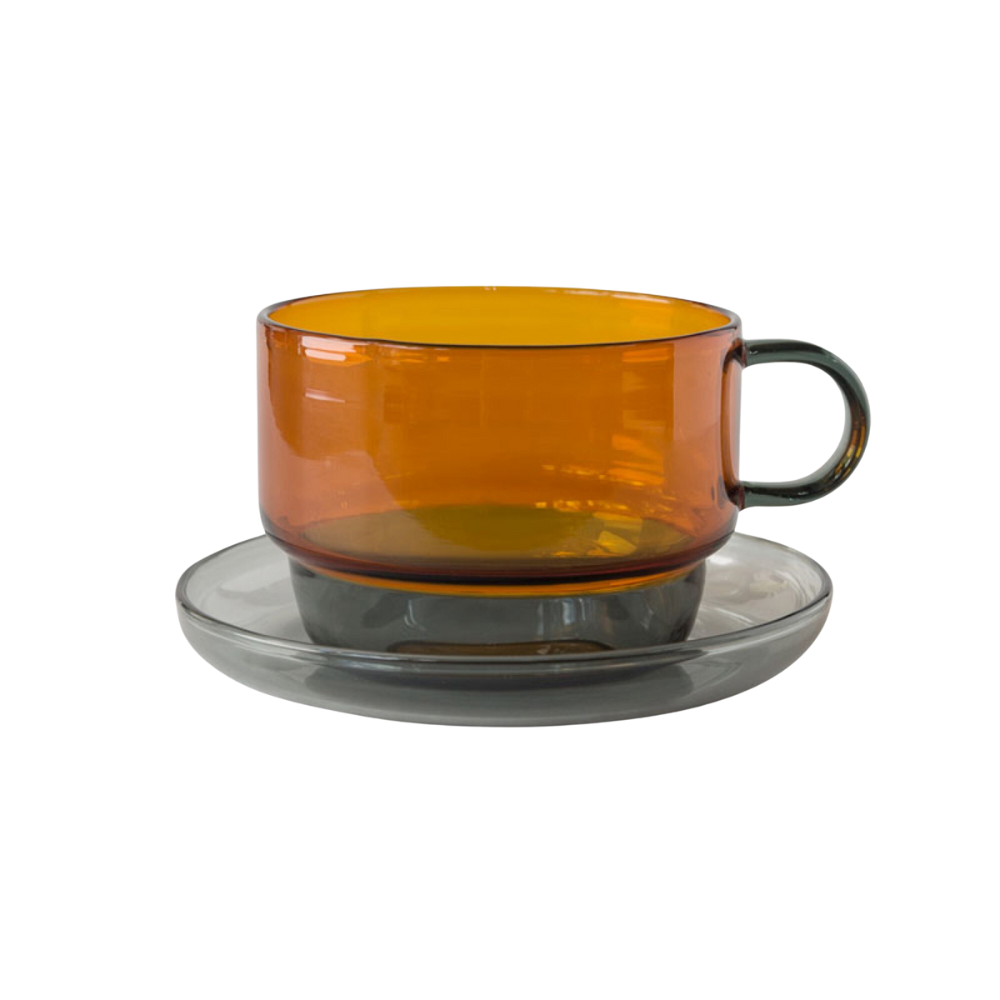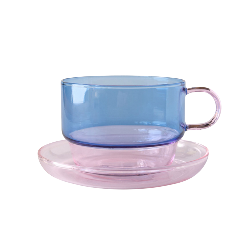 カップの色彩がソーサーへ溶けていくようで眺めていて心地よいです。ソーサーももちろん耐熱なので、使い道豊かでありがたい。