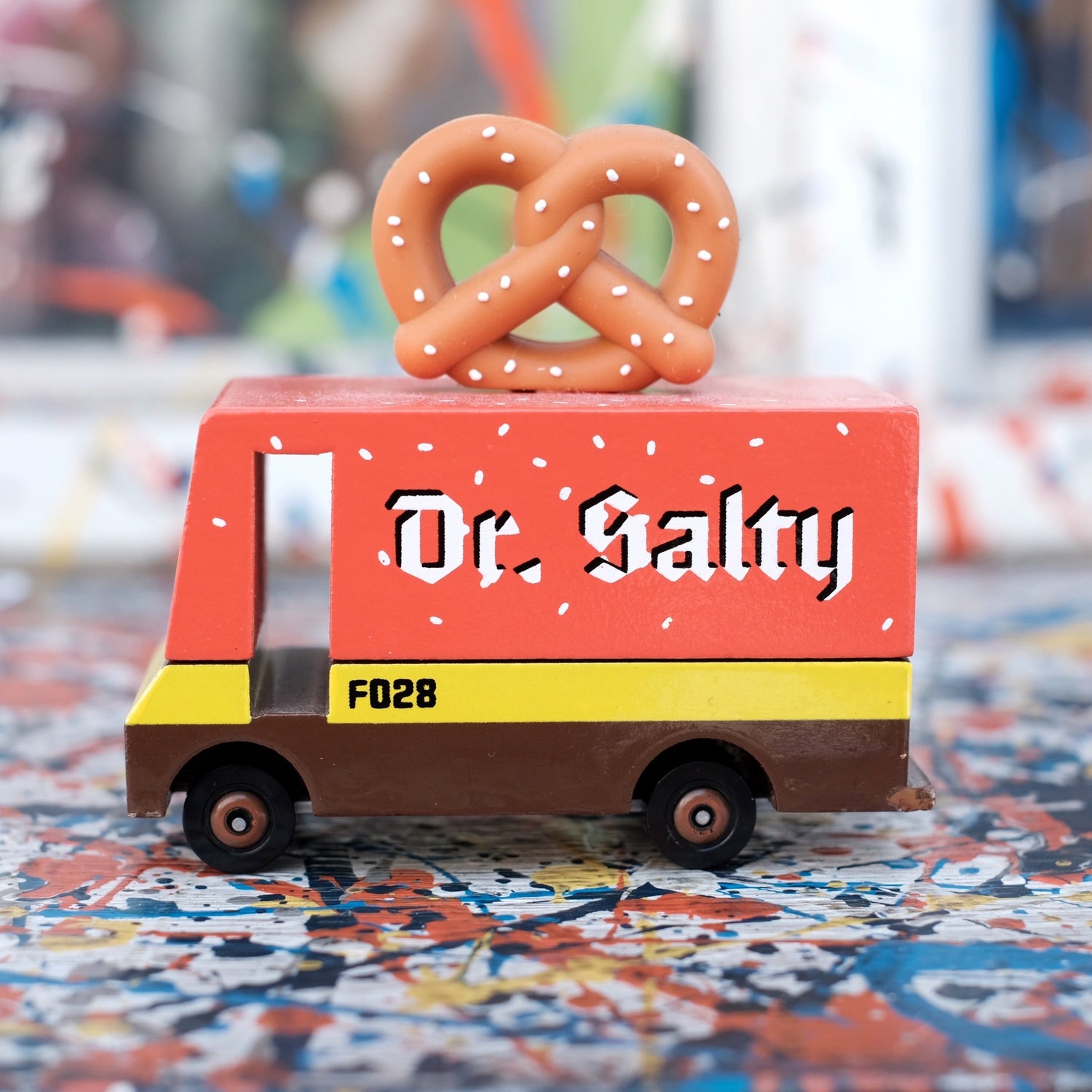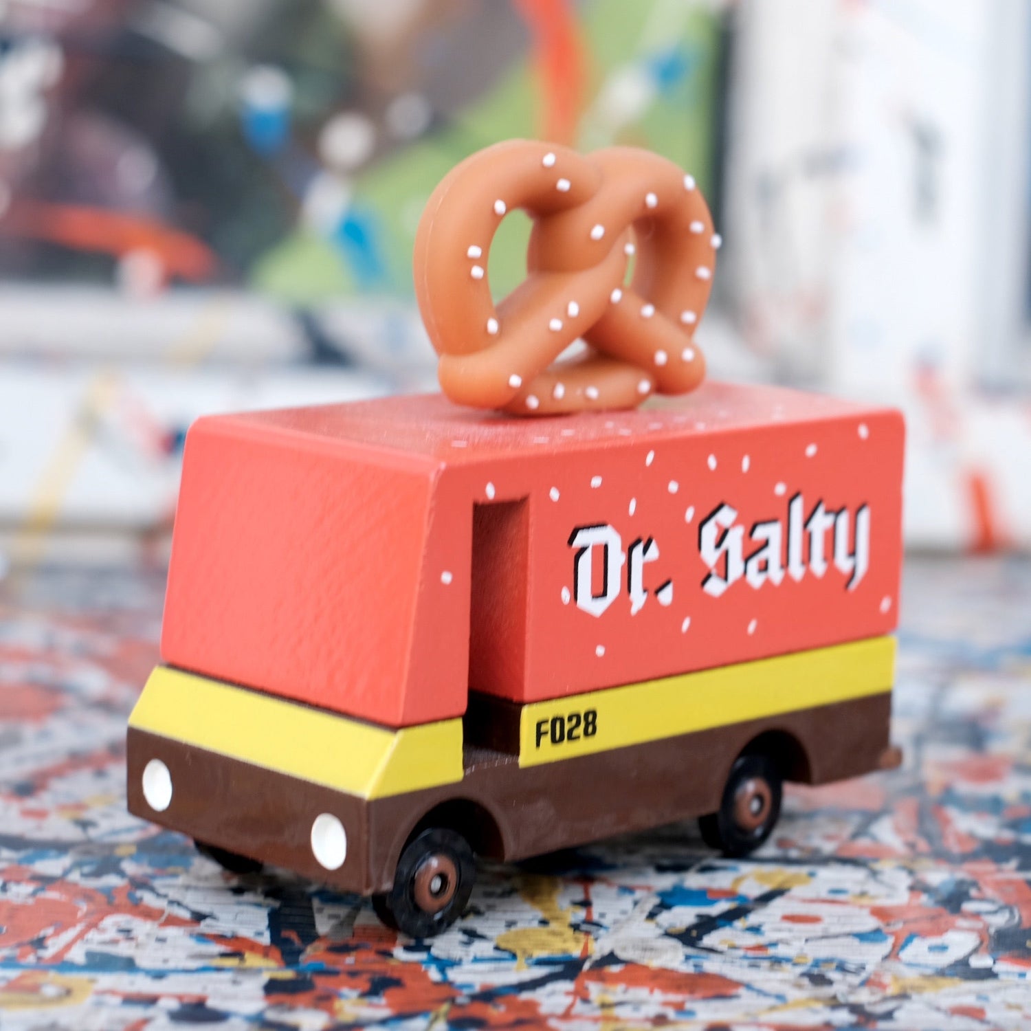 NYフードのアイコンでもあるフードトラックをモチーフにしたミニカー。ミニチュアのフプレッツェル、ホットドッグを乗せデフォルメしたデザインも可愛らしいです。木材で作られたボディは独特の風合いがあり、子供のおもちゃとしてはもちろん、インテリアにも映えるアーティステックなデザインのアイテム。