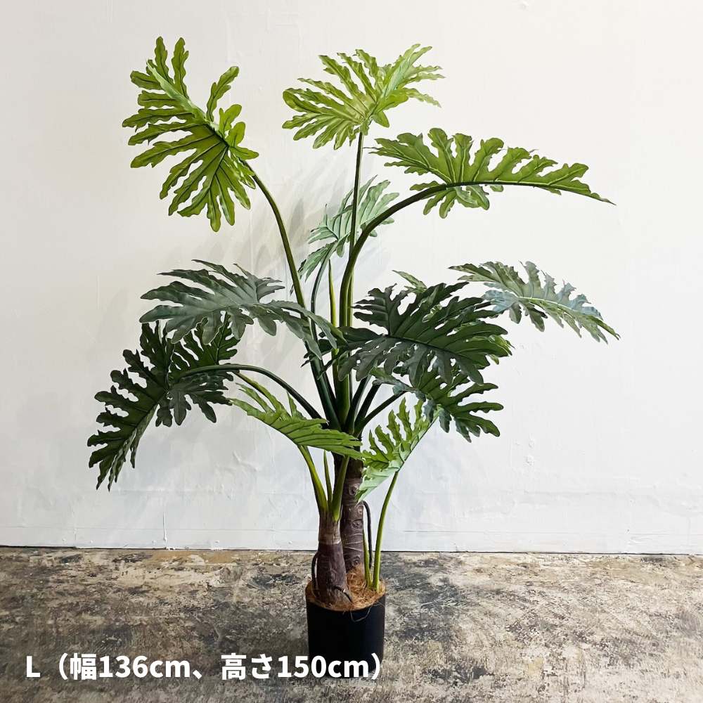 大きく美しい葉が特徴のセロームのフェイクグリーン。葉脈まで再現度が高く、フェイク感が少ないのも特徴のひとつです。セロームは大型植物に属しており成長が早い為、定期的な植え替えや剪定を必要としますが、フェイクグリーンだと好みの大きさのまま、インテリアとして楽しむことができます。また本物の植物と違い、お手入れが簡単で害虫やアレルギーの心配がない為、小さなお子様がいらっしゃるご家庭や動物を飼われているご家庭、飲食店やオフィスにもおすすめです。※鉢は付属しておりません。