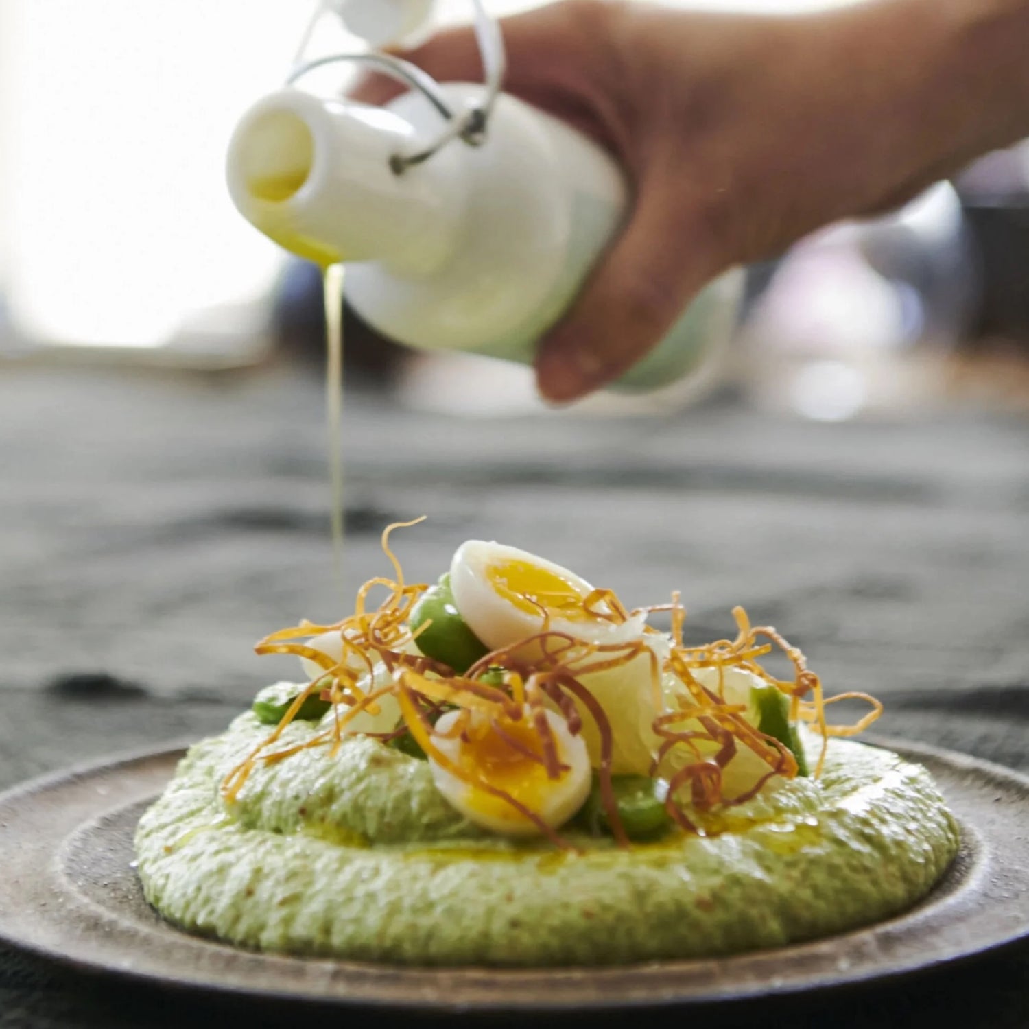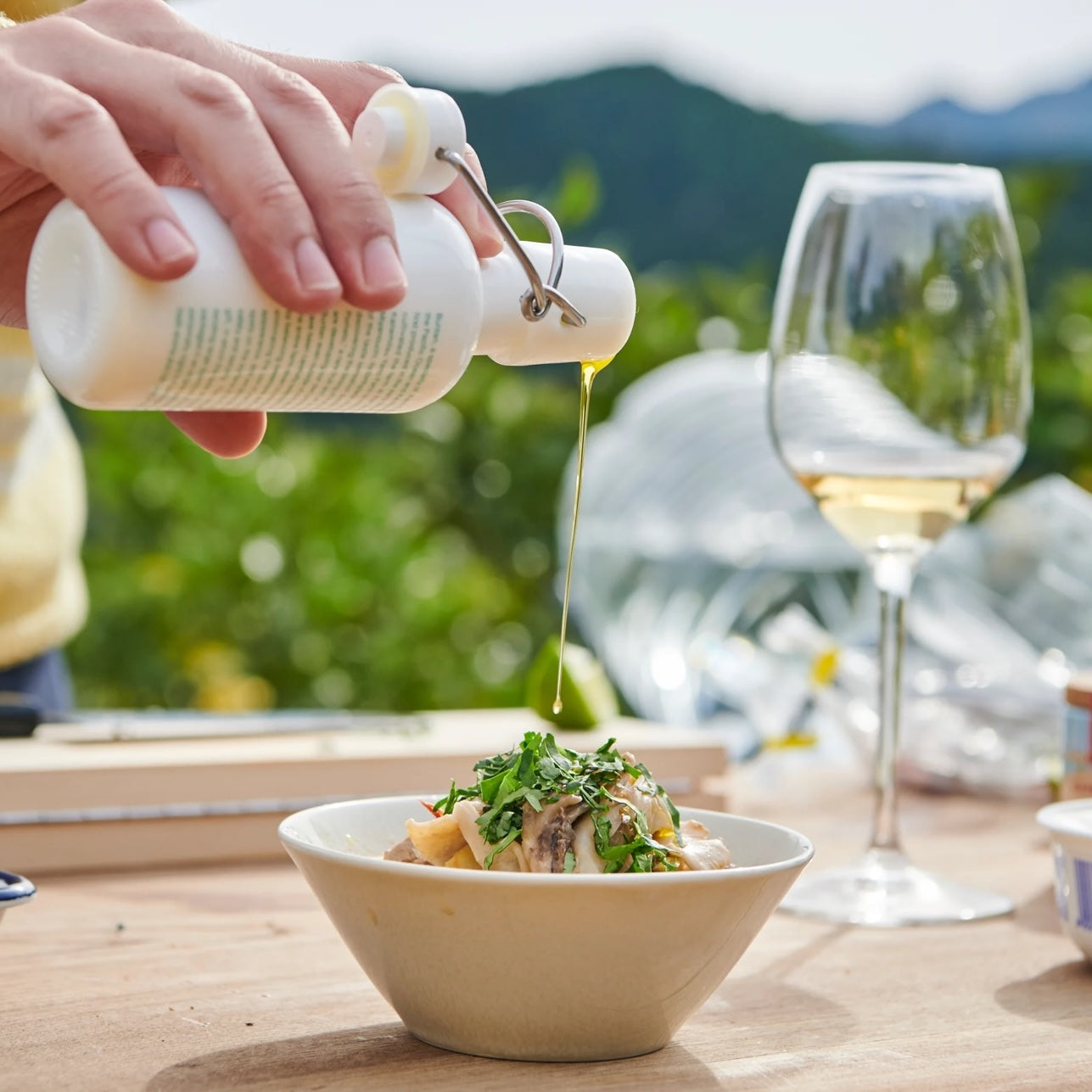 繊細な酸味とほのかな苦みが舌先で調和し、一口ごとに四季の移ろいを感じさせる特別なオリーブオイルです。料理の仕上げにひと振りするだけで、素材本来の香りと味わいを引き立てます。