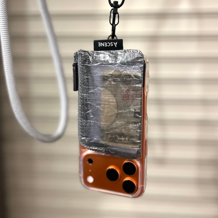 これまで、一度もiPhoneにケースを付けたことがなかったんです。裸のiPhoneに勝るデザインのケースなんて無いと思っていて。でもこのダイニーマ製ポケット付きのケースは別物。iPhoneの無機質な質感とダイニーマの独特な表情が溶け合うようにマッチしているんです。ぶっちゃけ、ポケットに何を入れるかはどうでもいい。iPhoneにダイニーマがアタッチされている、ただそのデザインが魅力的なんです。とはいえ、海外出張のときは現地の小銭を入れられて、とんでもなく便利でした。