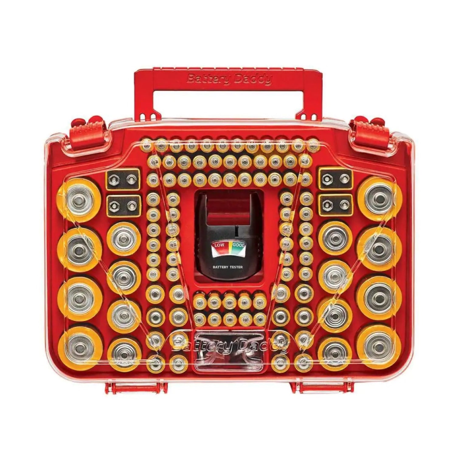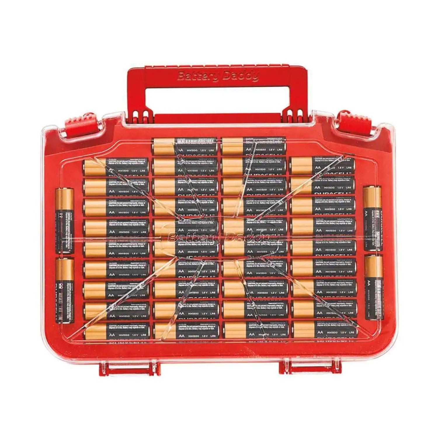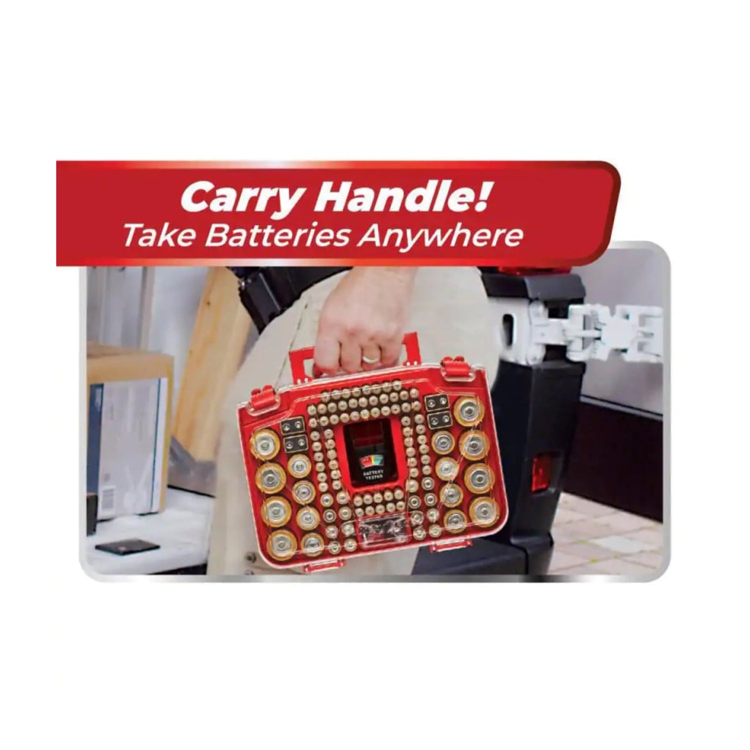 最大150個のバッテリーを保管、整理できる保管システム。独自の両面設計を備え、各バッテリーをスロットに安全に保管。透明なカバーで、保管バッテリーの確認も簡単。コンパクトなデザインと折りたたみハンドルにより、小スペースに収納可能。バッテリーテスター付属で、バッテリーの寿命をすばやくテストできます。自宅、オフィス、ボート、RV、ワークショップなどに最適です。