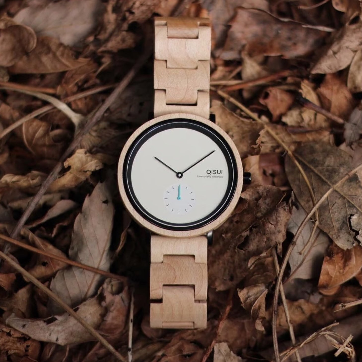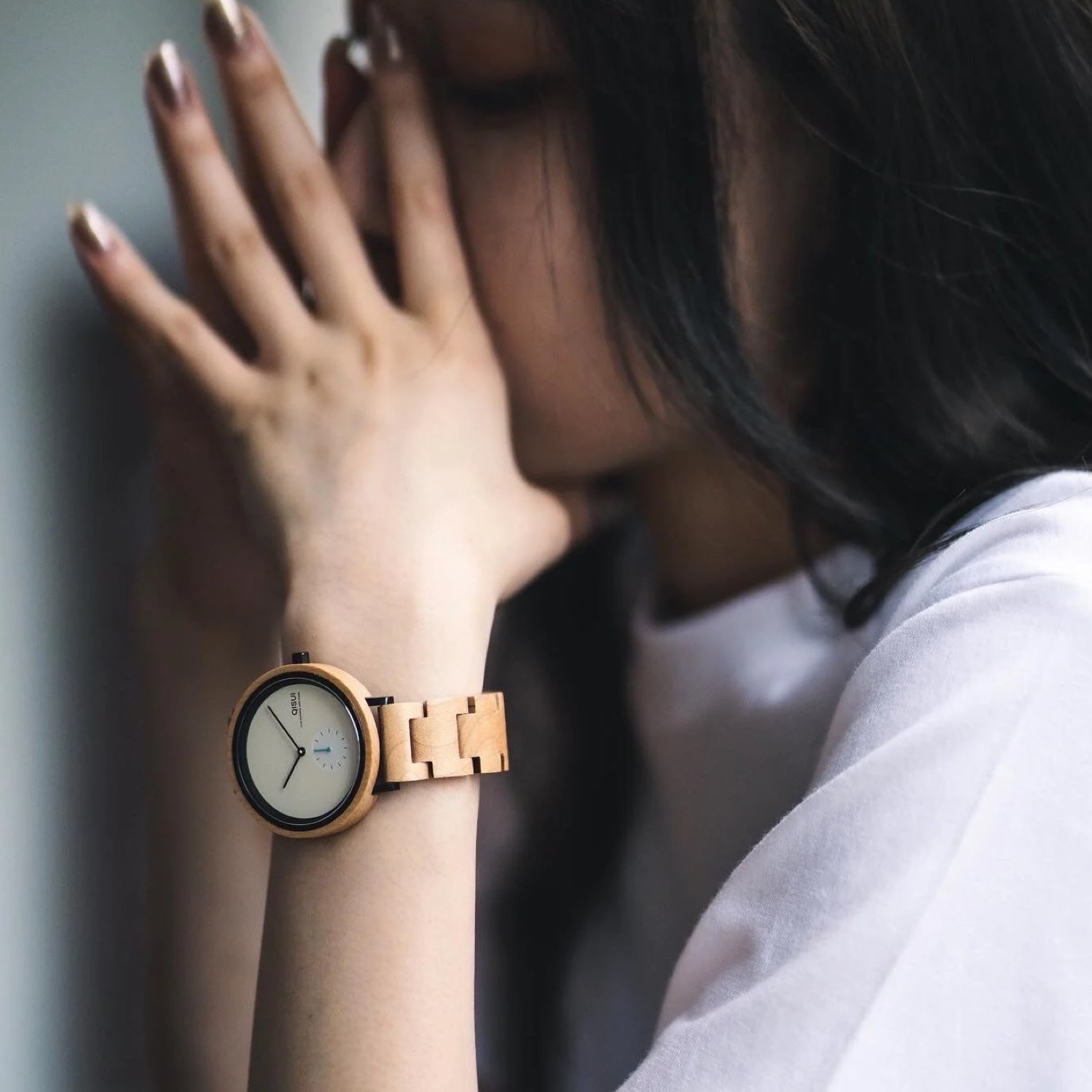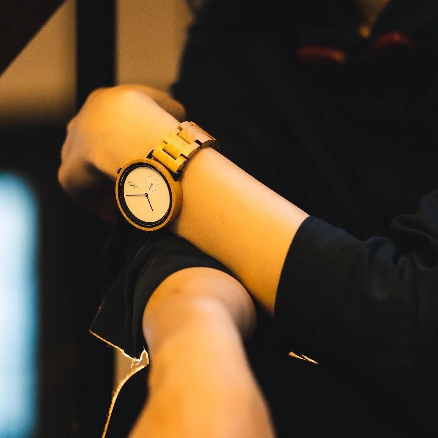 従来の木製腕時計はごつくて厚みがあるものが主流でしたが、シンプルかつ洗練されたデザインで、スタイリッシュにつける事が出来る木製腕時計を開発しました。シンプルかつカジュアルな服装の中にはさりげないアクセントとして、フォーマルの場では硬すぎない柔らかさをプラスすることのできる幅広い場で使うことのできる腕時計です。